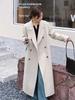 Abrigo de Lana de Doble Vista para Otoño e Invierno 2024 para Mujer Estilo Hepburn Abrigo de Lana Largo con Cuello Barcaza Doble Vista