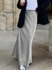 Falda gris satinada tipo seda de talle alto para mujer, elegante, adelgazante, con caída, francesa, de cola de pez, falda larga, venta al por mayor
