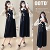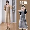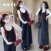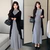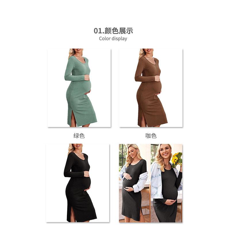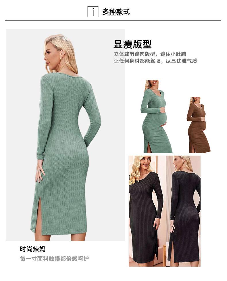 Vestido nuevo transfronterizo vestido de maternidad manga larga lateral holgado tejido de canalé mujeres embarazadas ajustado vestido de otoño e invierno