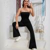 Mono Sexy sin Tirantes con Top Tubo de Color Sólido para Mujer, de Venta Caliente, Stock de Comercio Exterior, Europeo y Americano, Transfronterizo, con Pantalones Acampanados