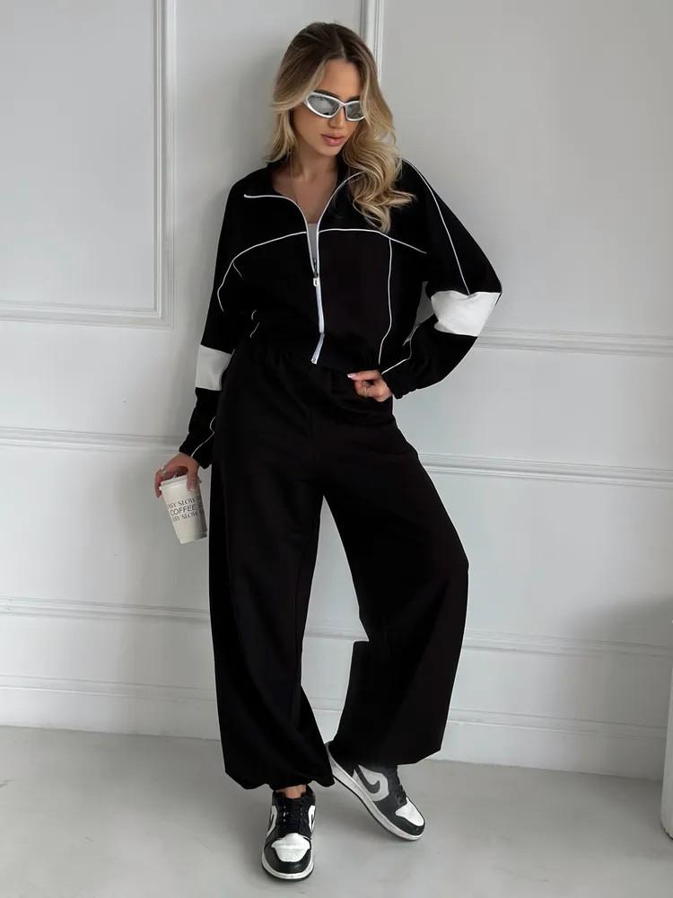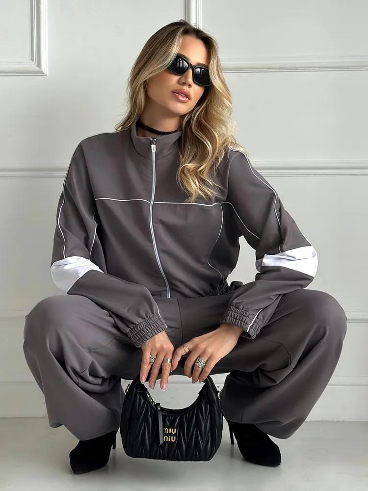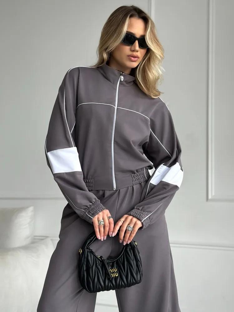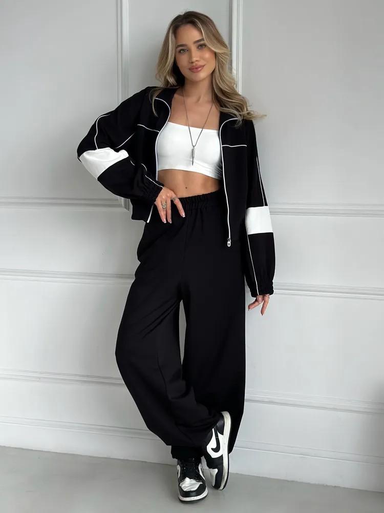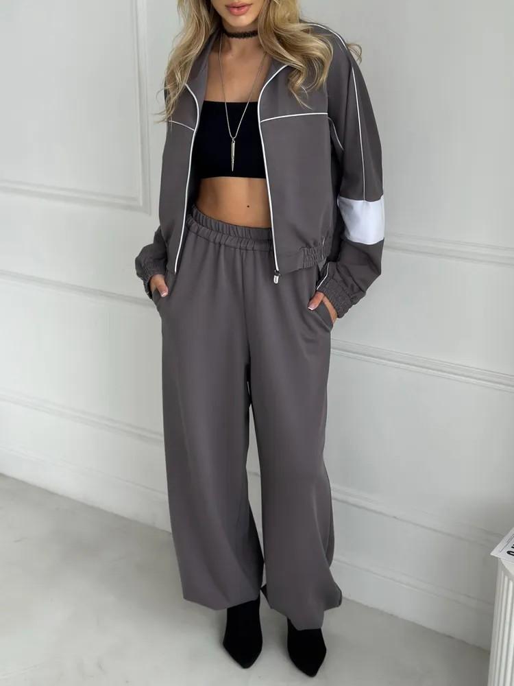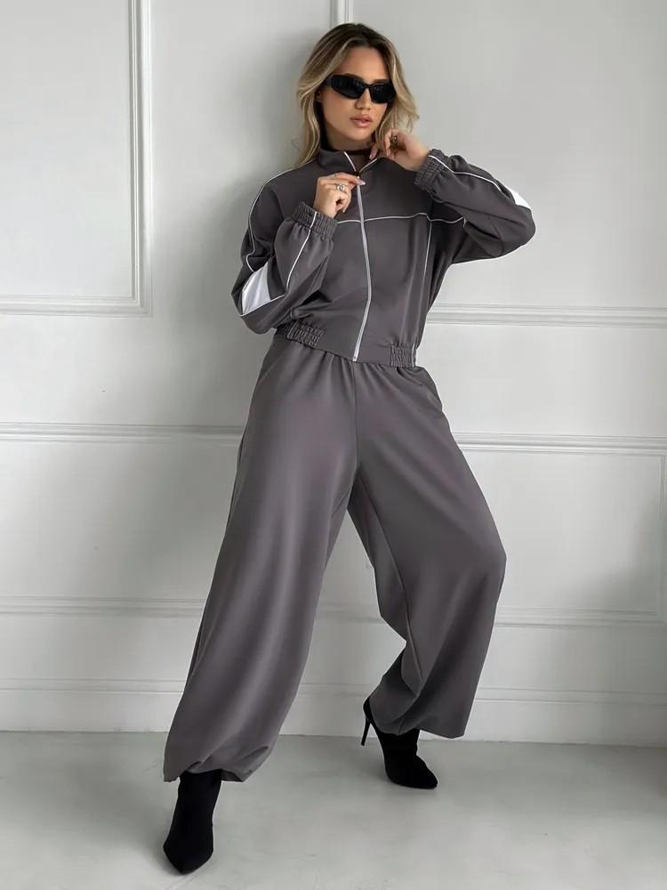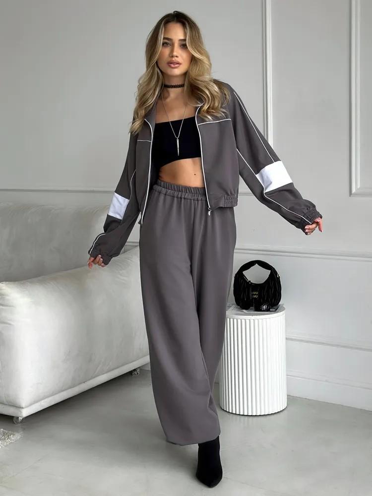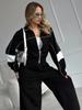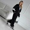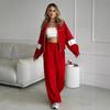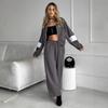 2024 Nuevo traje informal transfronterizo europeo y americano de Amazon, cárdigan de manga larga con cuello medio alto y pantalones a rayas con cordones