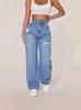 Pantalones vaqueros lavados con agujero de agua para damas europeas y americanas de la estación independiente de comercio exterior transfronterizo de Amazon