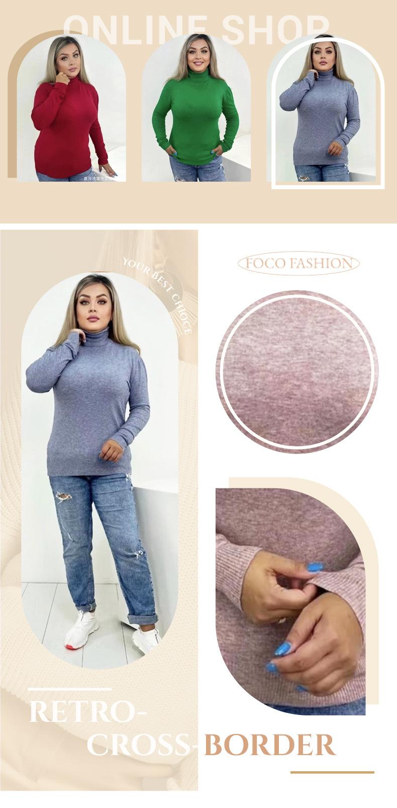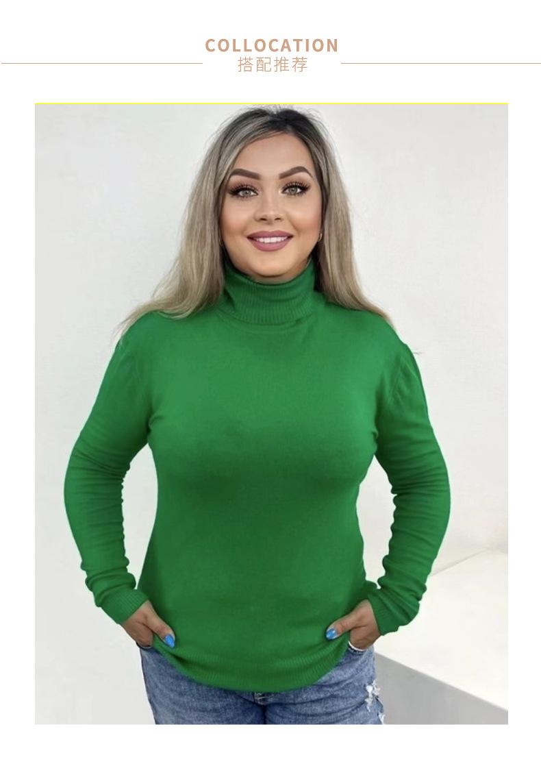 Suéteres Transfronterizos Estilo Europeo y Americano de Amazon Suéteres de Punto para Mujer Tops de Cuello Alto y Manga Larga para Usar Debajo Suéteres Holgados de Comercio Exterior