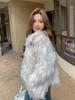 Europa y Estados Unidos abrigo de piel sintética cruzado invierno talla grande para mujer color zorro a juego estampado y teñido solapa ropa de felpa