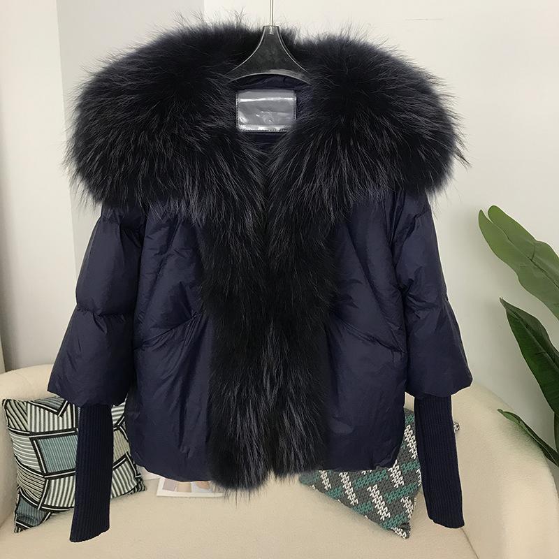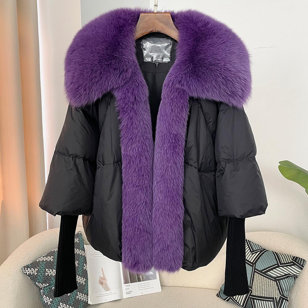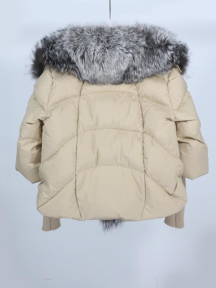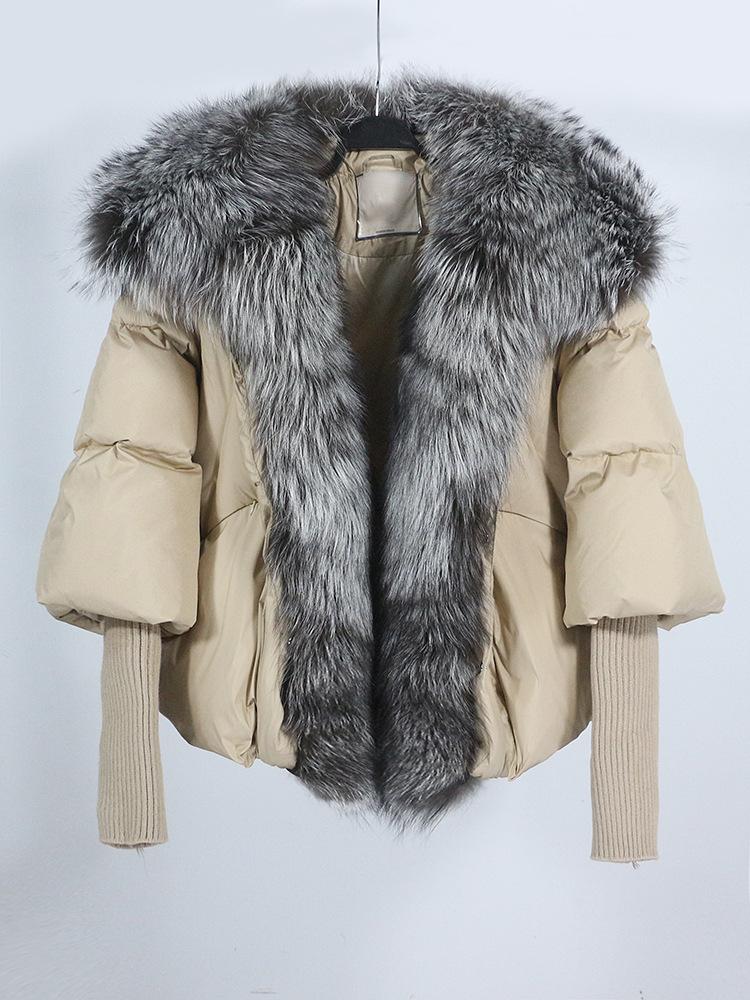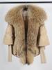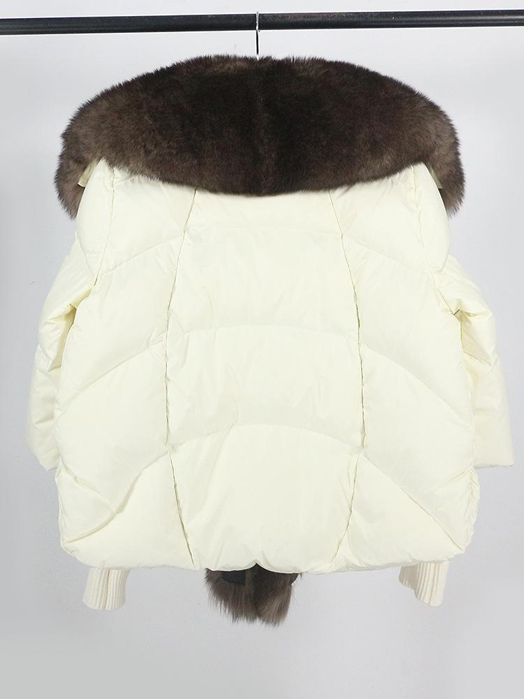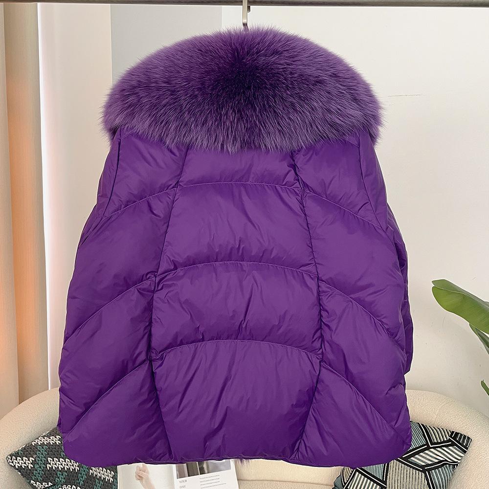 2025 Otoño e Invierno Nuevo Estilo Manga Roscada Chaqueta de Plumón de Pato Blanco Estilo Corto Cuello de Piel de Zorro Real Chaqueta de Piel para Mujer