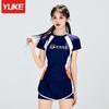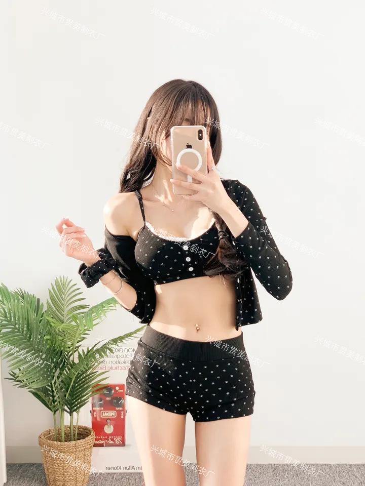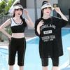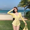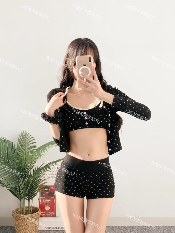 Nuevo traje de baño tipo bóxer conservador de tres piezas de manga larga con protección solar y flores para chica de alta gama con ondas de agua termal