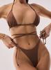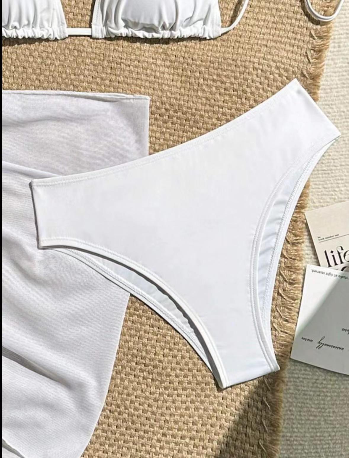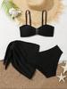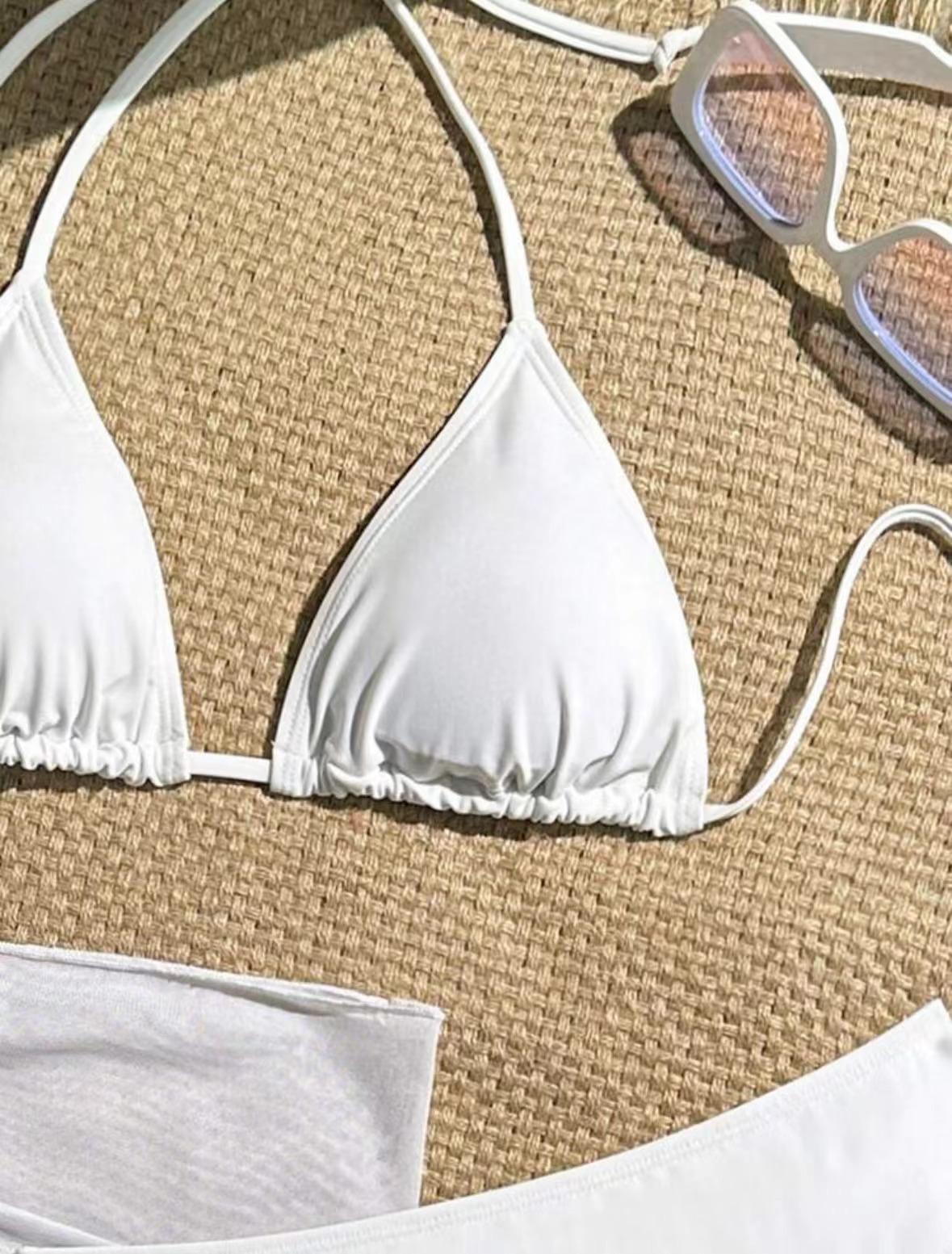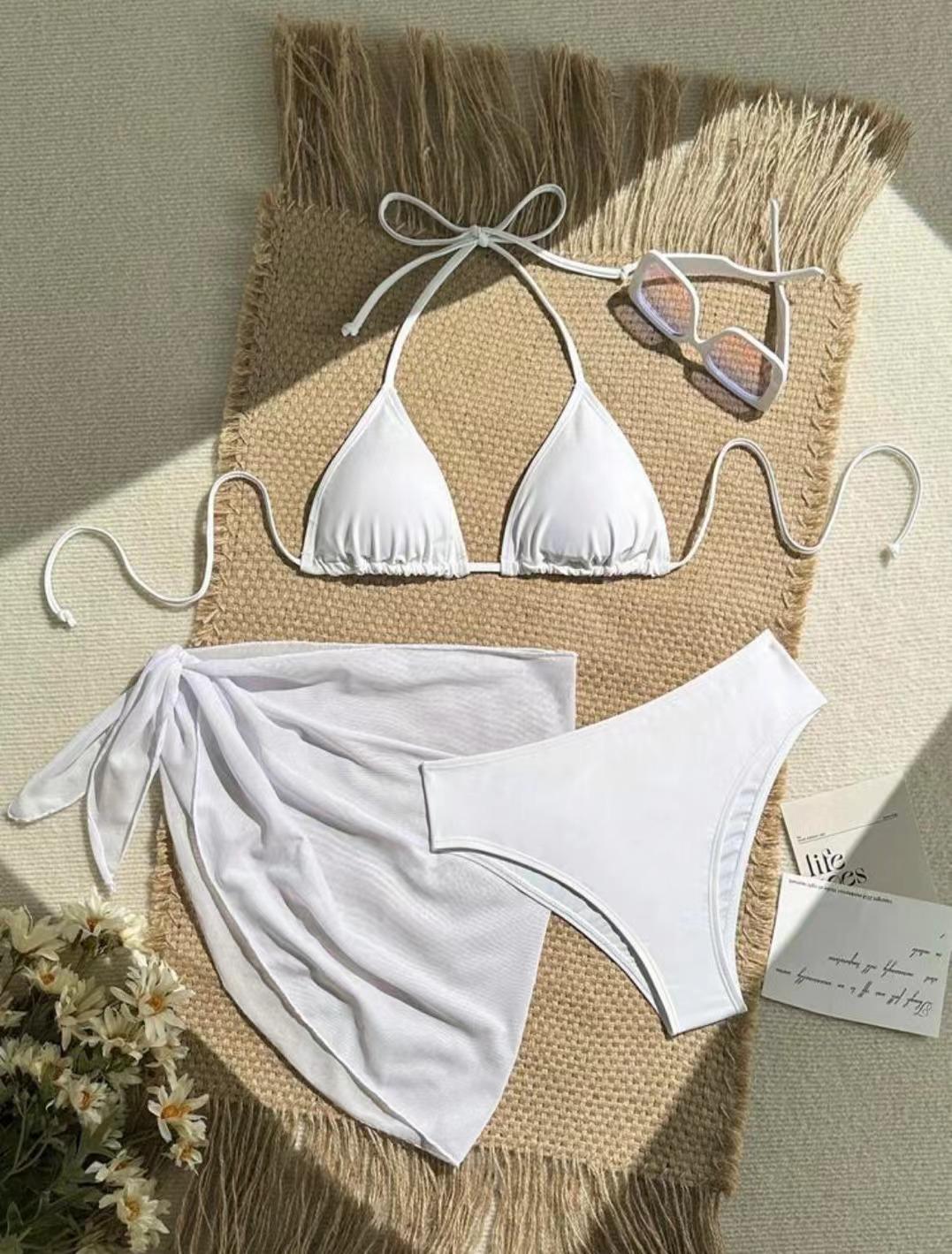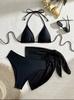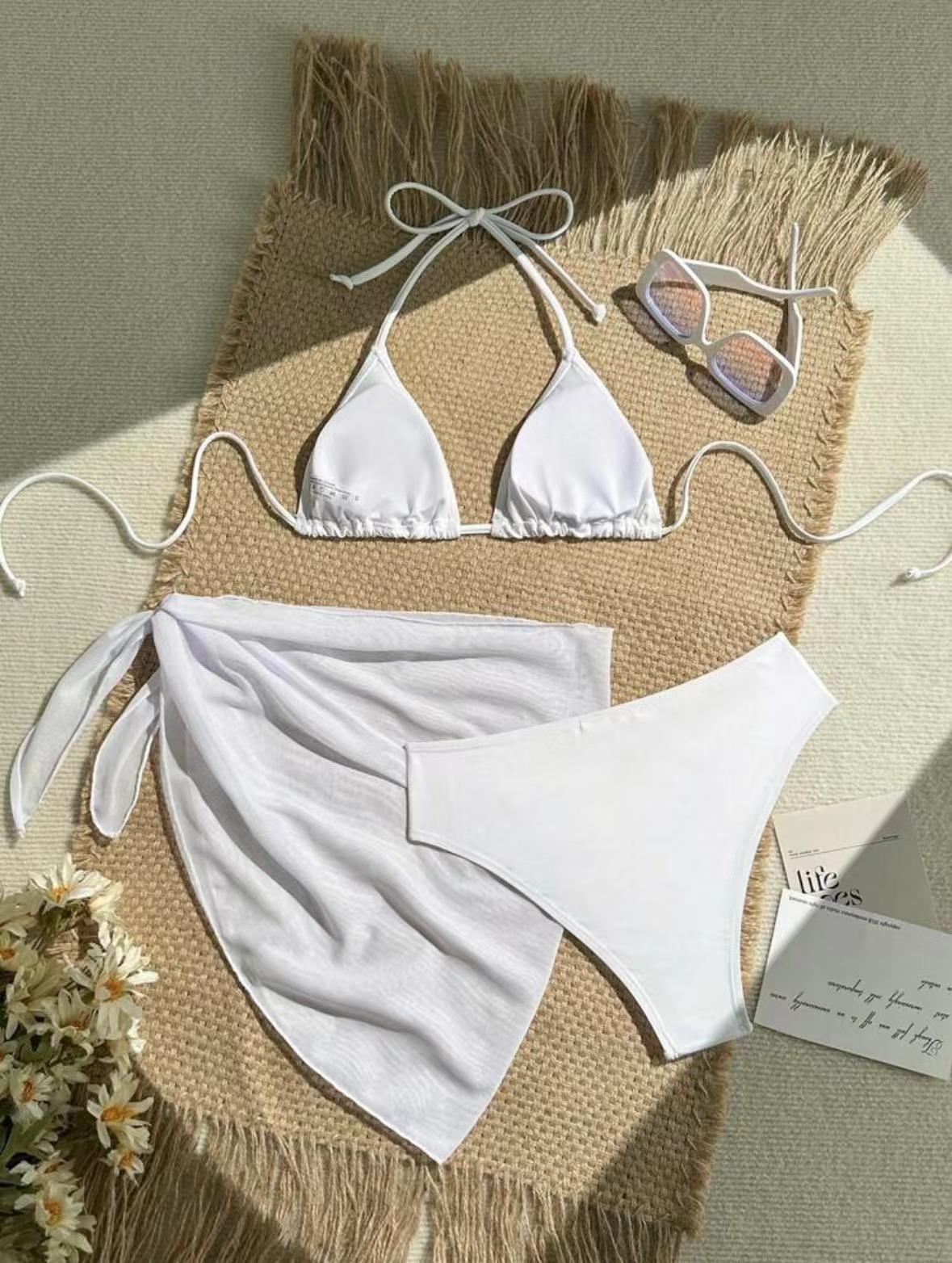 Traje de baño dividido sexy nuevo europeo y americano 2025, traje de baño de tres piezas para mujer, bikini de color sólido, bikini transfronterizo en stock