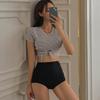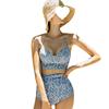 Traje de baño coreano de corte cruzado floral para pecho pequeño con realce, cintura alta que cubre el vientre, adelgazante, estilo ins, fresco, para aguas termales