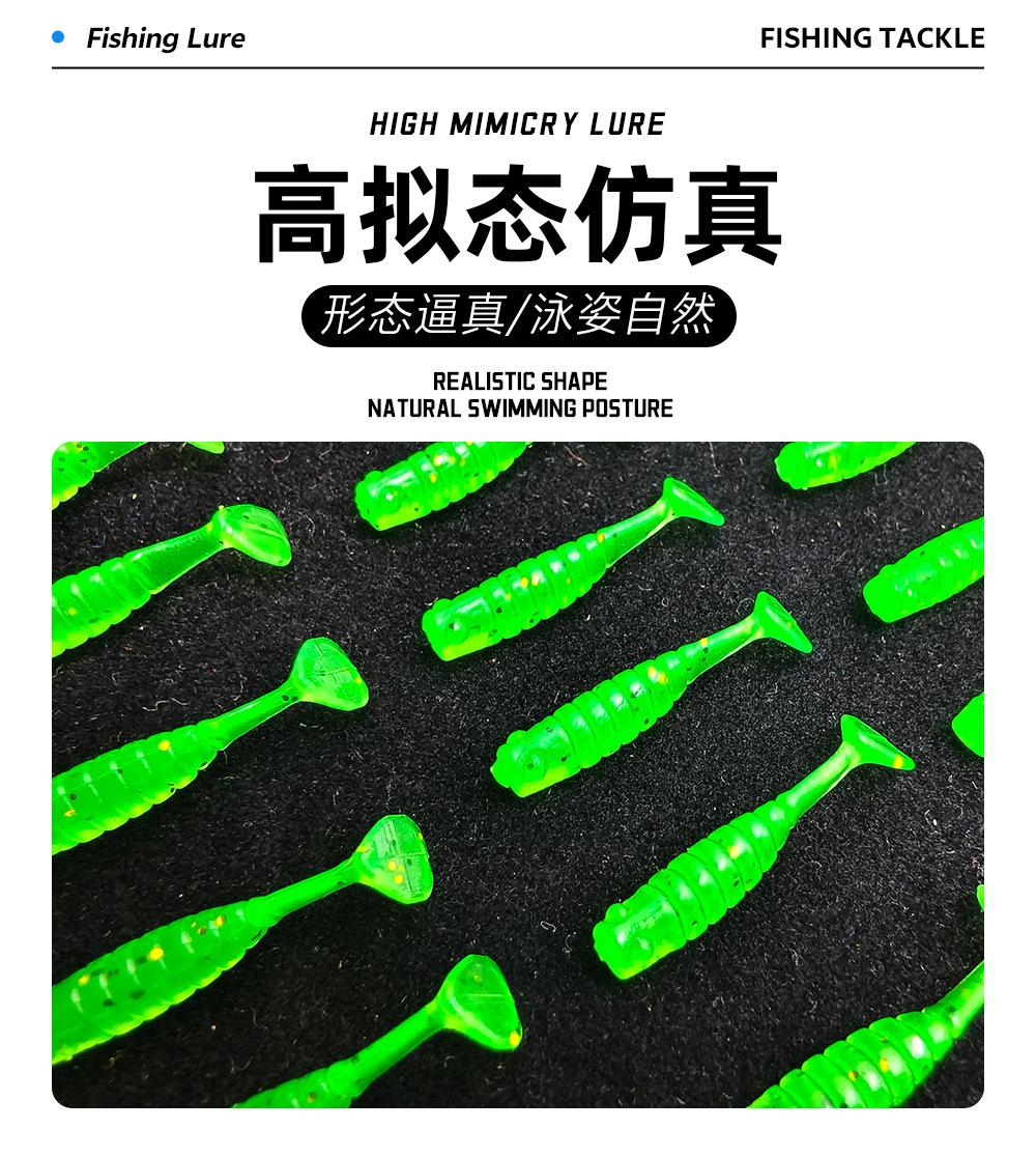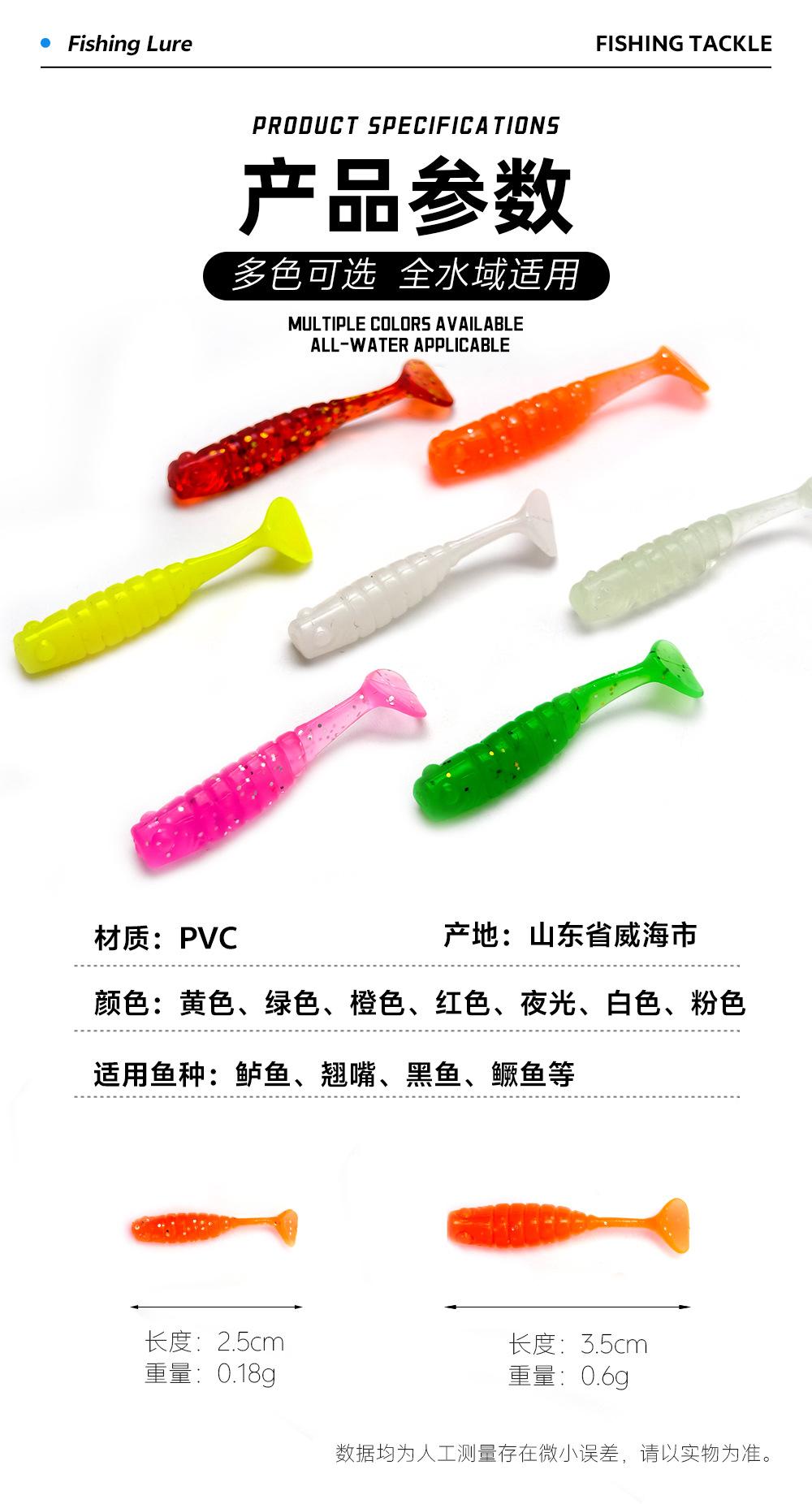 Venta al por mayor de fábrica pesca de raíz micro-objeto boca de caballo blanco señuelo de carretera sub-suave 2.5cm3.5cm pequeña fluctuación cola en T biónico