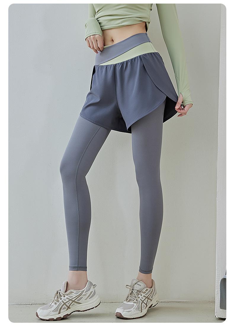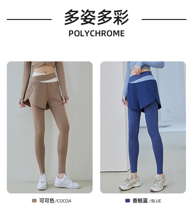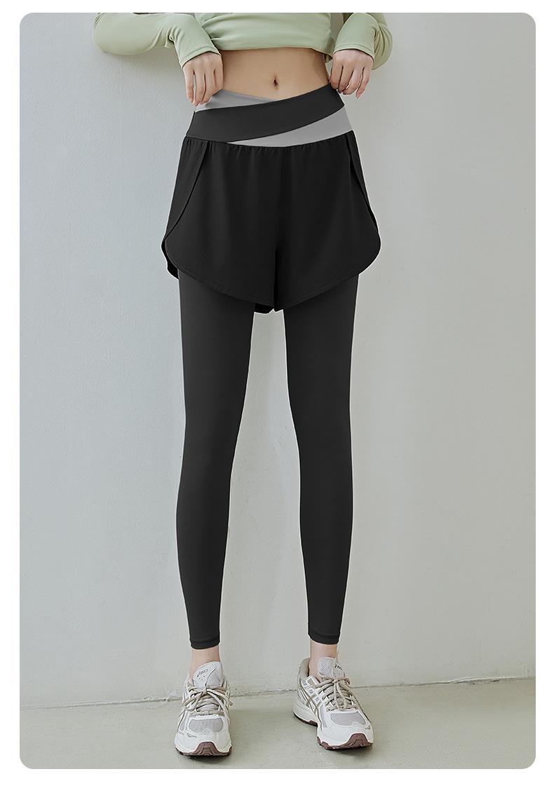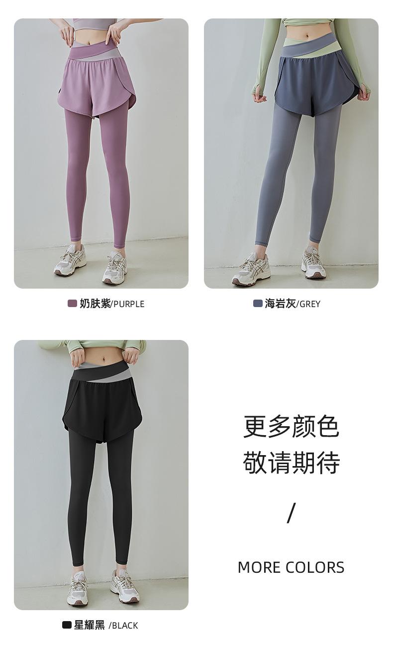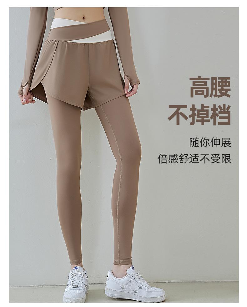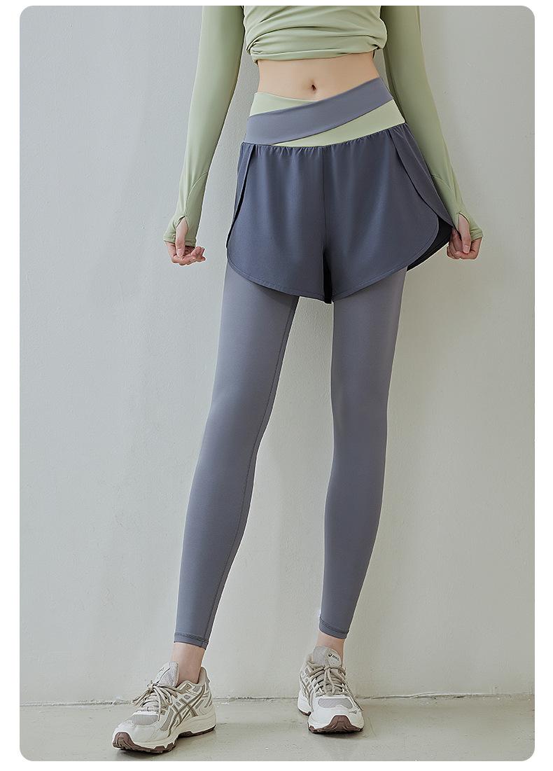 Pantalones de yoga deportivos de dos piezas, de alta elasticidad y falsos, a juego con colores, 2025, nuevos pantalones de fitness de secado rápido, de cintura alta y antiluz.