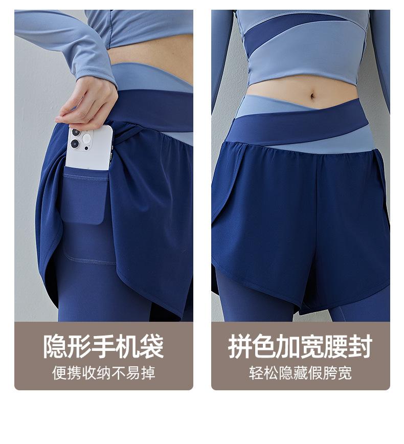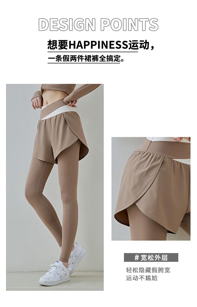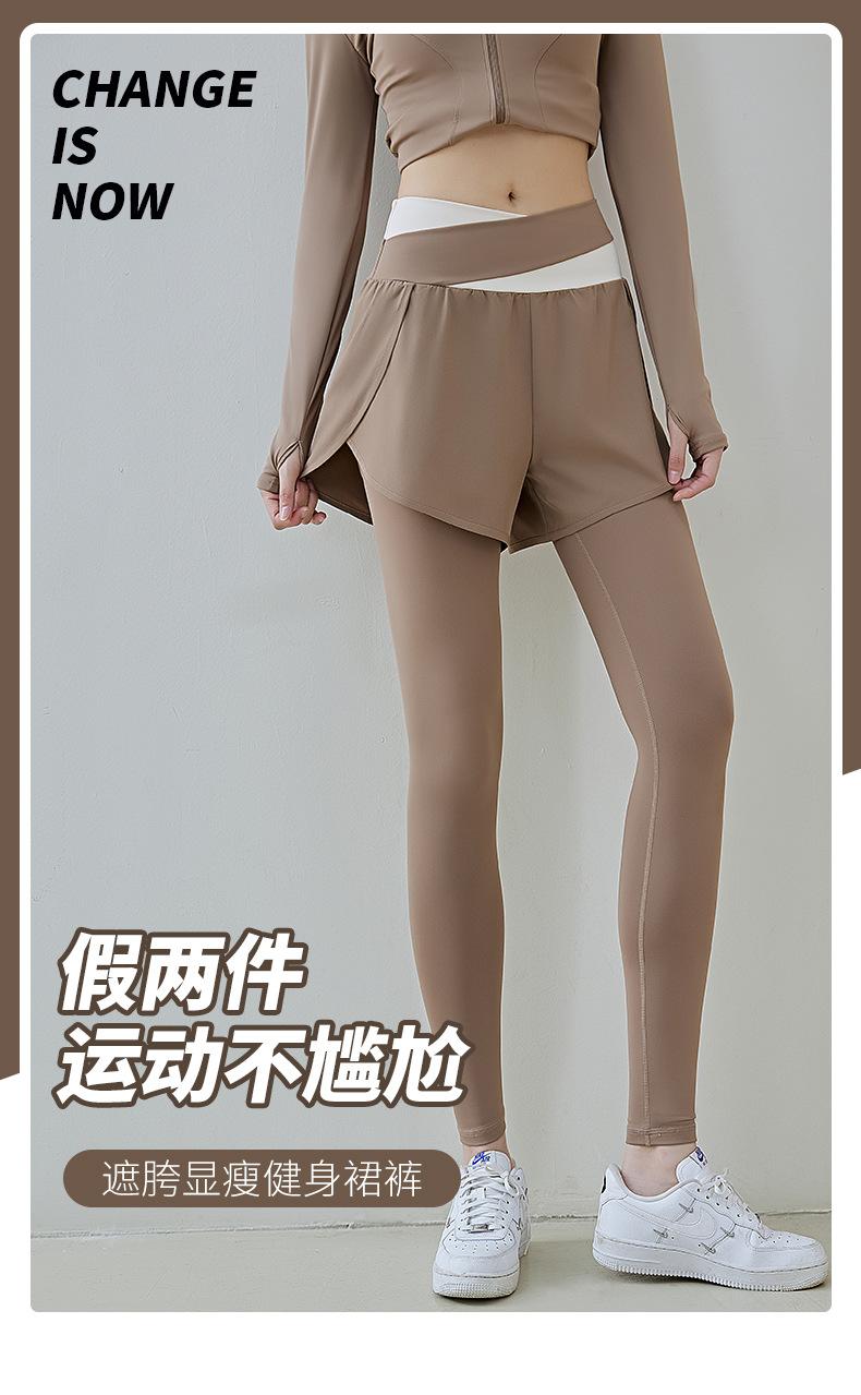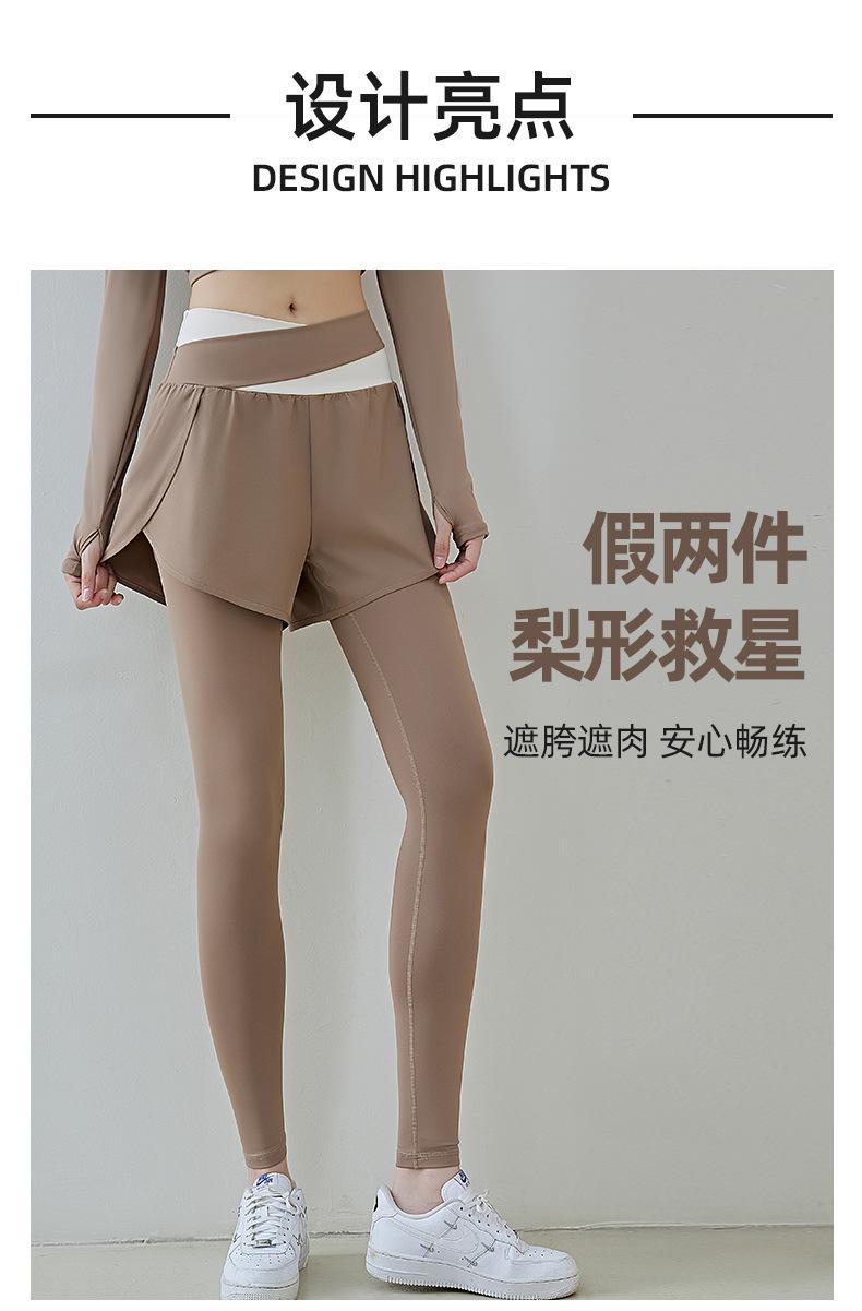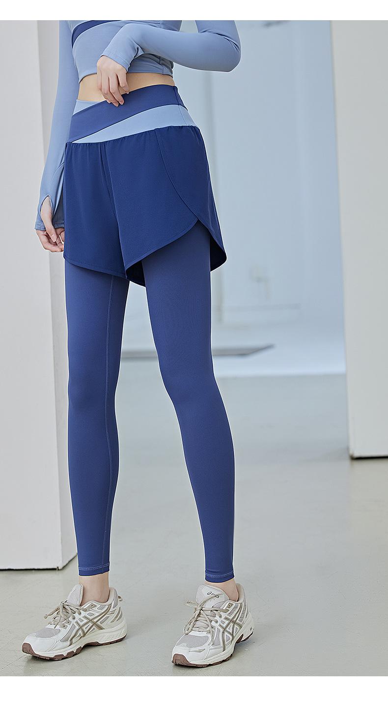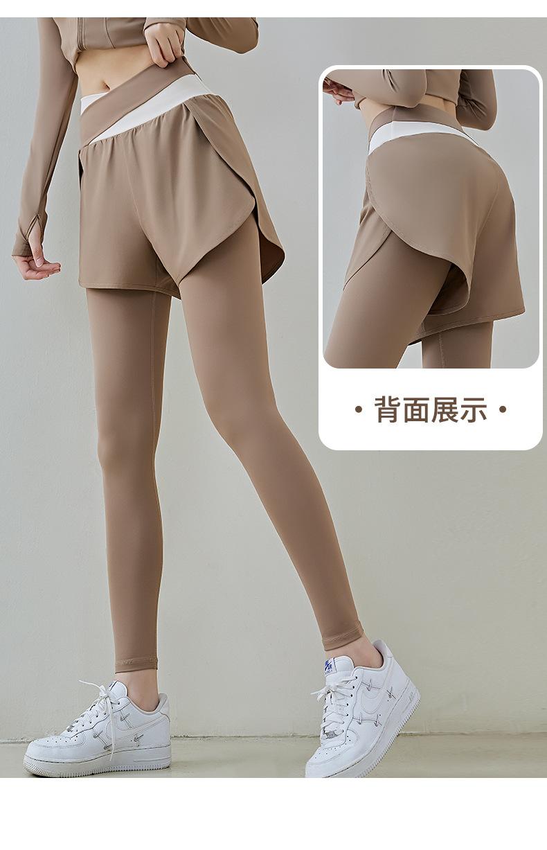 Pantalones de yoga deportivos de dos piezas, de alta elasticidad y falsos, a juego con colores, 2025, nuevos pantalones de fitness de secado rápido, de cintura alta y antiluz.