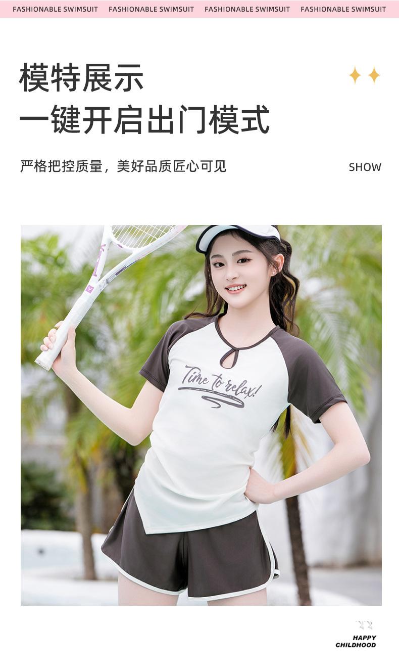 Traje de Baño de Dos Piezas Separado para Mujer Look Adelgazante Cubre Vientre Deportivo Talla Grande 2025 Nuevo Estudiante Conservador Traje de Baño para Aguas Termales