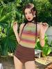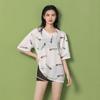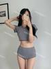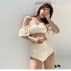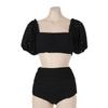 Traje de Baño Dividido Estilo Coreano Nuevo para Mujer Cintura Alta Manga Corta Sin Tirantes Hombro Manga Farol Color Sólido Conservador Traje de Baño para Aguas Termales
