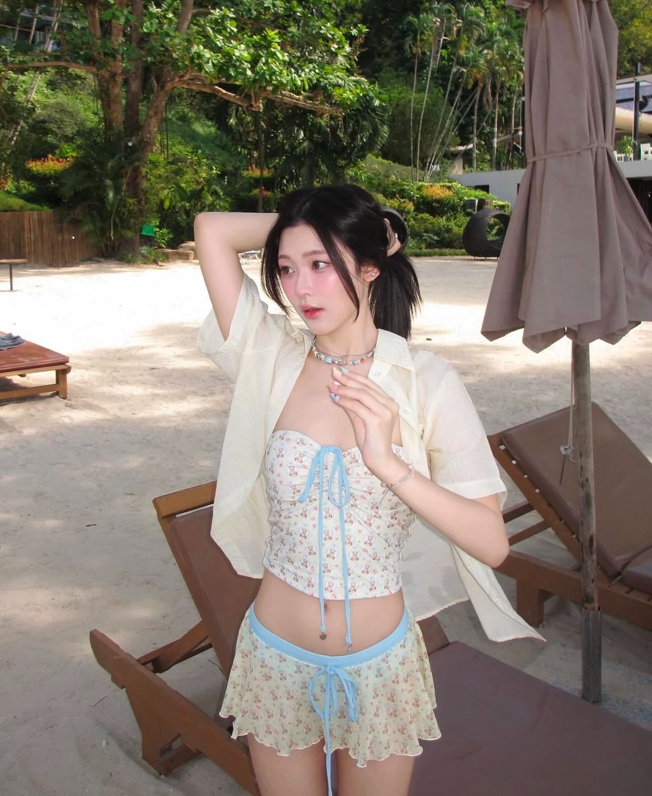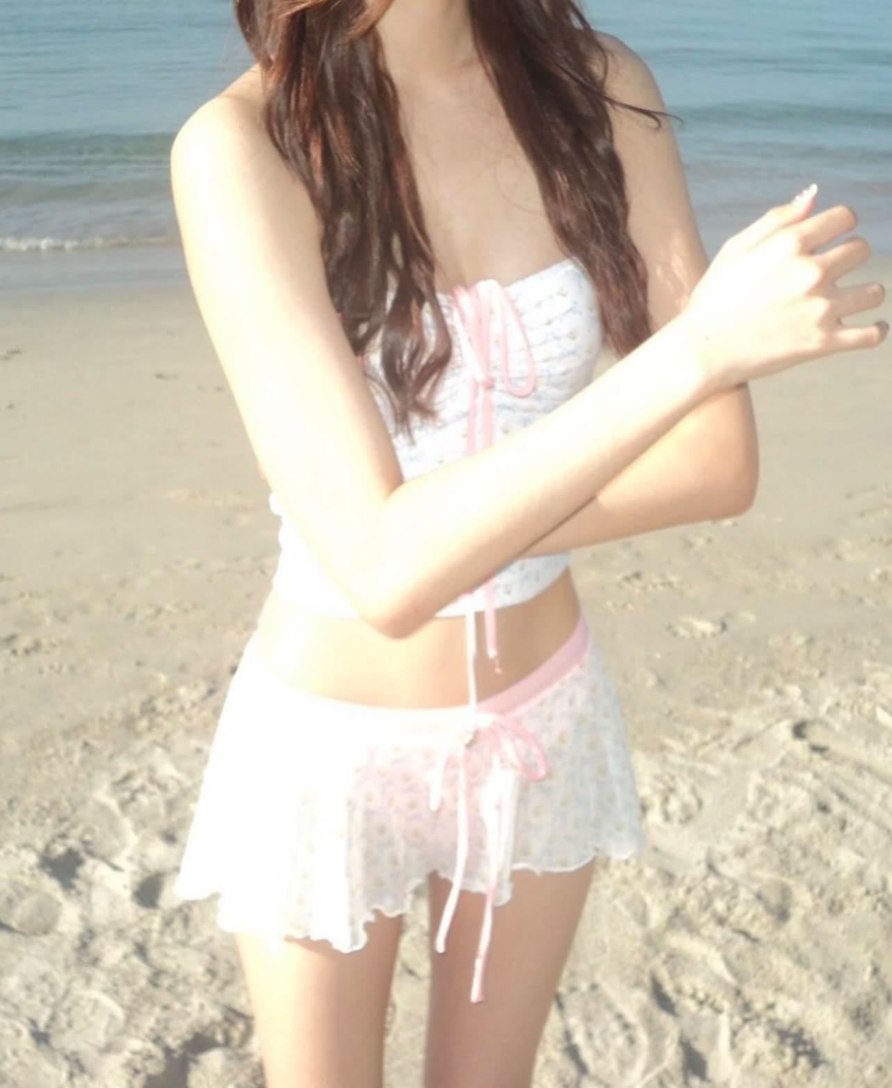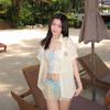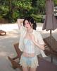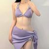 Nuevo Estilo Ins Puro Deseo Bikini Blanco Fresco Pequeño de Alta Gama Vacaciones Junto al Mar Traje de Baño Dividido de Tres Piezas para Mujer