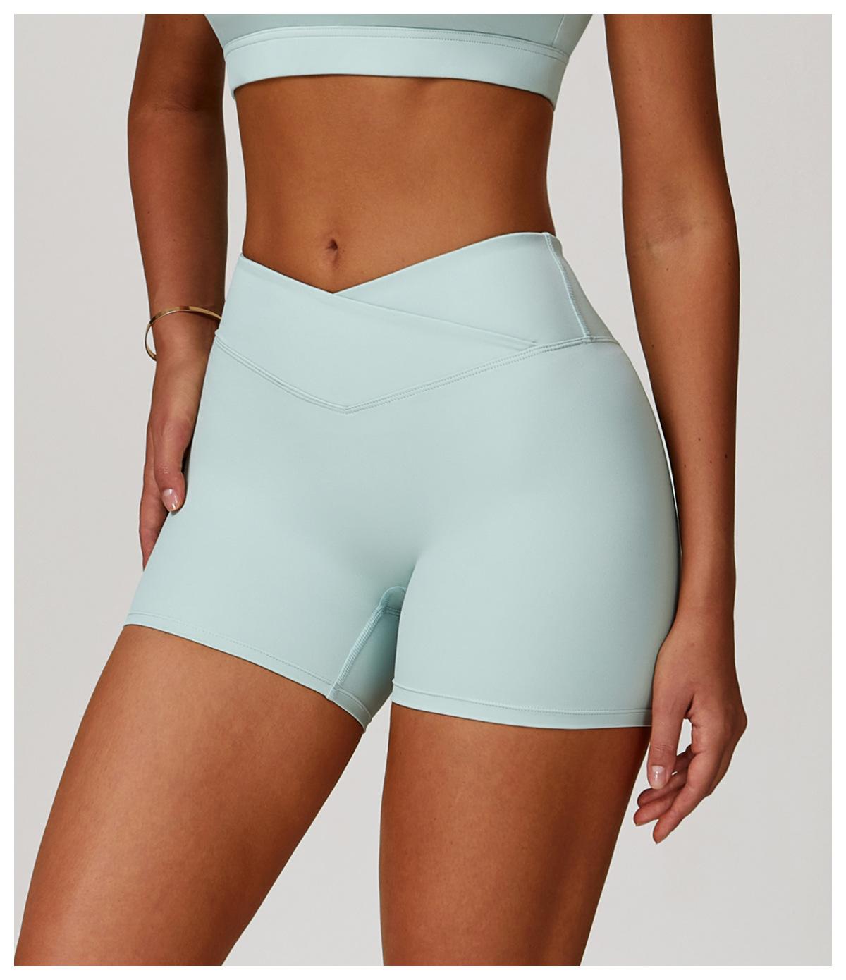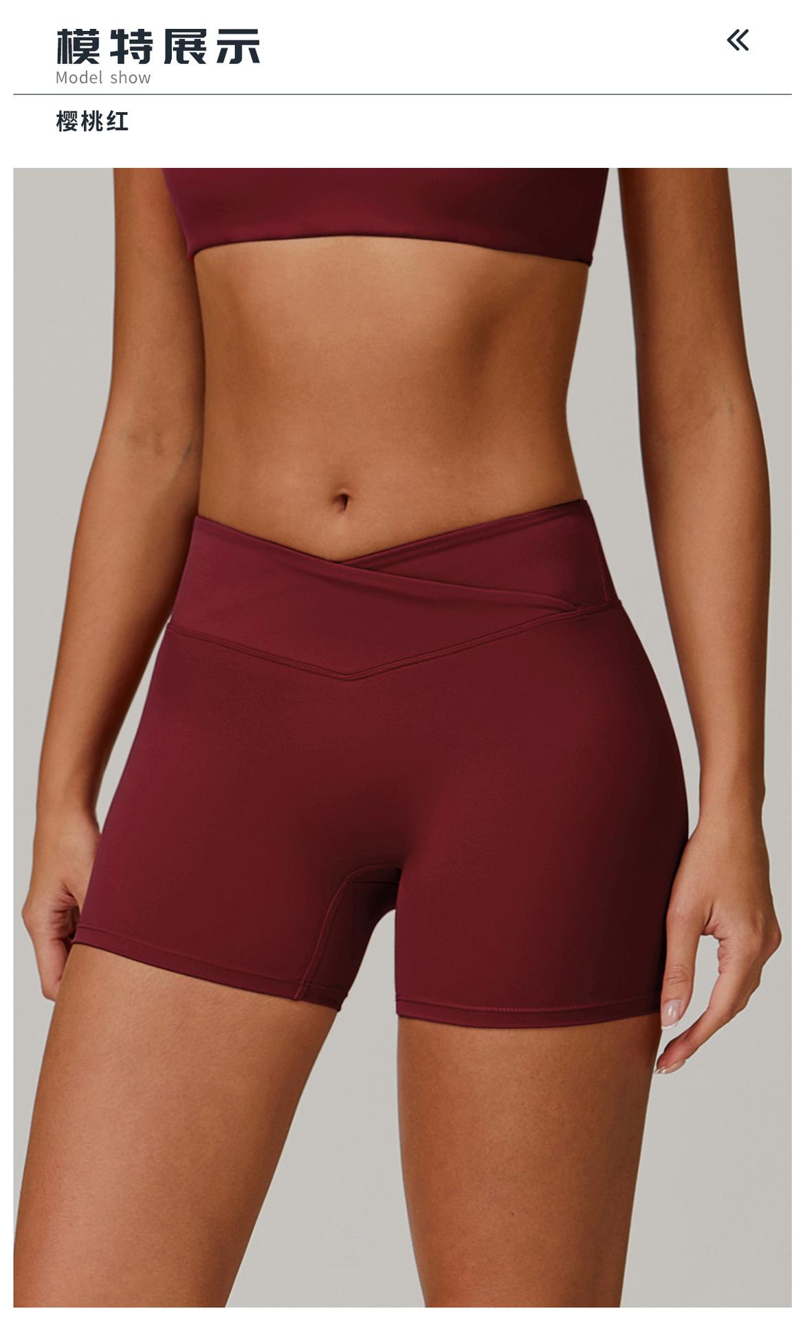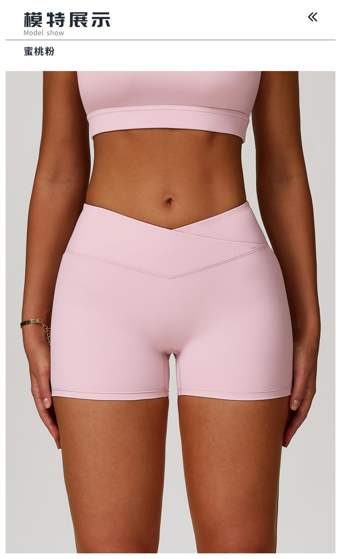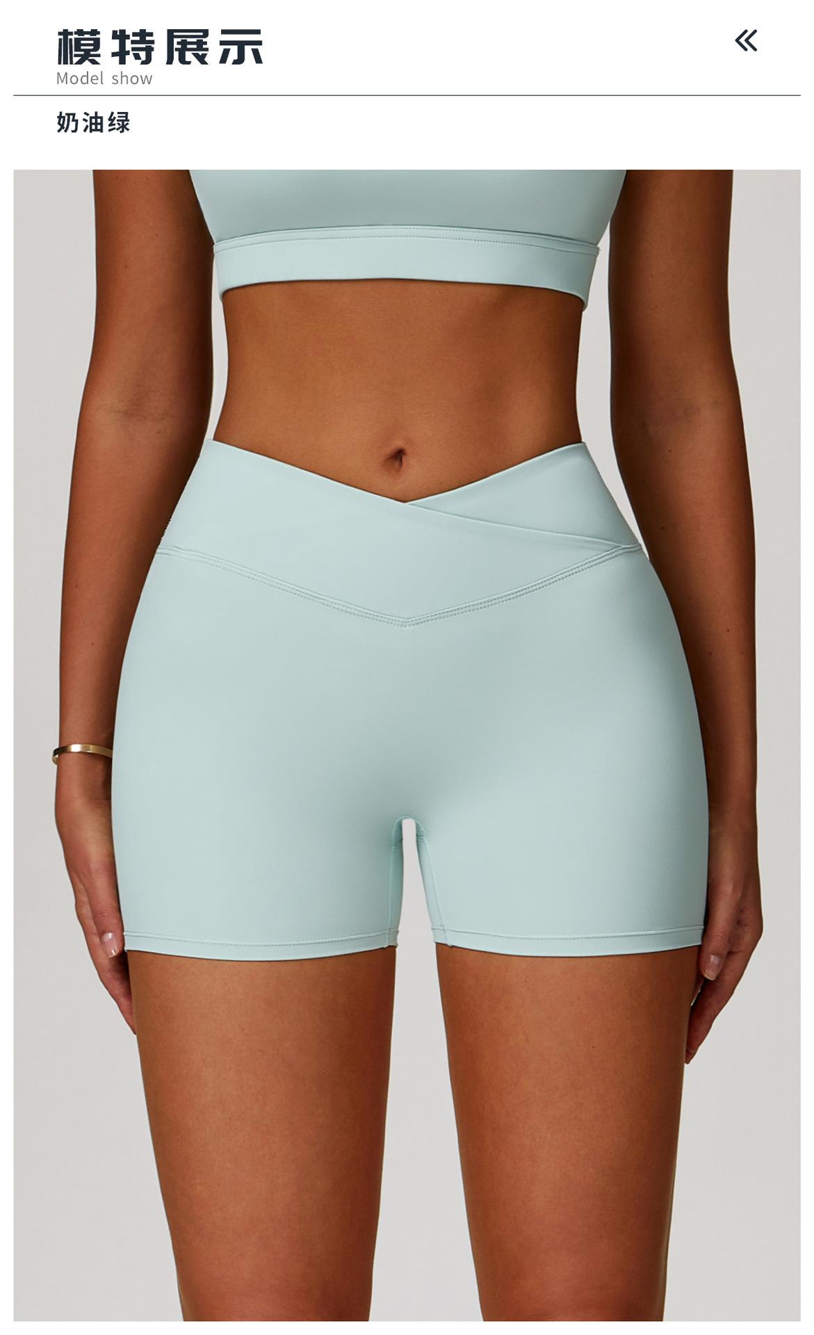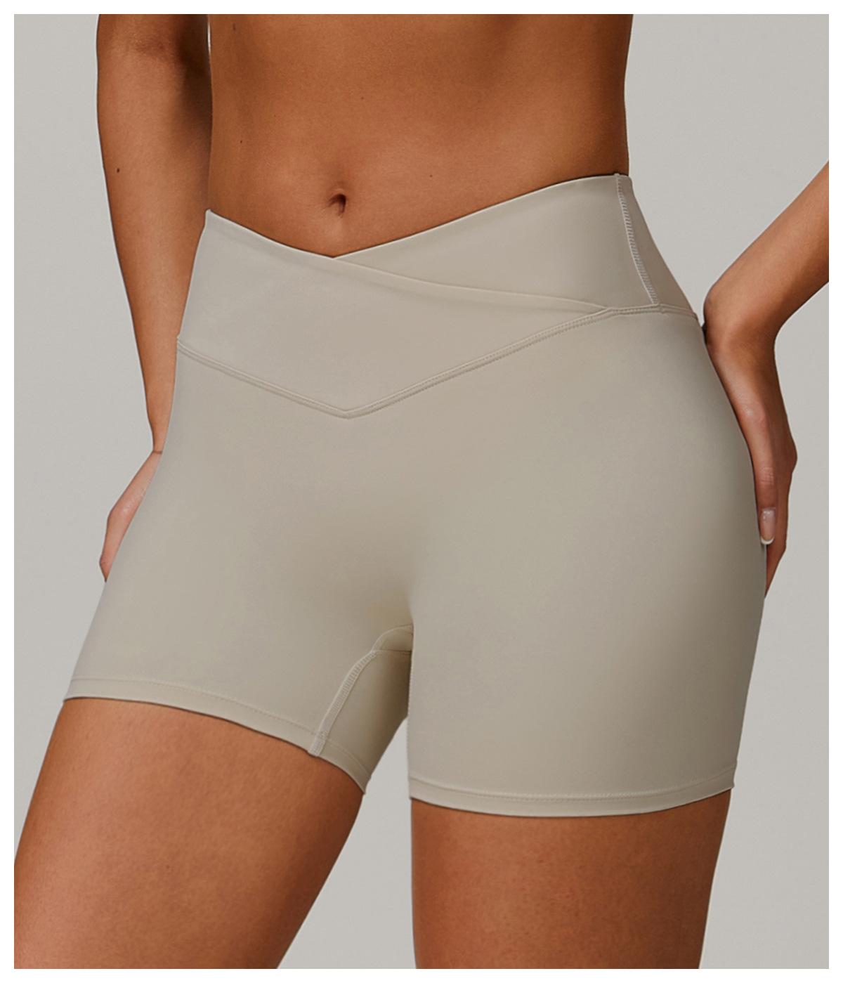 Ze Chuang Naked Cross Shorts de Yoga de Cintura Alta Melocotón Ajustados Levanta Glúteos Shorts Deportivos Ropa Exterior para Mujer Pantalones de Fitness 9177