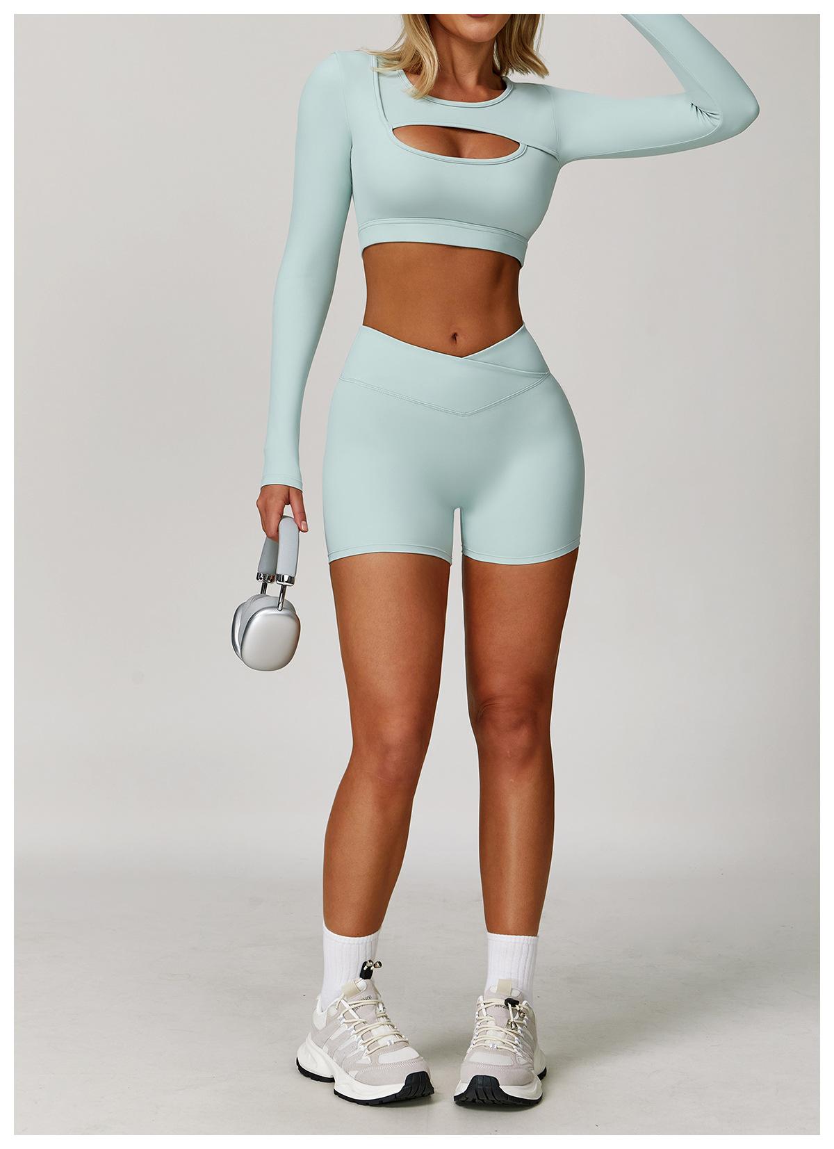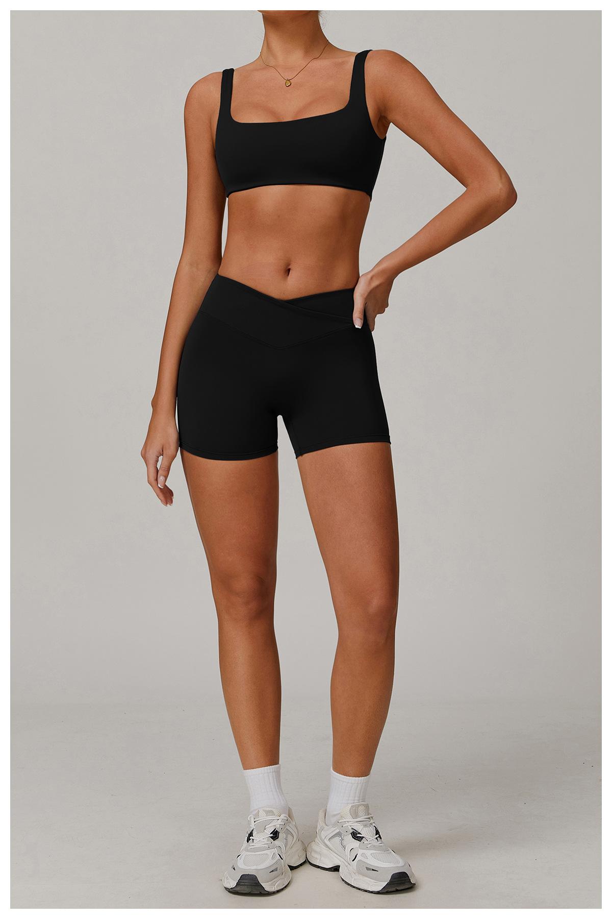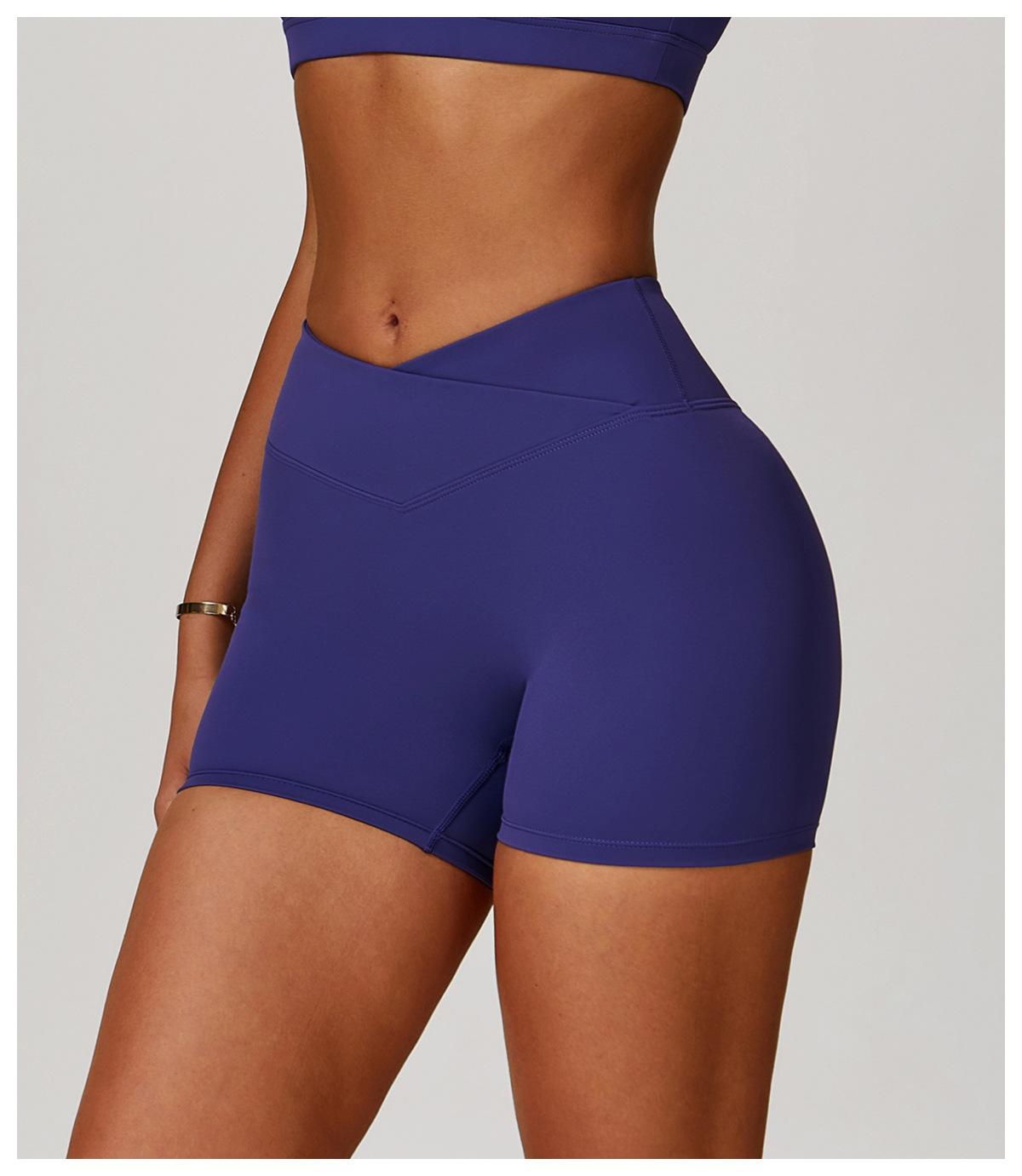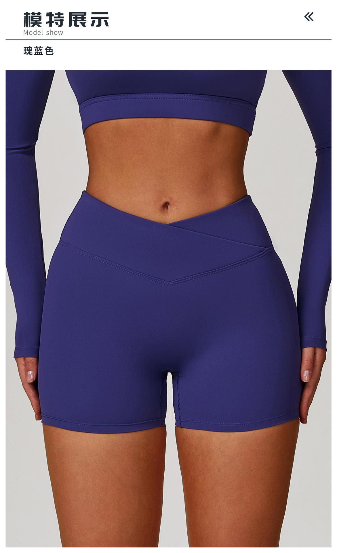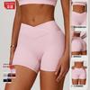 Ze Chuang Naked Cross Shorts de Yoga de Cintura Alta Melocotón Ajustados Levanta Glúteos Shorts Deportivos Ropa Exterior para Mujer Pantalones de Fitness 9177