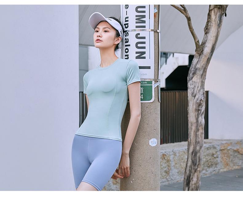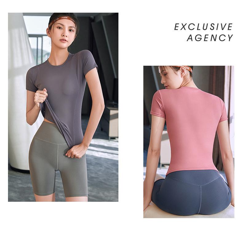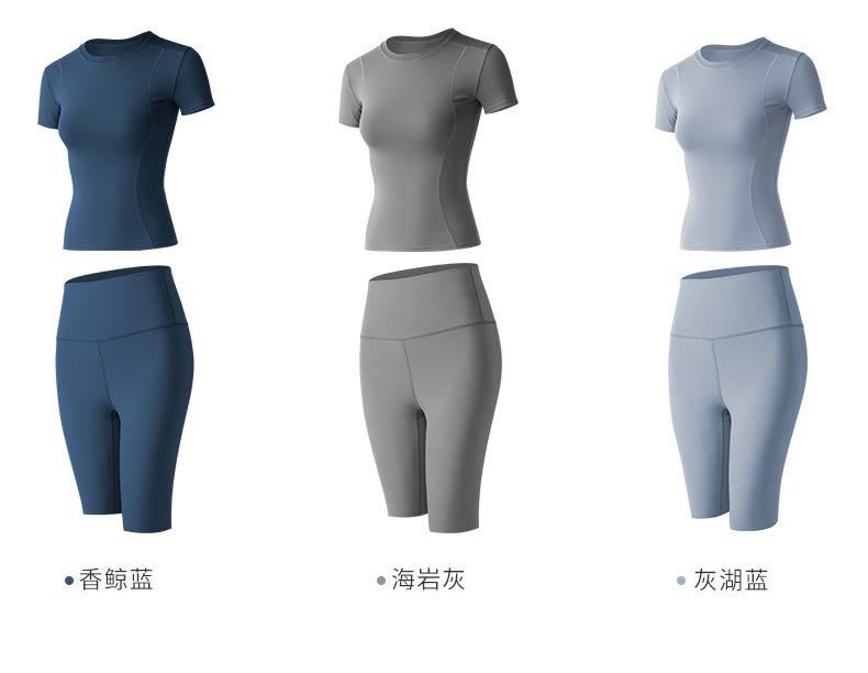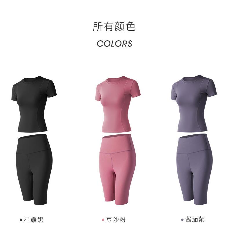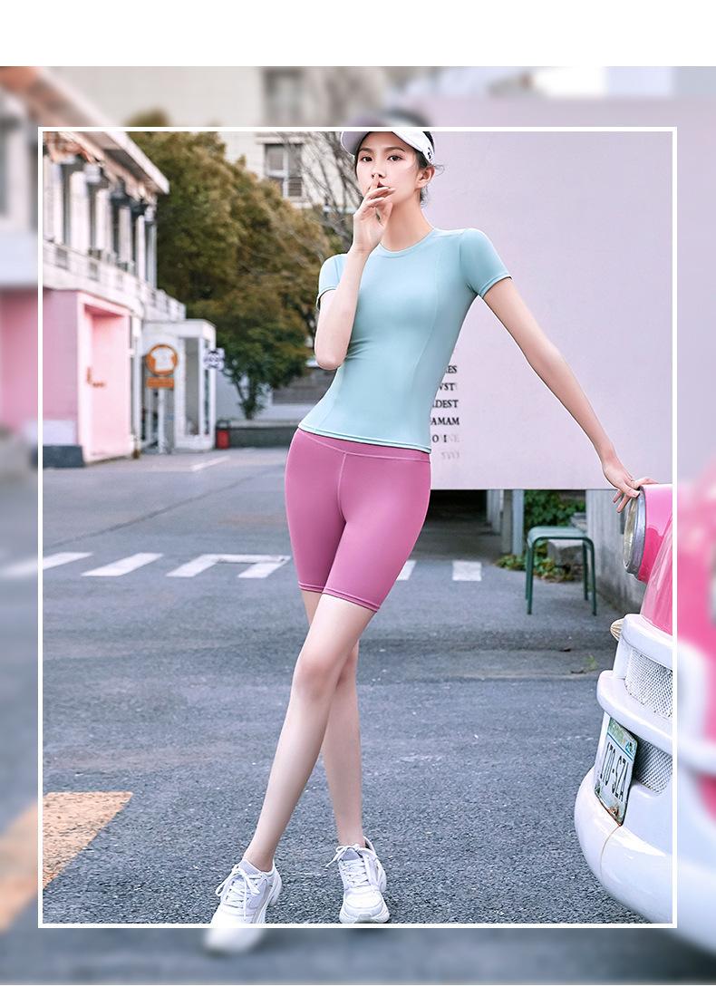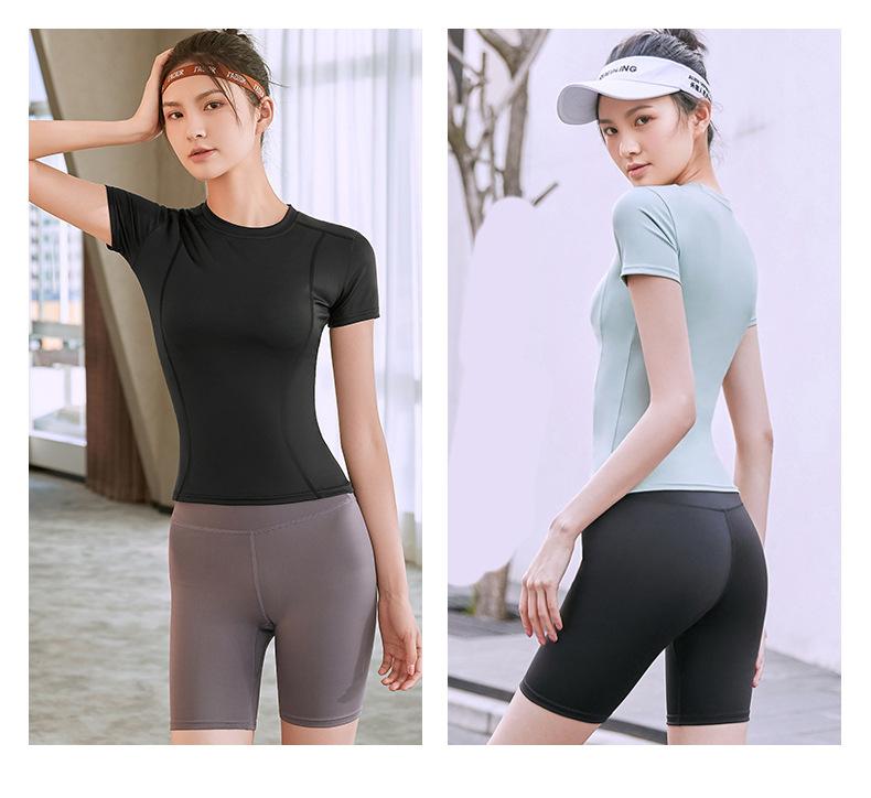 Ropa de Yoga para Mujer Verano Profesional para Correr Fitness Traje Deportivo Moda Popular de Internet Ajustado Adelgazante Sexy Manga Corta Shorts