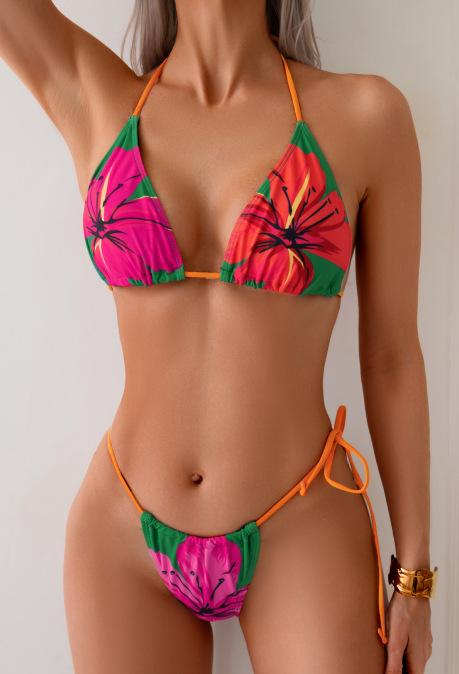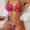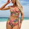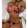 Traje de baño bikini europeo y americano de comercio exterior 2025 Nuevo bikini de tres puntos sexy sin espalda estampado Traje de baño dividido para mujer