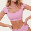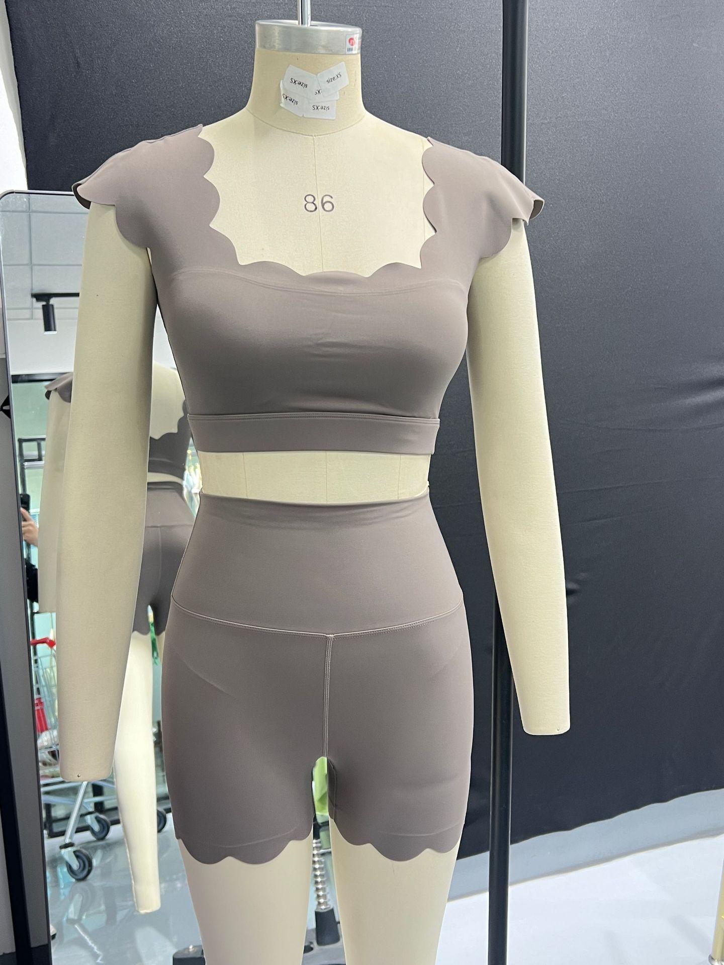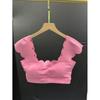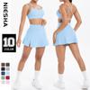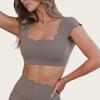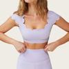 Top deportivo de manga corta para mujer, estilo europeo y americano, con pantalones de encaje fruncidos, para yoga, novedad de 2024
