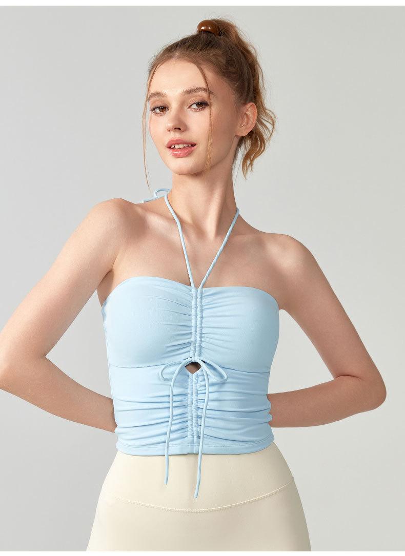 Camisola halter de primavera y verano para mujer, prenda exterior entallada, plisada y adelgazante, top interior sin tirantes para Spice Girl