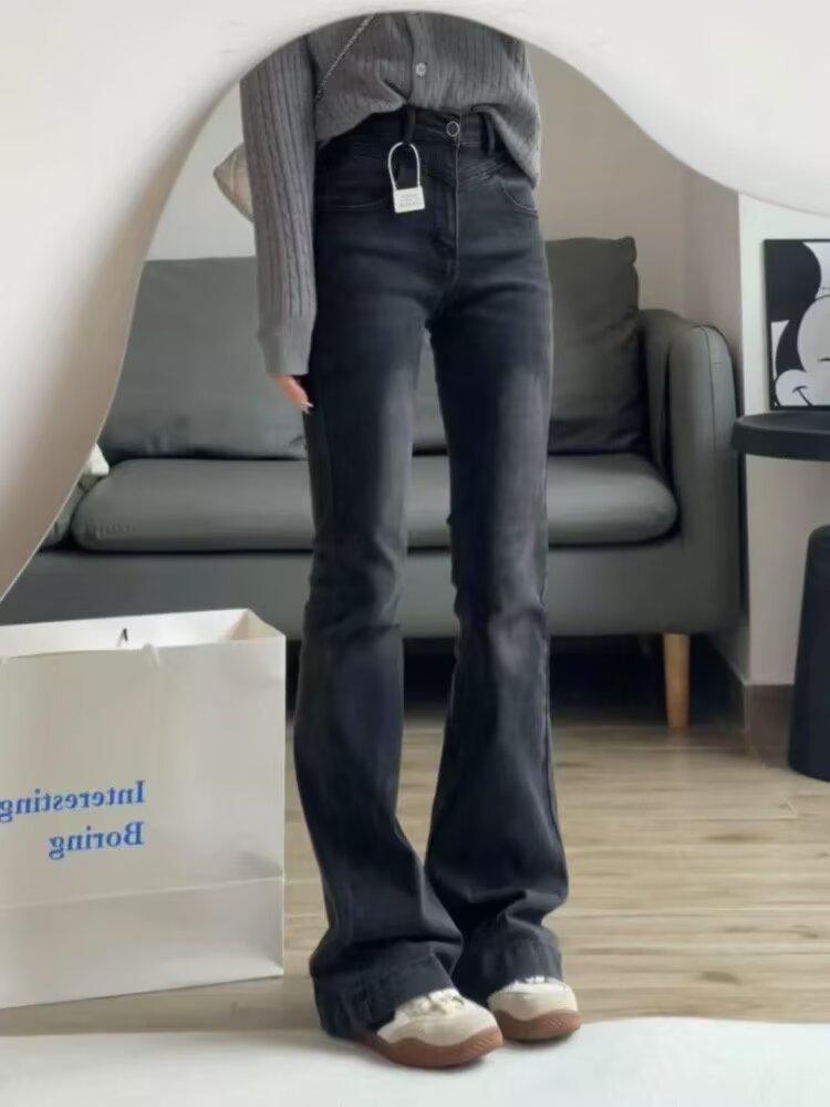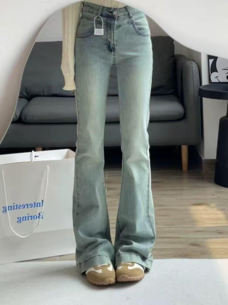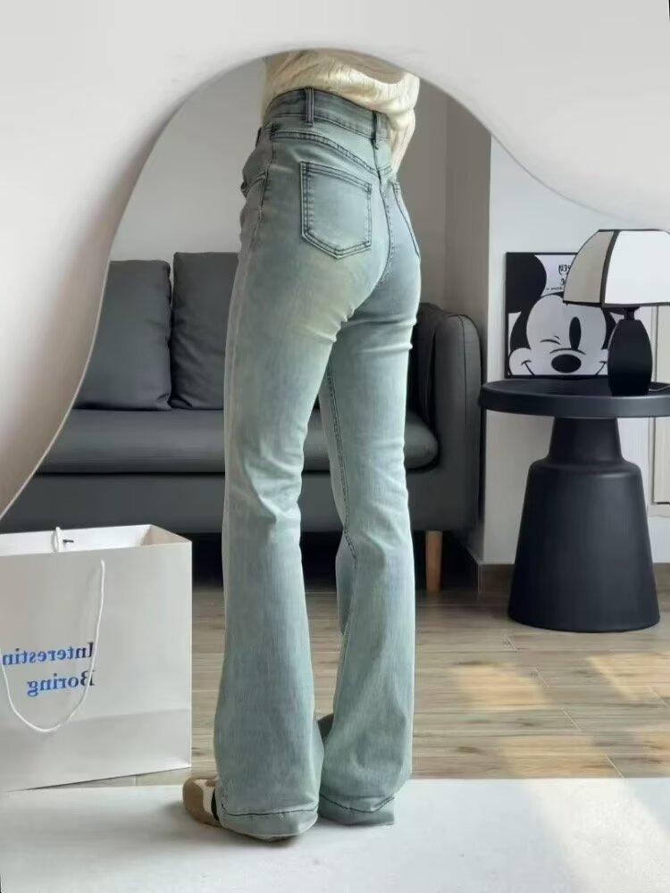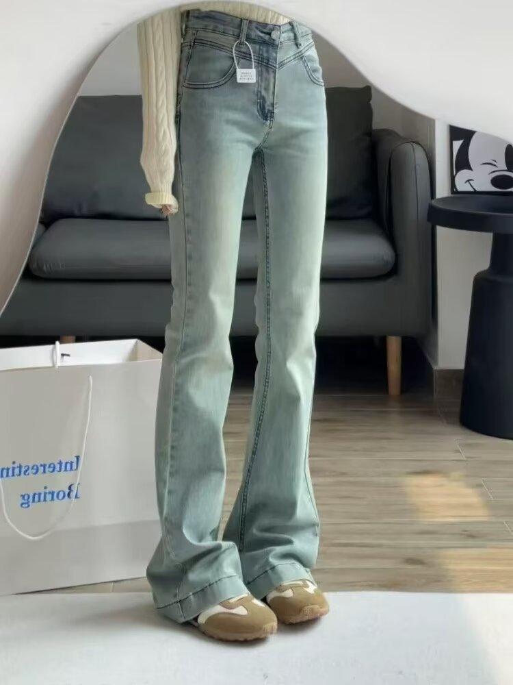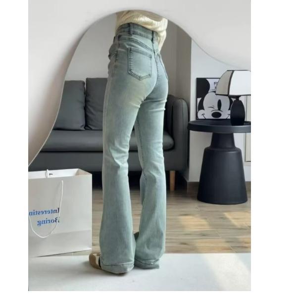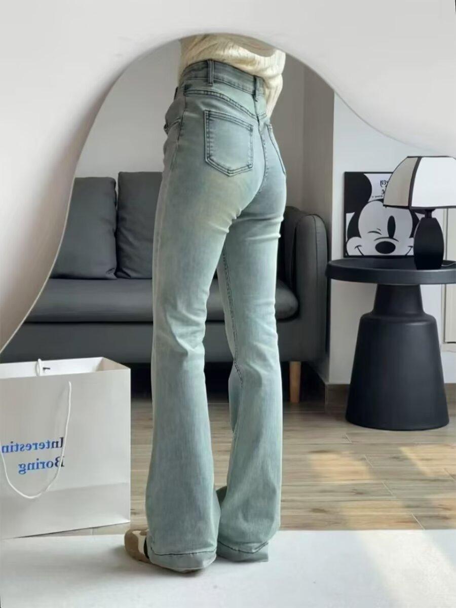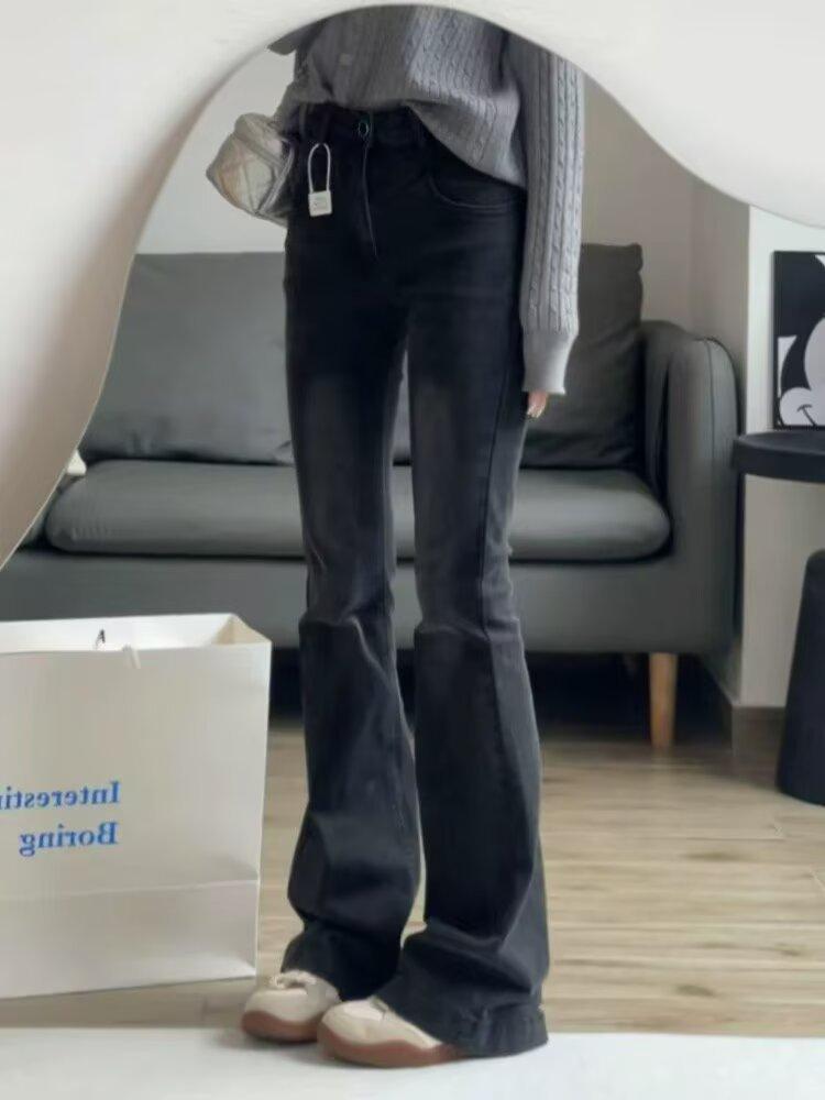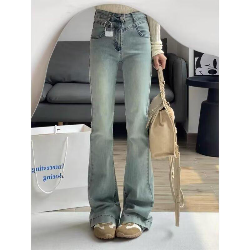 Talla grande Jeans Retro Elásticos Microacampanados para Mujer Primavera y Otoño chica gordita Forma de Pera Cintura Alta Adelgazantes Rectos de Herradura