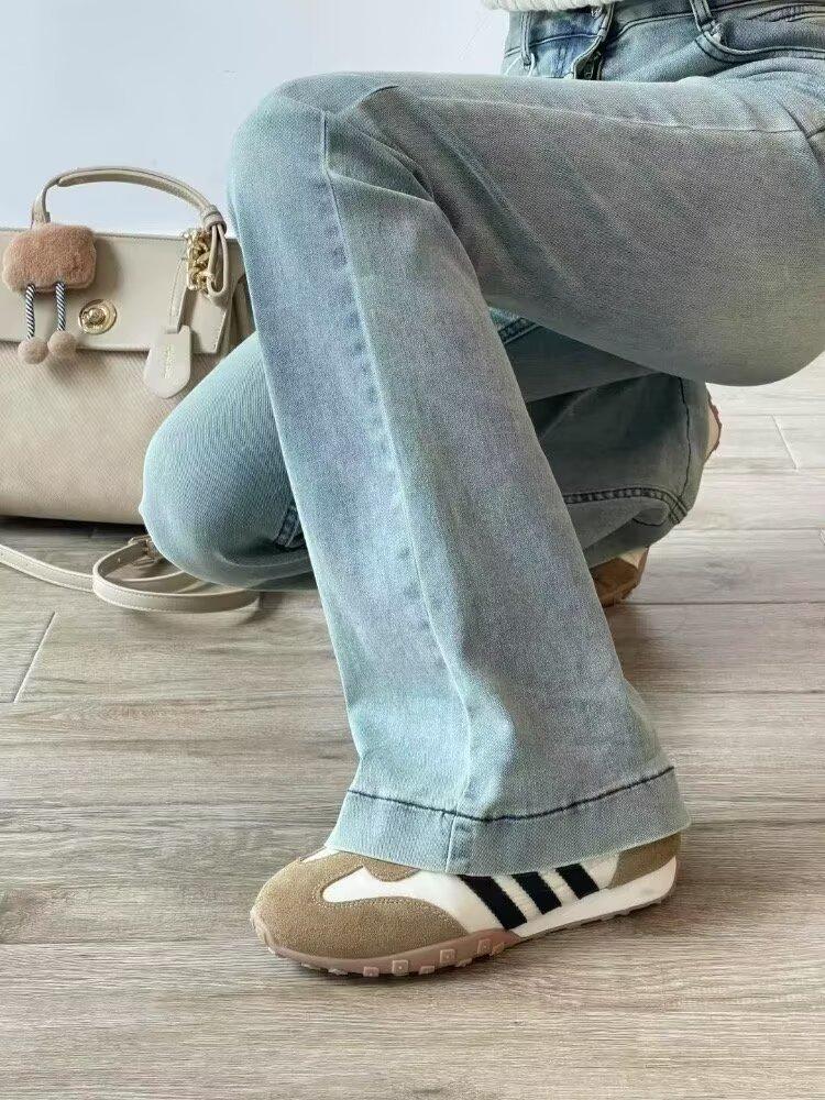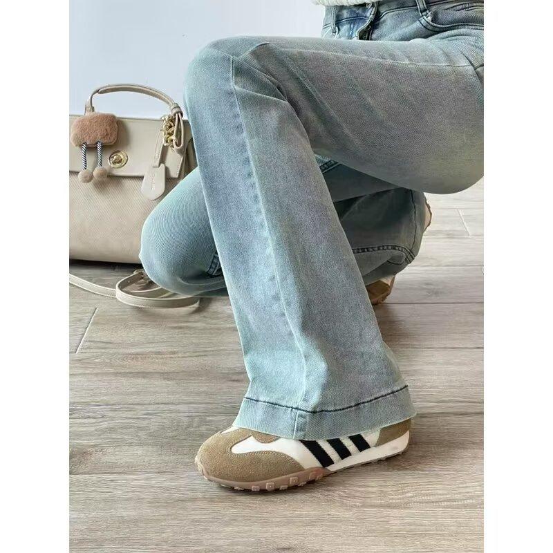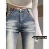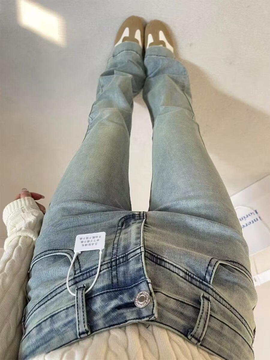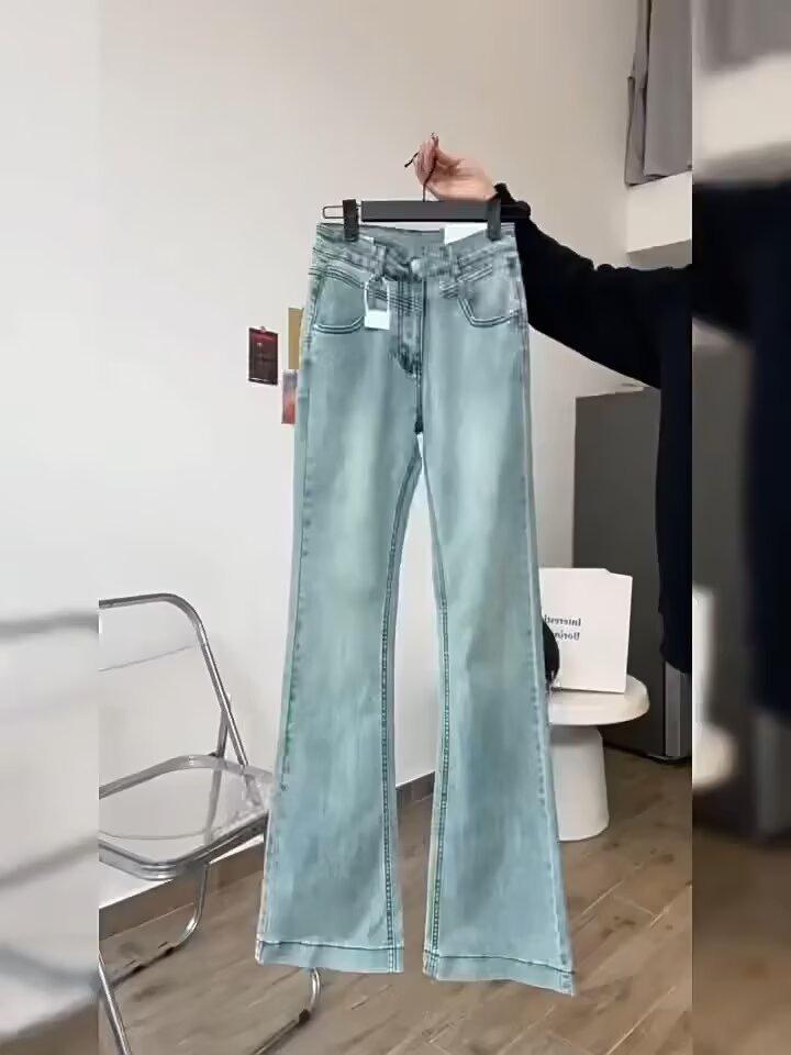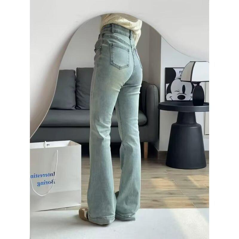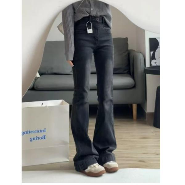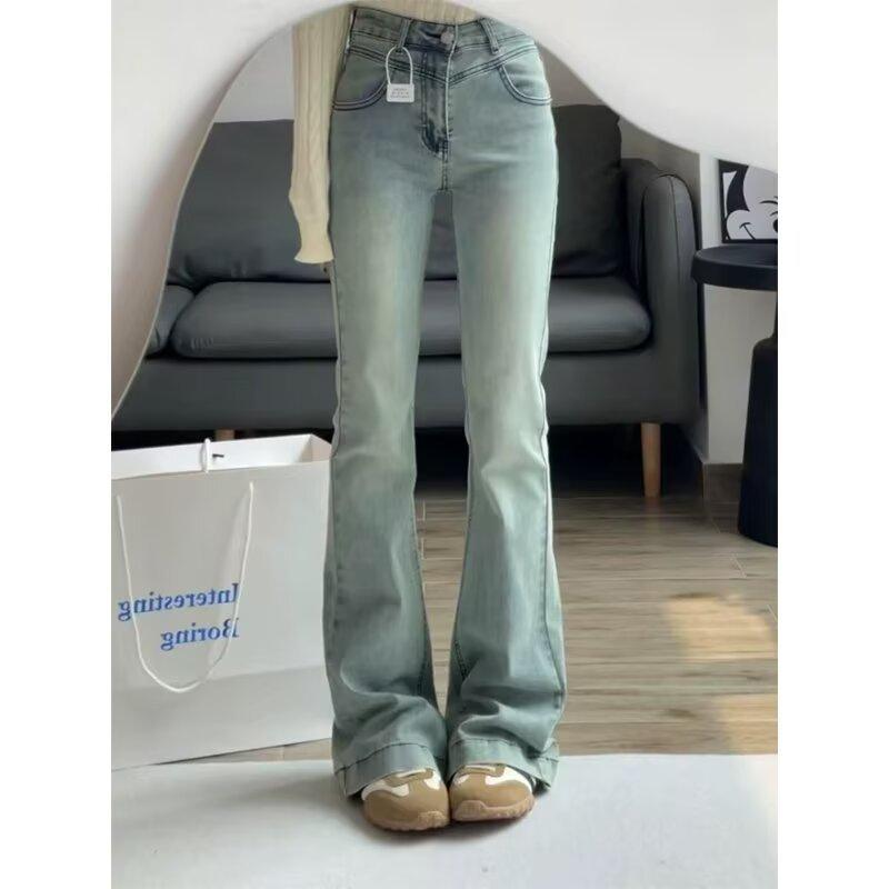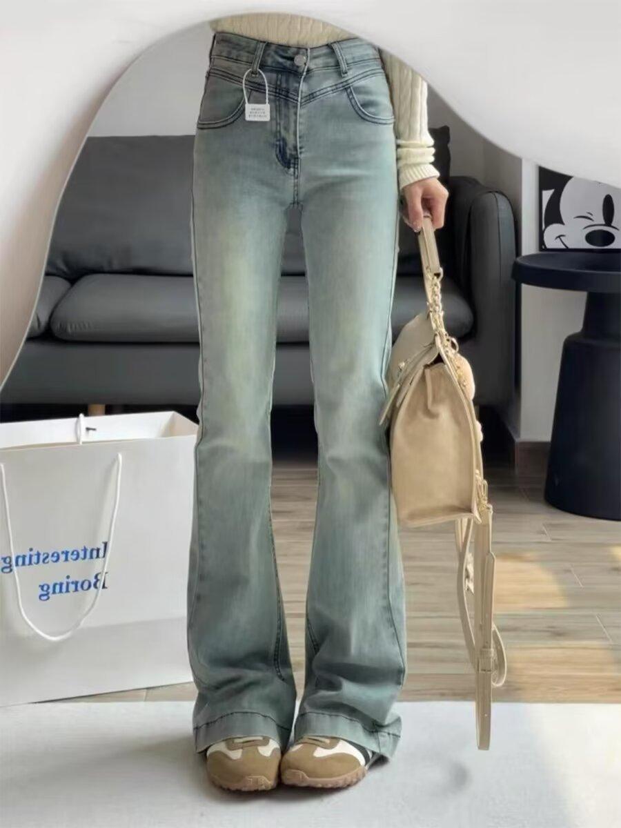 Talla grande Jeans Retro Elásticos Microacampanados para Mujer Primavera y Otoño chica gordita Forma de Pera Cintura Alta Adelgazantes Rectos de Herradura