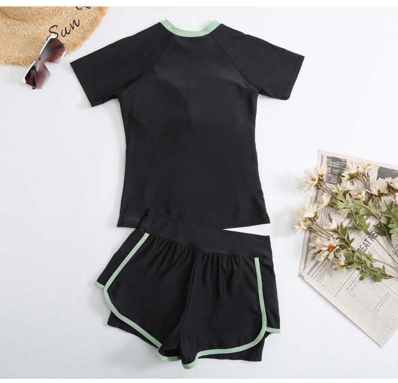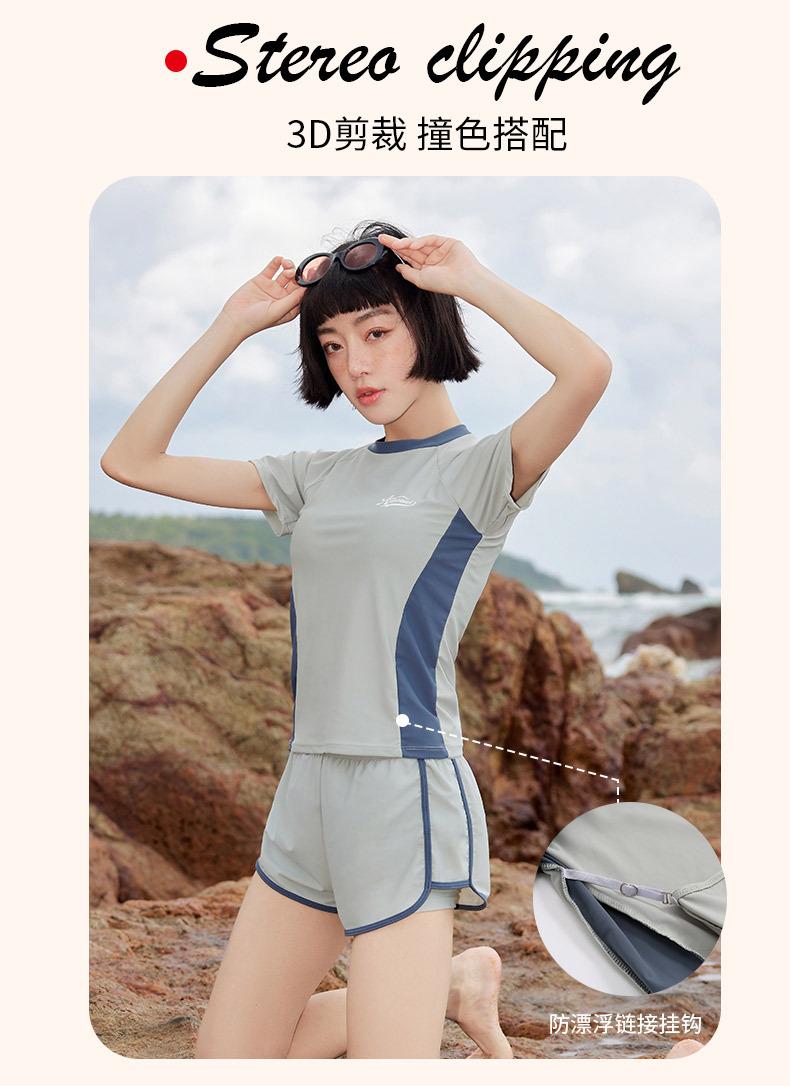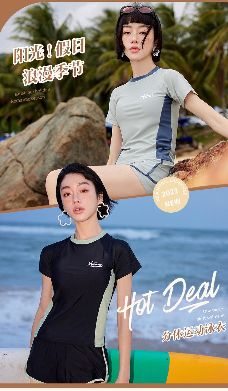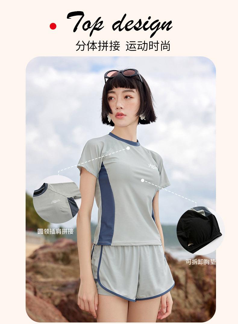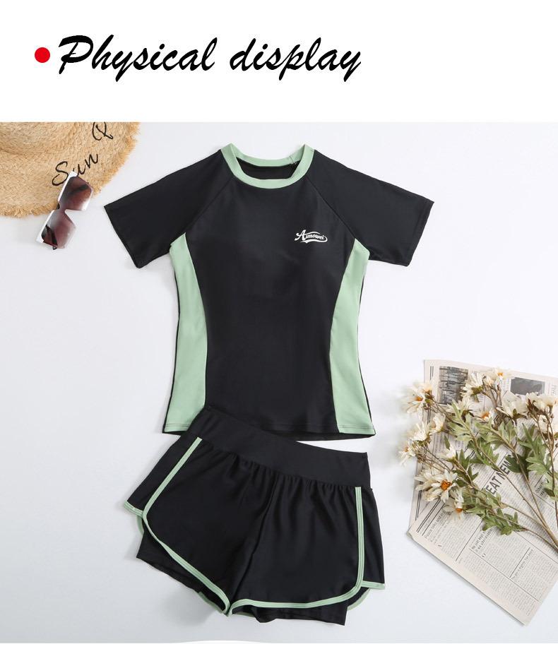 Traje deportivo dividido Traje de baño para mujer Casual Manga corta Shorts Secado rápido Verano Traje de baño estilo extranjero talla grande Talla extra grande