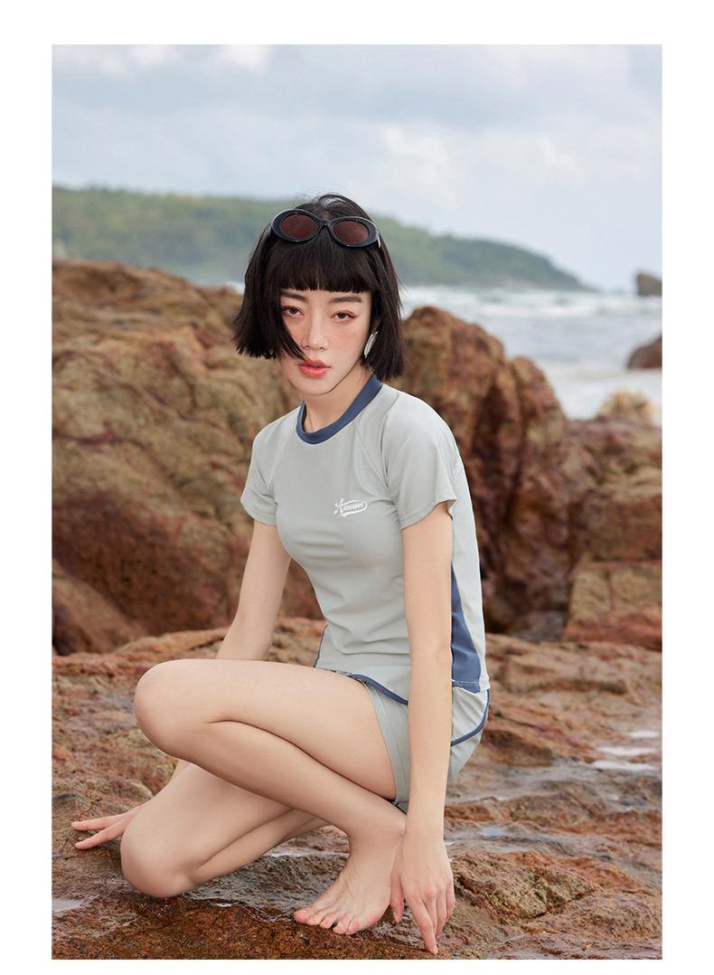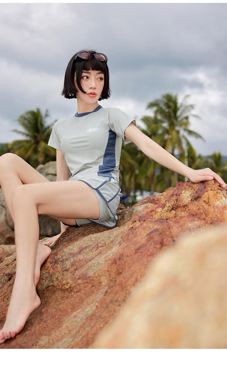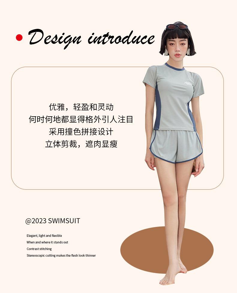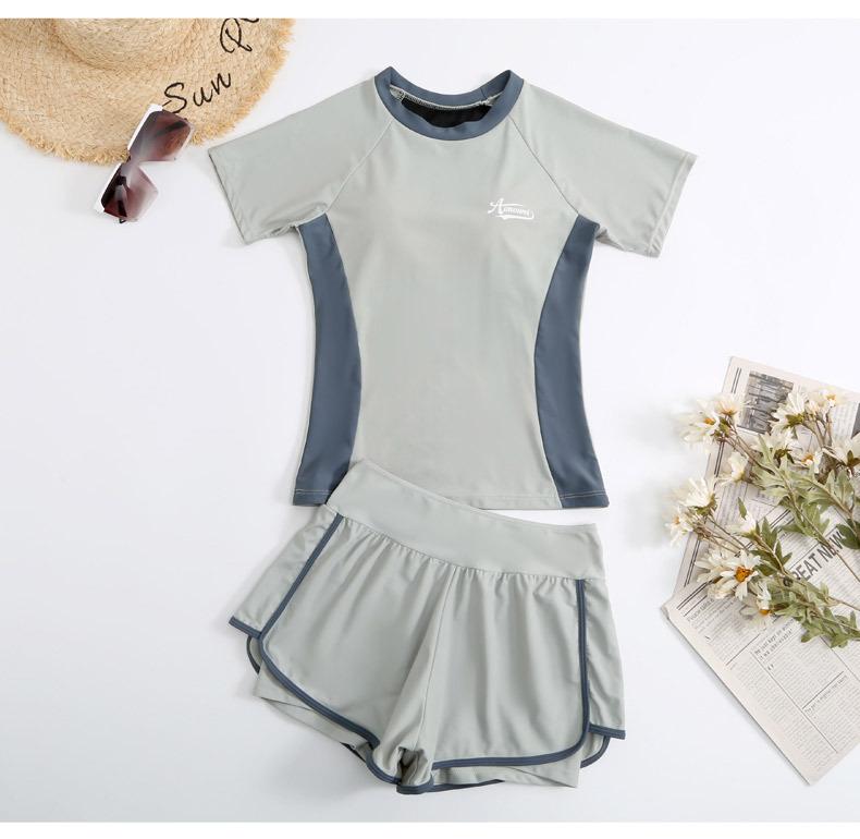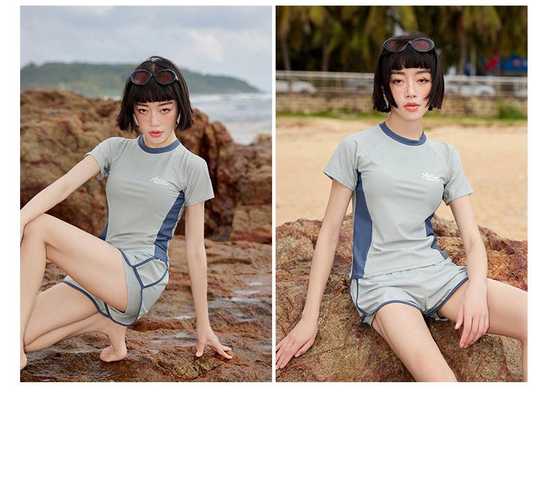 Traje deportivo dividido Traje de baño para mujer Casual Manga corta Shorts Secado rápido Verano Traje de baño estilo extranjero talla grande Talla extra grande