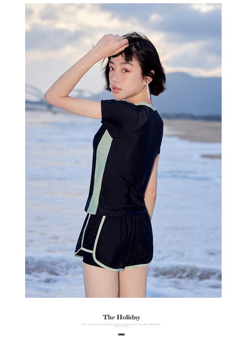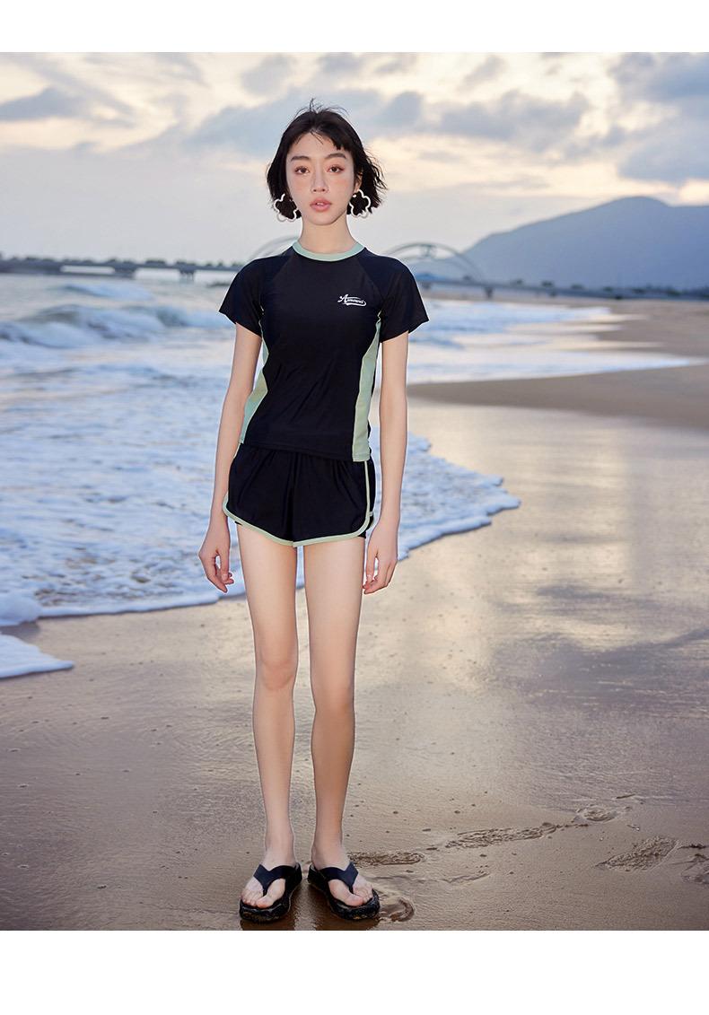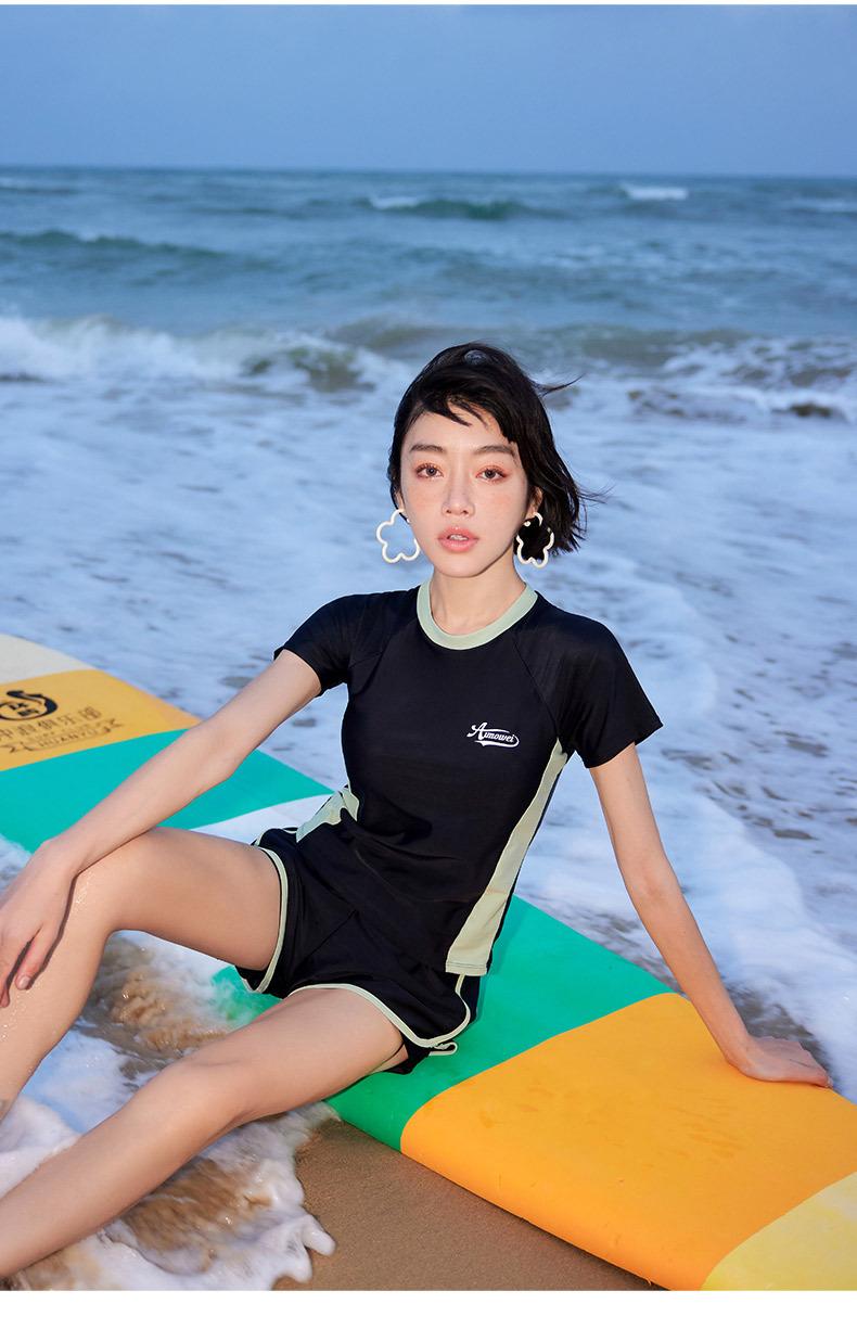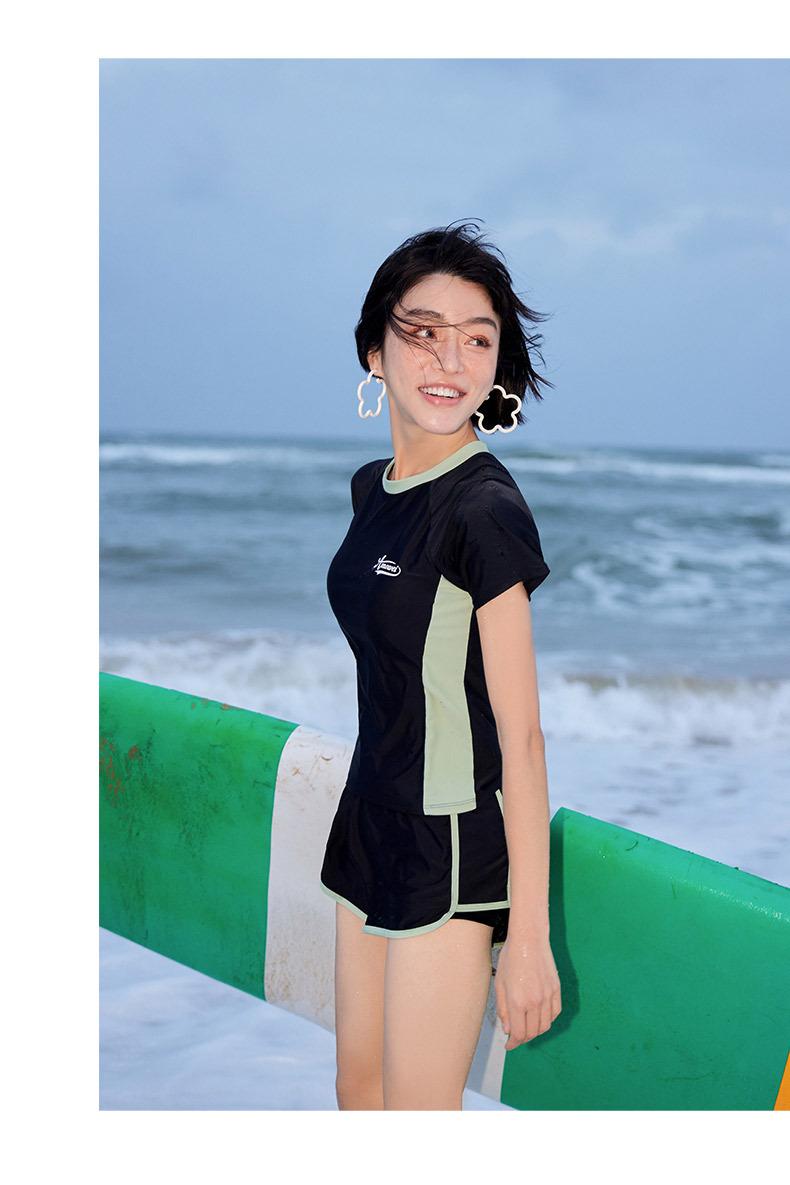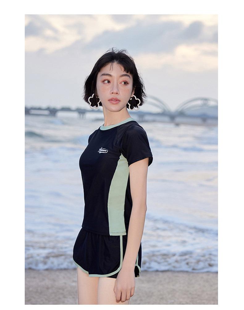 Traje deportivo dividido Traje de baño para mujer Casual Manga corta Shorts Secado rápido Verano Traje de baño estilo extranjero talla grande Talla extra grande