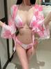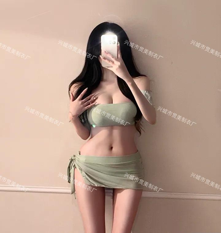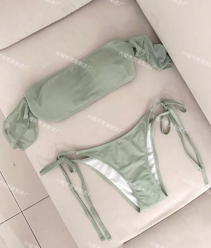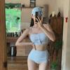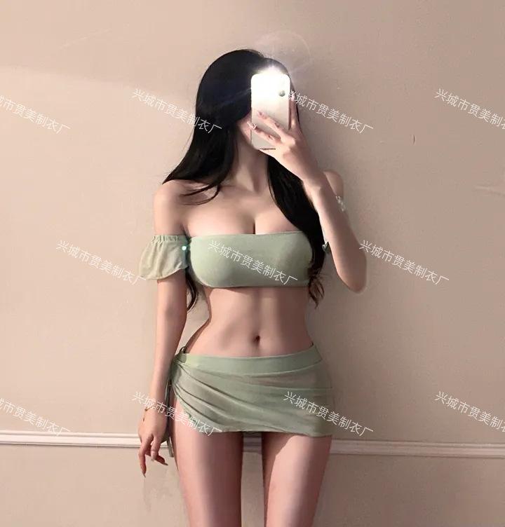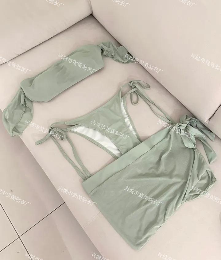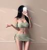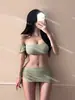 [2 Colores] Nuevo Conjunto de Tres Piezas de Malla de Manga Corta con Vuelo Pequeño Ins Pecho Pequeño Fruncido Cubre Vientre Delgado Traje de Baño para Vacaciones en Aguas Termales para Mujer