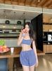 Shorts casuales a rayas azules para mujer, estilo veraniego, finos, con encaje, nuevos estilos 2024, shorts de pierna ancha para estar en casa.