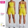 Nuevo Traje Deportivo Ropa de Fitness para Mujer Ajustado Sexy Manga Corta Shorts Ropa de Yoga con Almohadilla en el Pecho Set de Sujetador Venta al por Mayor