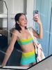 Nuevo Estilo Ins Gradiente Strapless Retro Simple de Tres Piezas Bolsa Falda Estilo Cadera Sexy de Alta Gama con Abertura Traje de Baño para Mujer