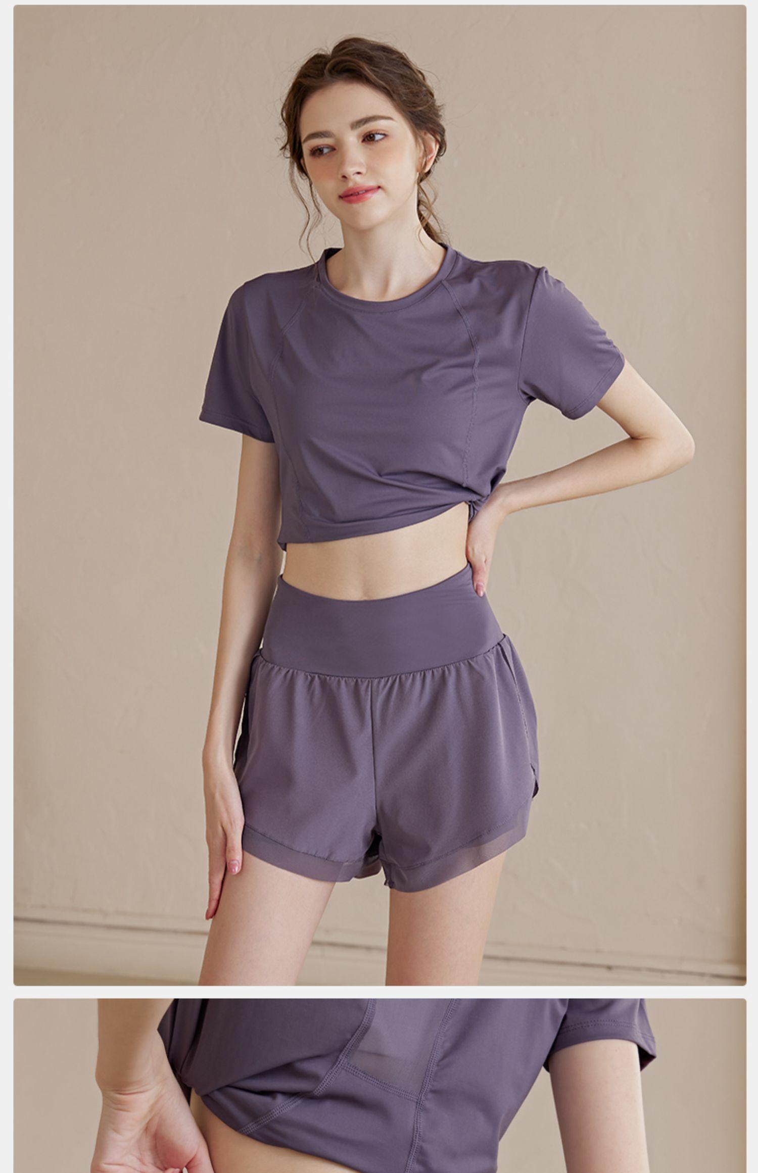 Pantalones cortos deportivos de verano para mujer, de cintura alta, holgados, adelgazantes, informales, de secado rápido, para yoga, fitness, de dos piezas.
