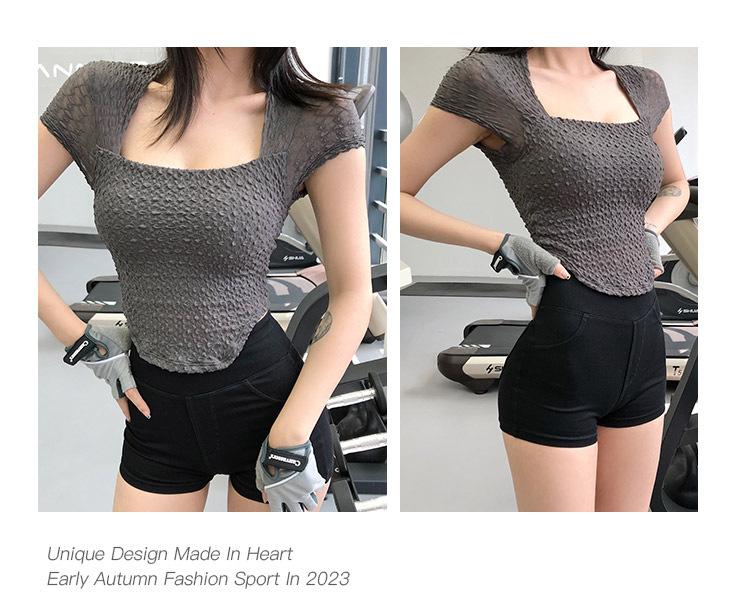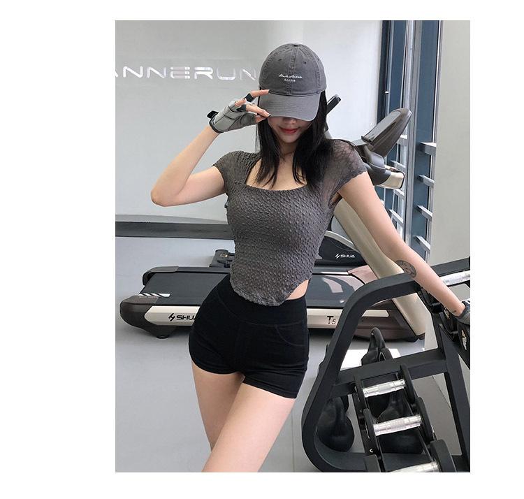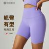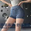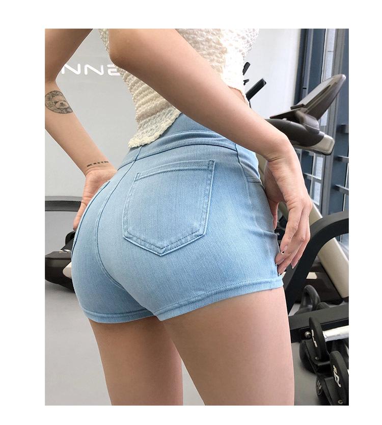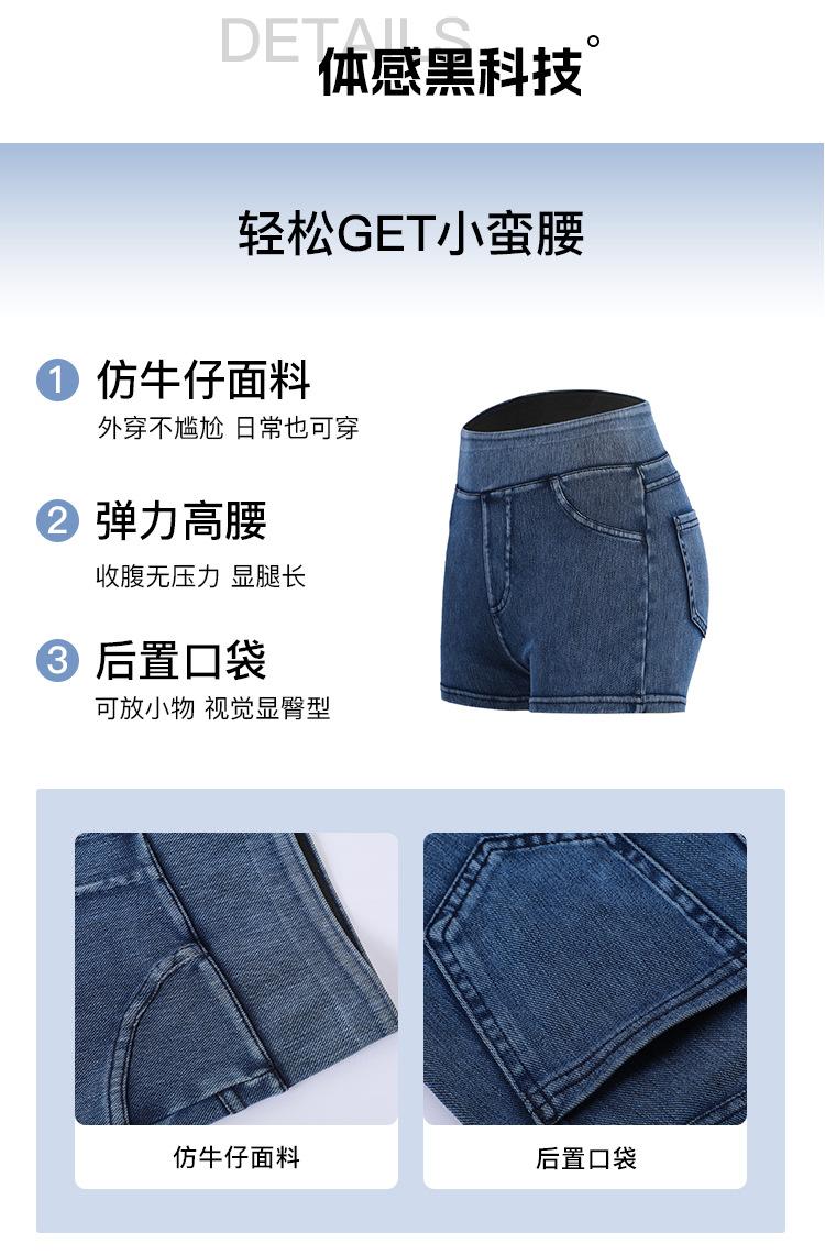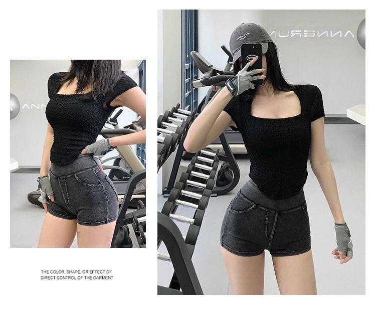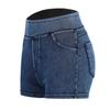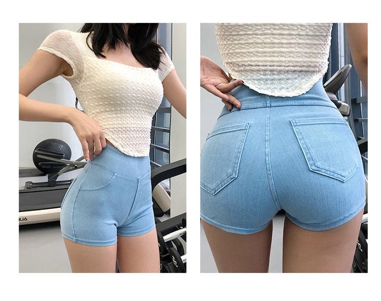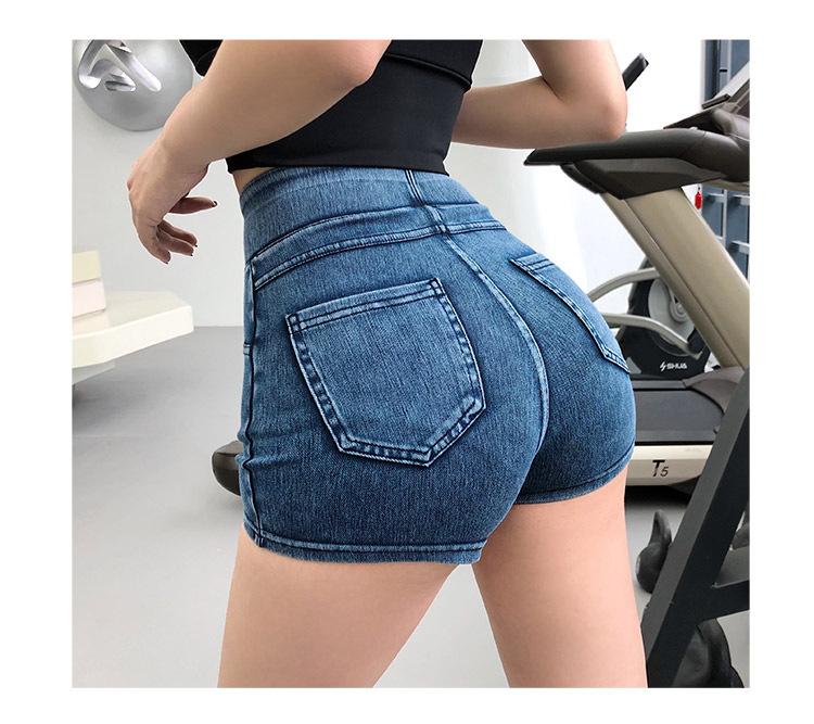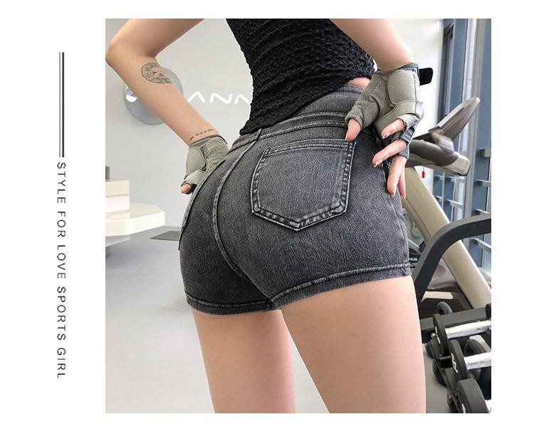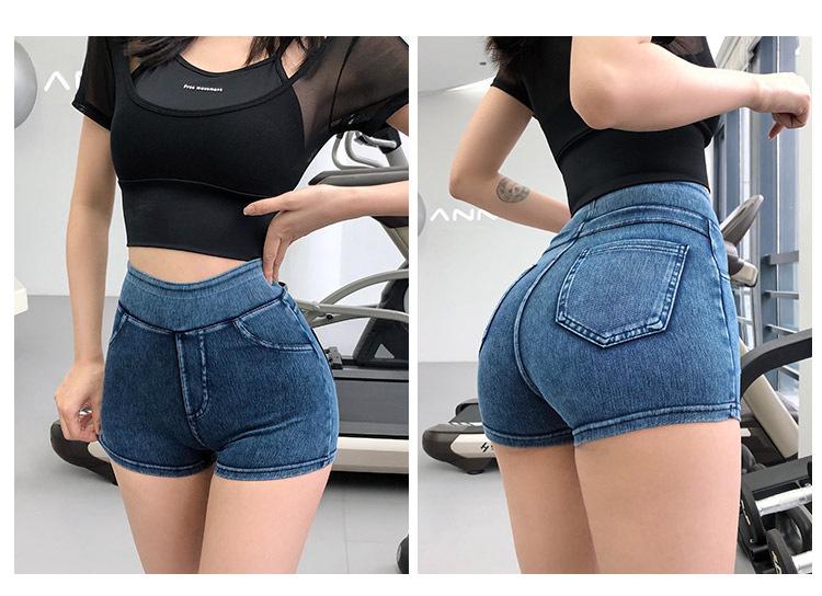Pantalones cortos deportivos de yoga de mezclilla de imitación de tres puntos para mujer, ajustados, elásticos, de cintura alta, para pilates y saltos.