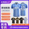 Vestido de fútbol con solapa conmemorativa clásica bordada con camiseta azul retro conmemorativa