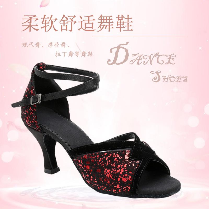 Zapatos de Baile Profesional para Mujer Satén Negro y Rojo Tacones Altos Zapatos Silenciosos para Maestra para Mujer Zapatos Latinos Suela Blanda Zapatos de Baile Moderno