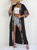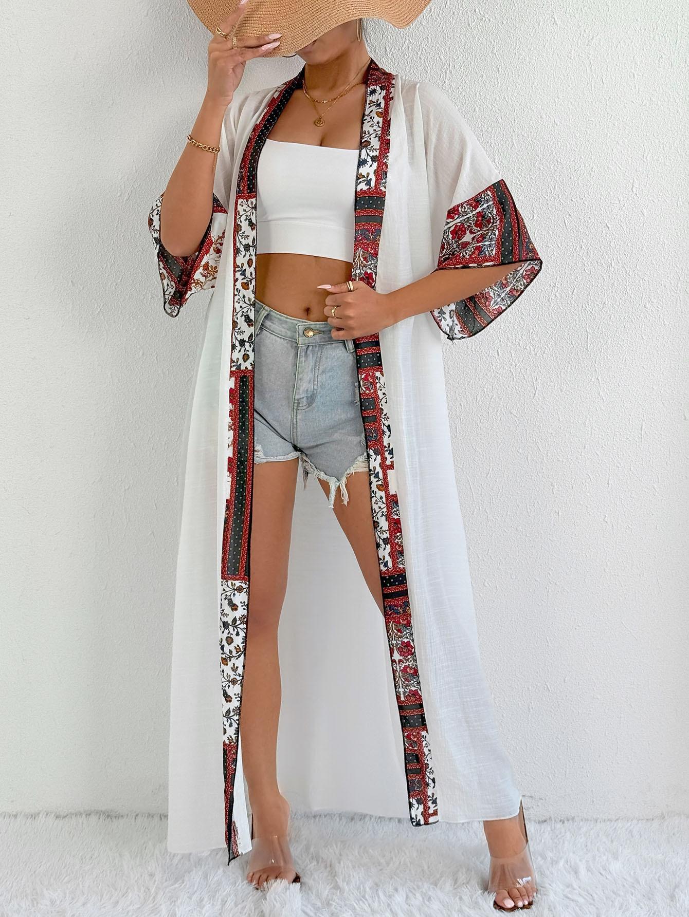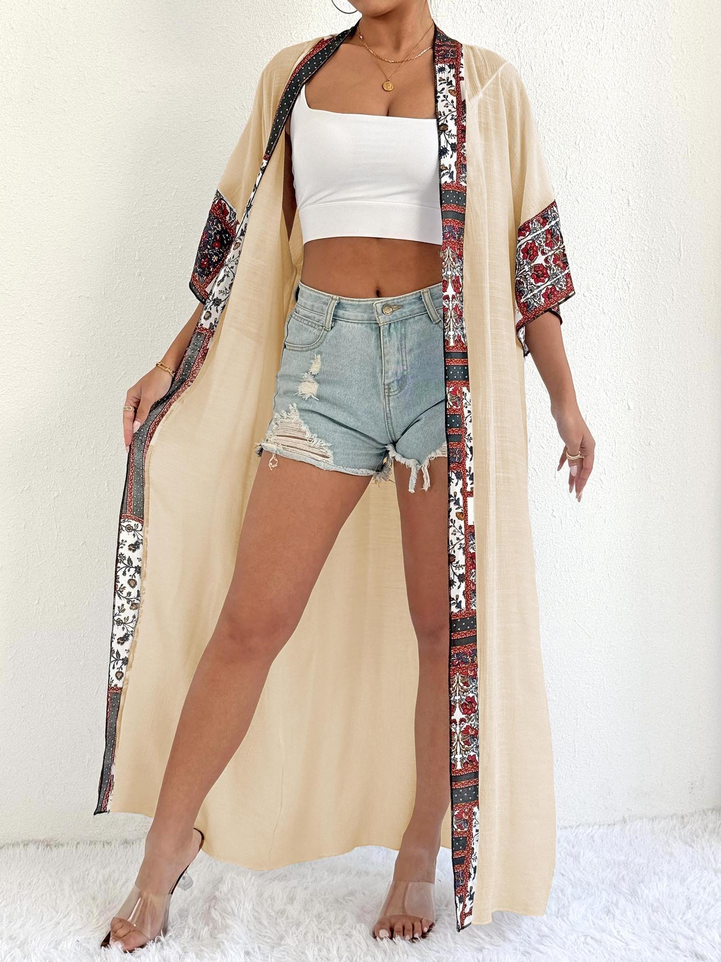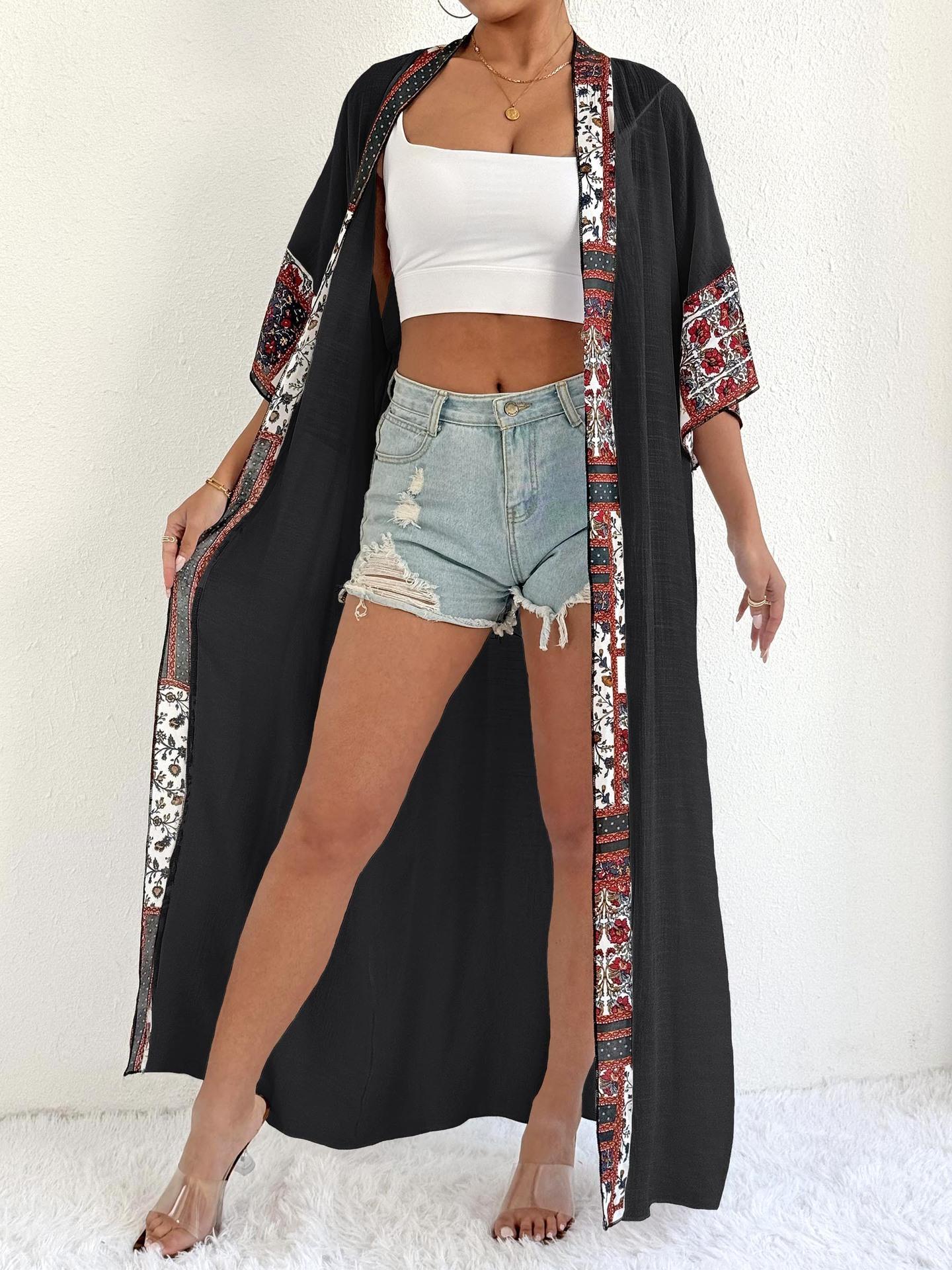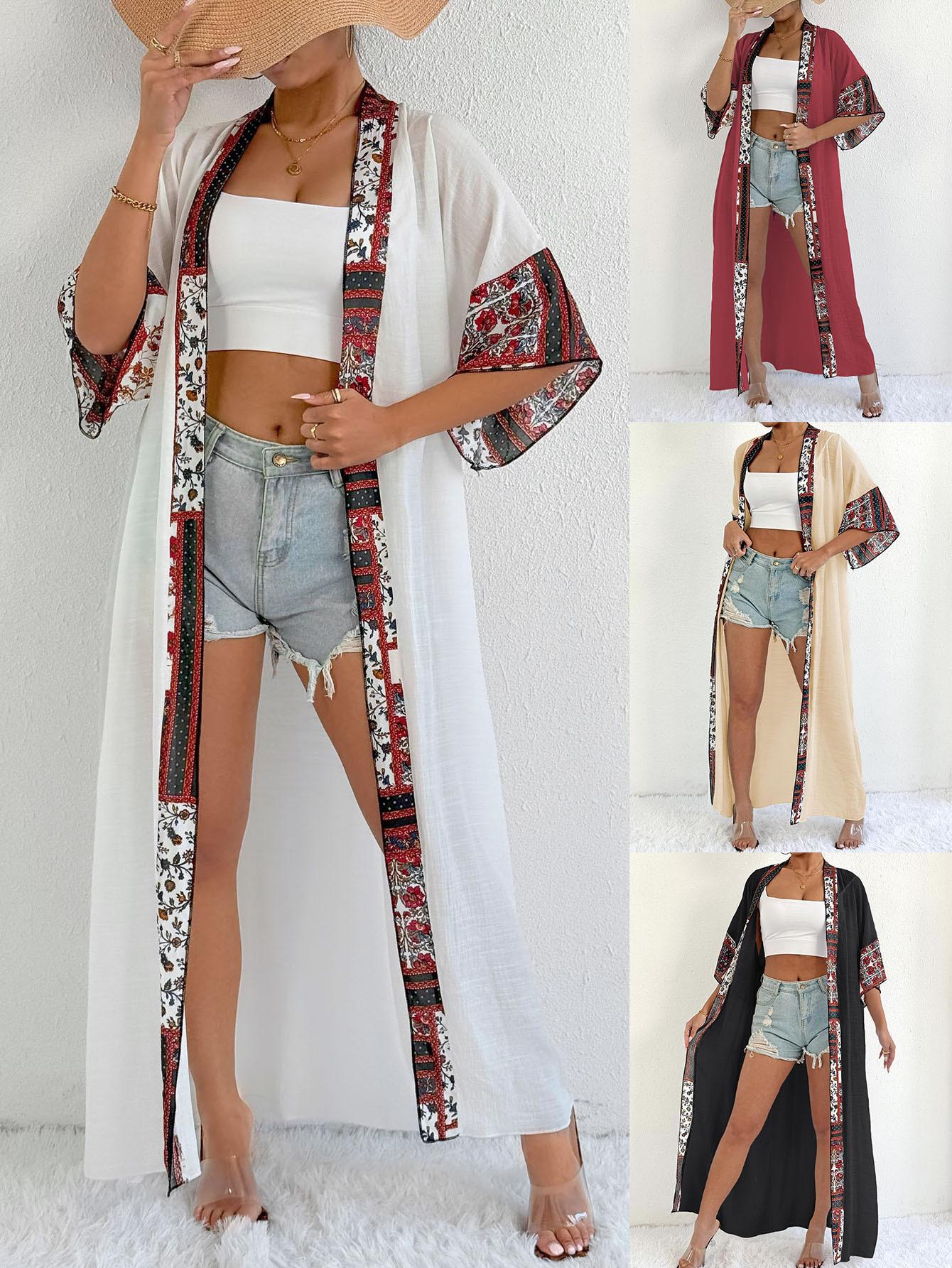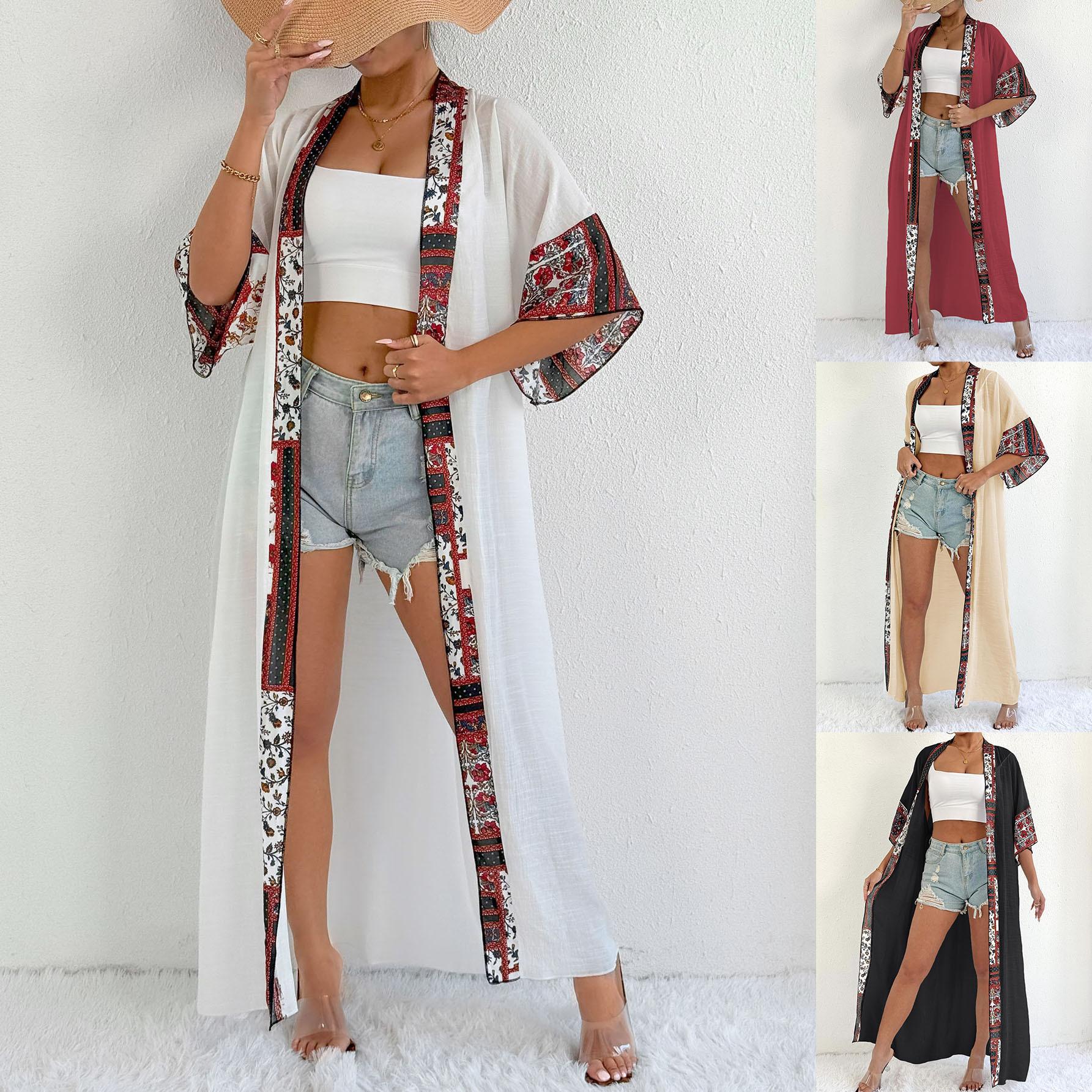 Cárdigan de Protección Solar para Mujer Ropa Europea y Americana Transfronteriza Empalme de Color en Contraste Abrigo Largo Cubre Bikini de Playa