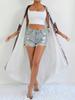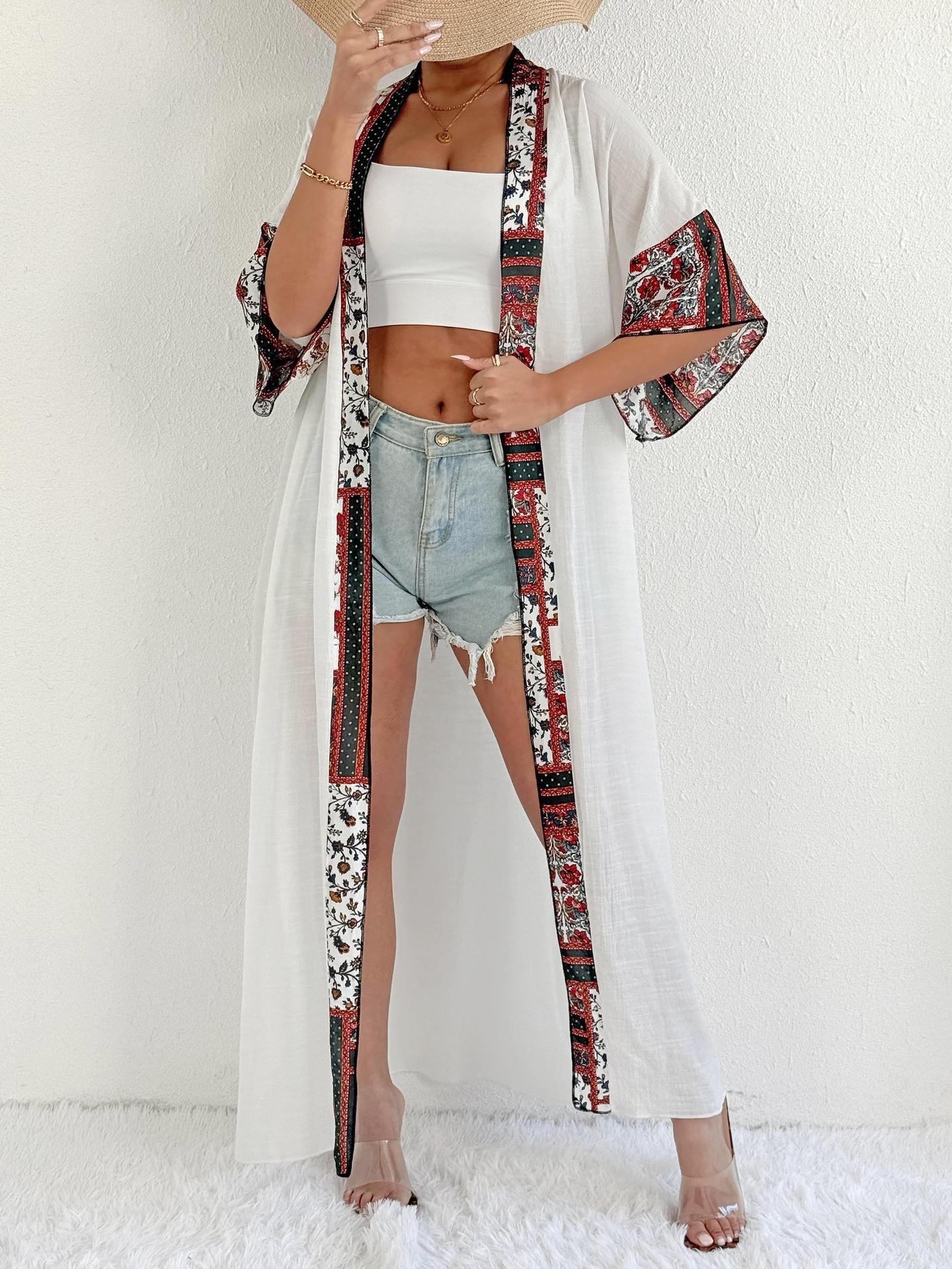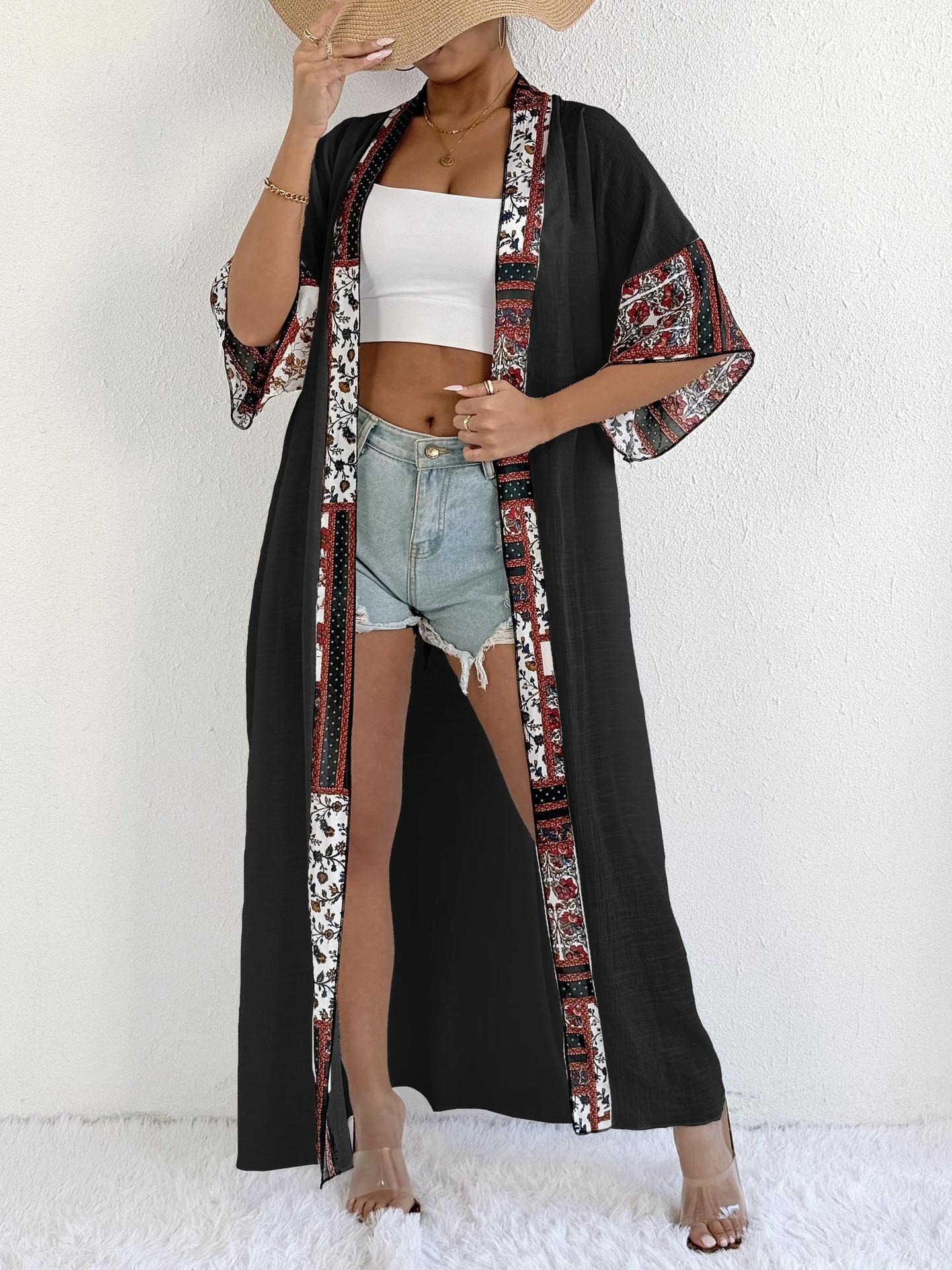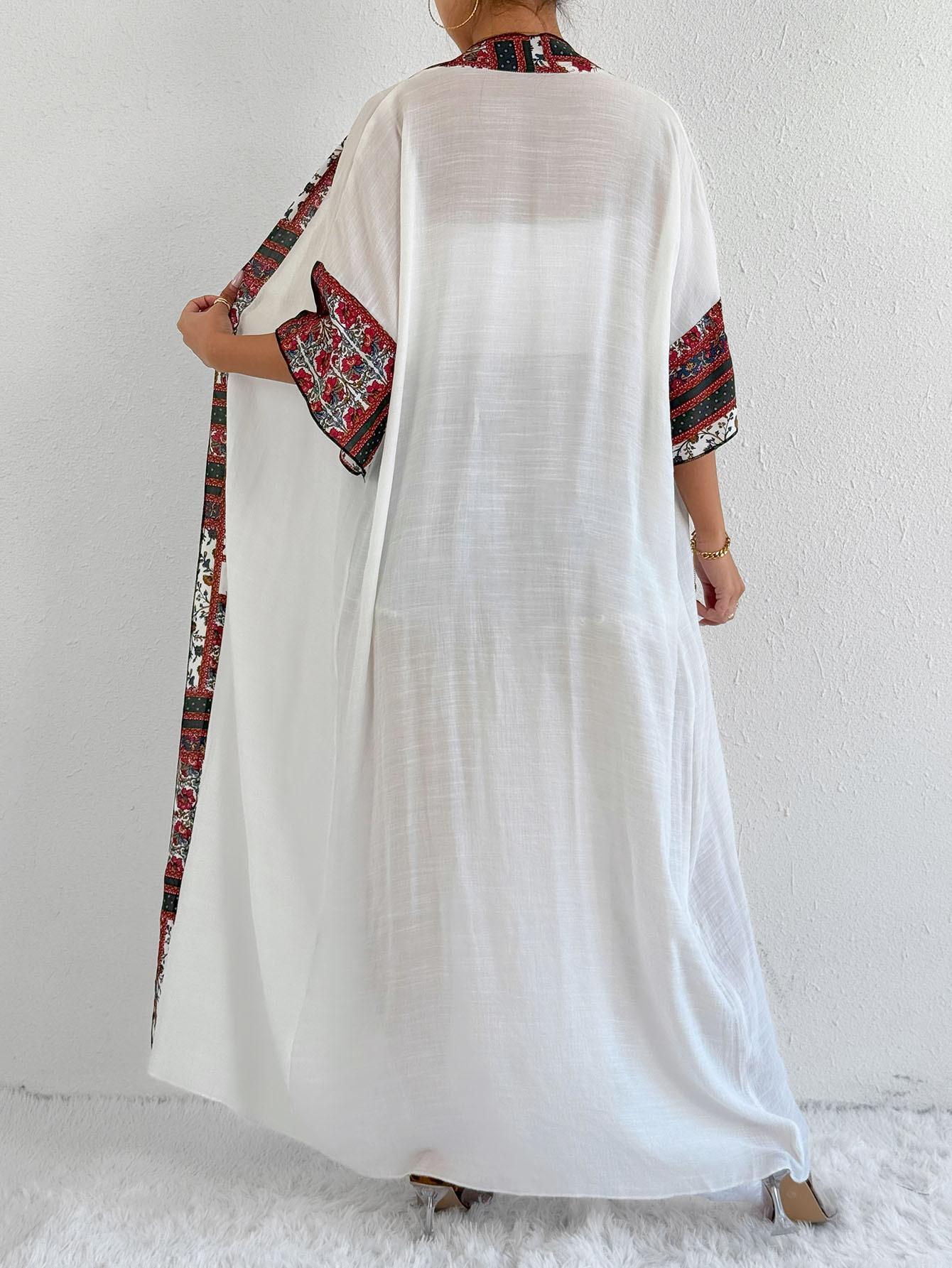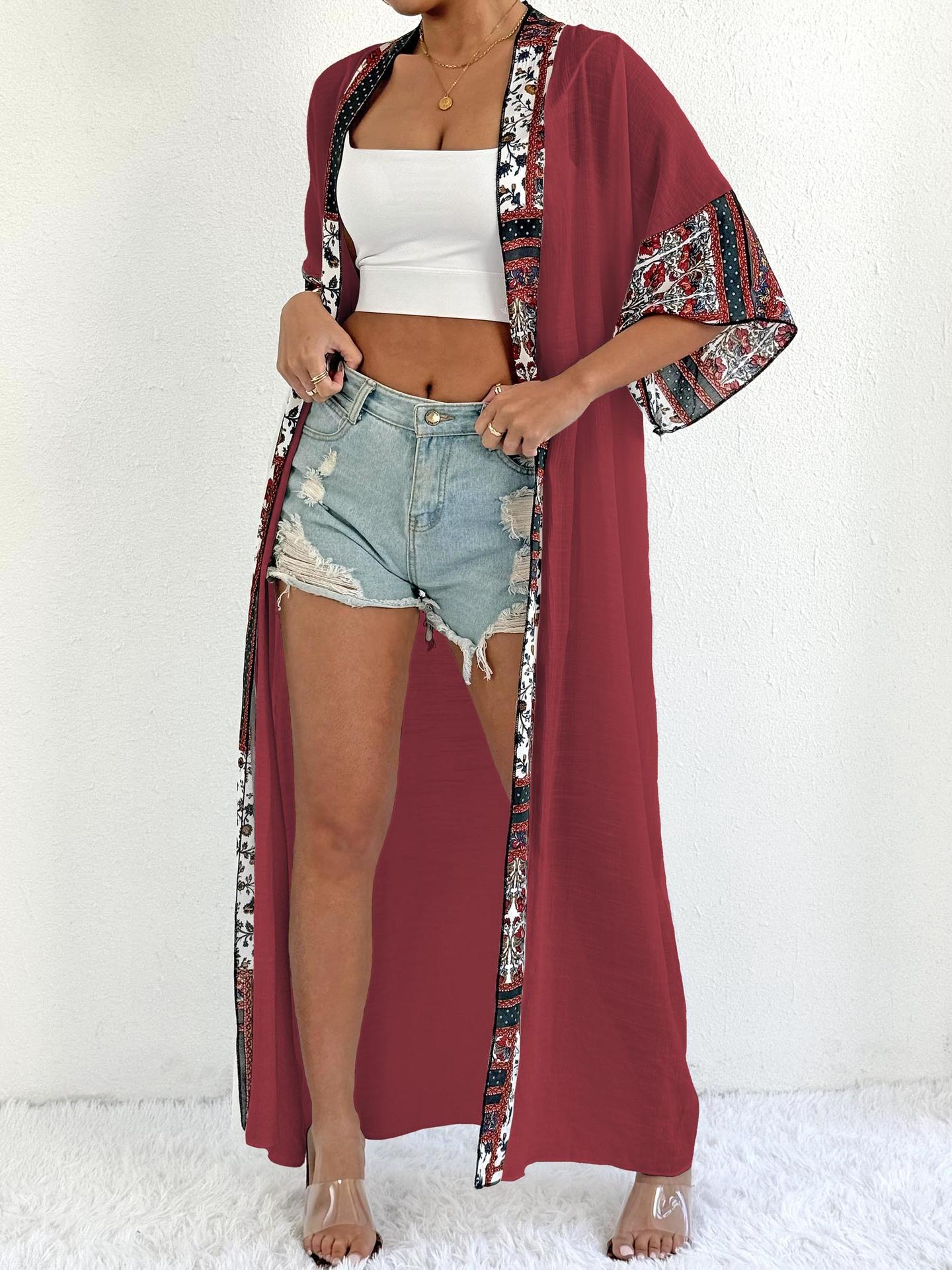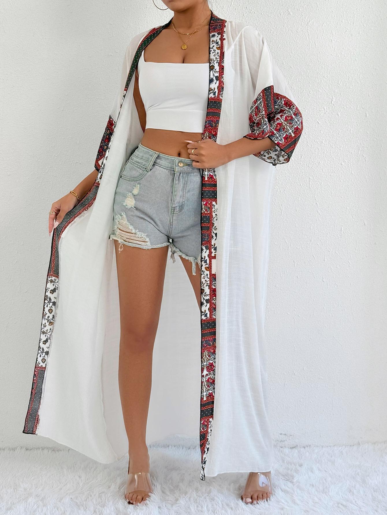 Cárdigan de Protección Solar para Mujer Ropa Europea y Americana Transfronteriza Empalme de Color en Contraste Abrigo Largo Cubre Bikini de Playa
