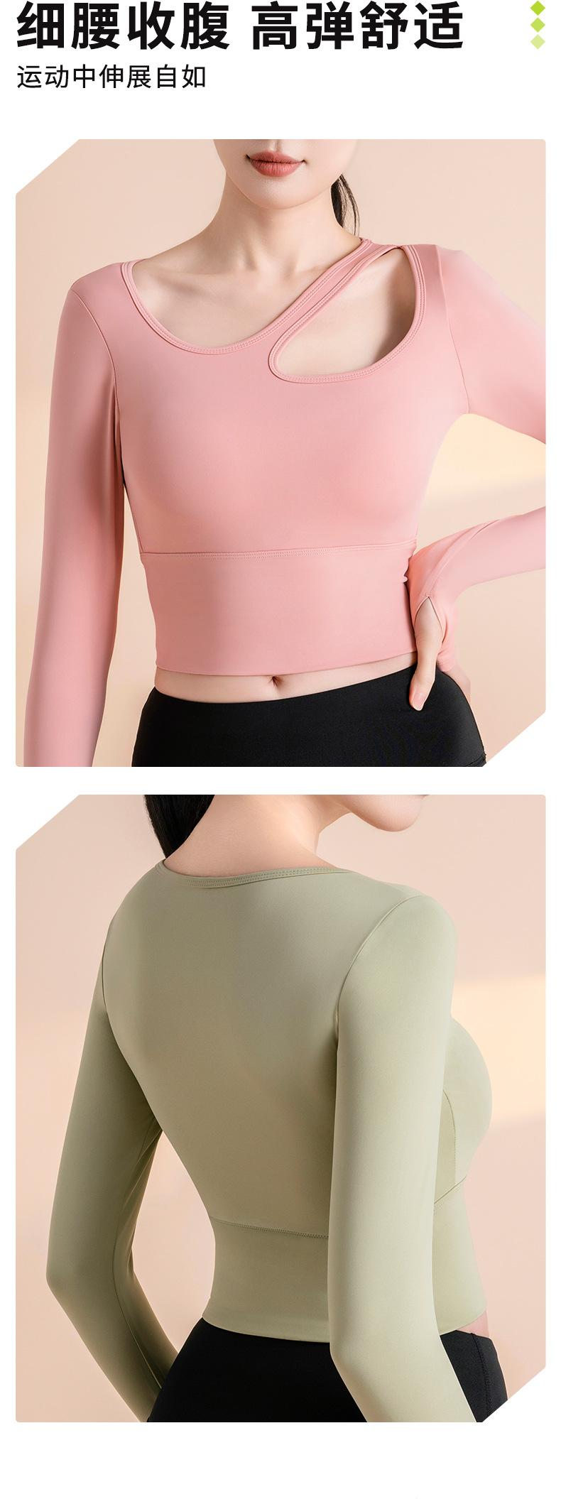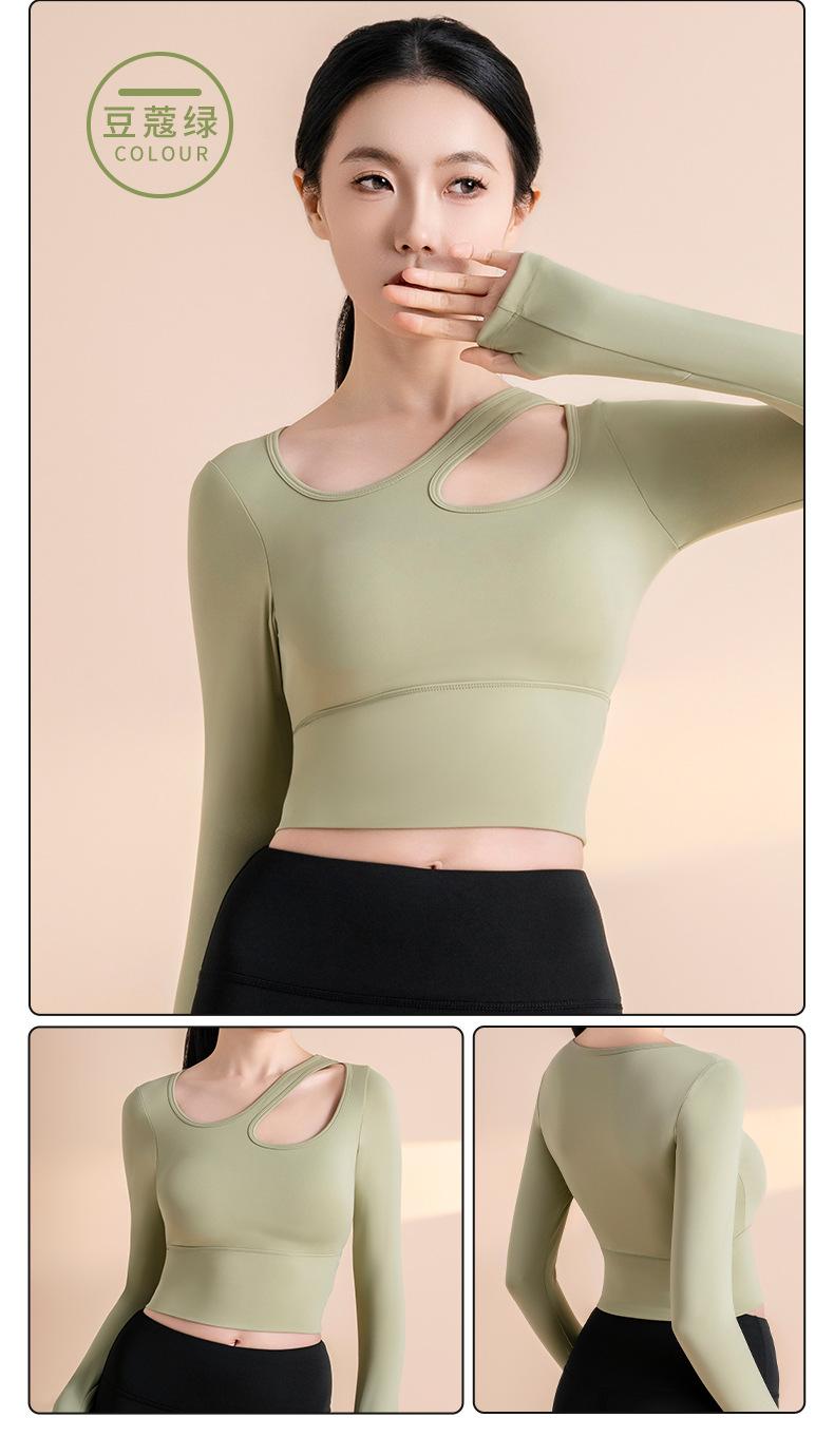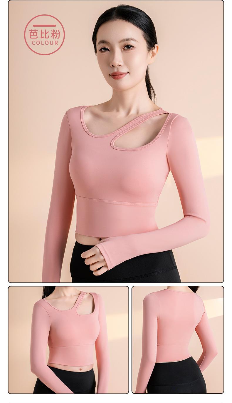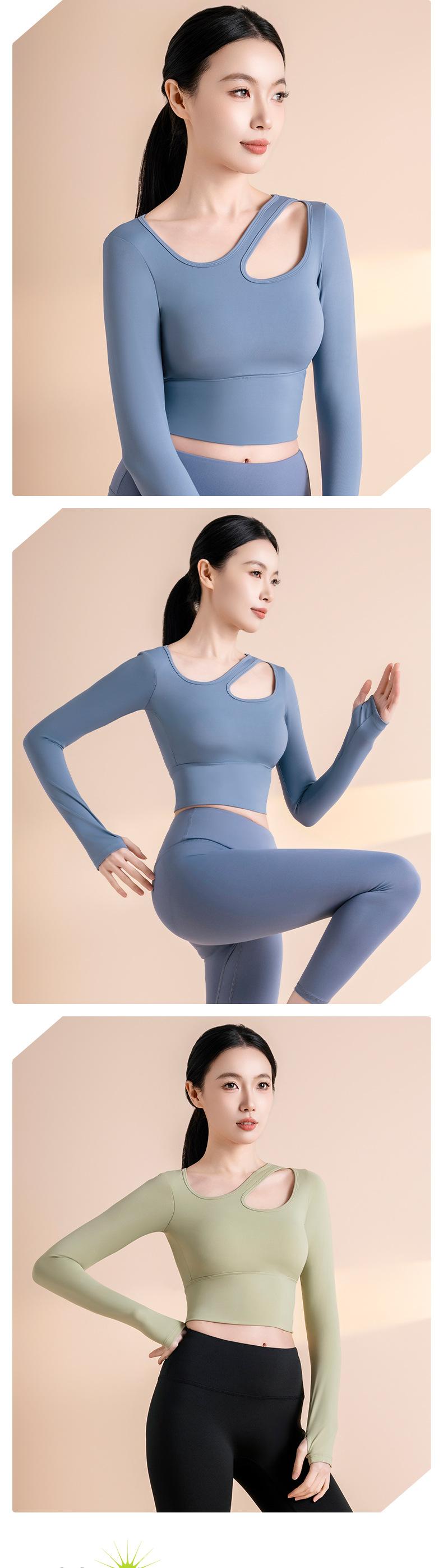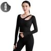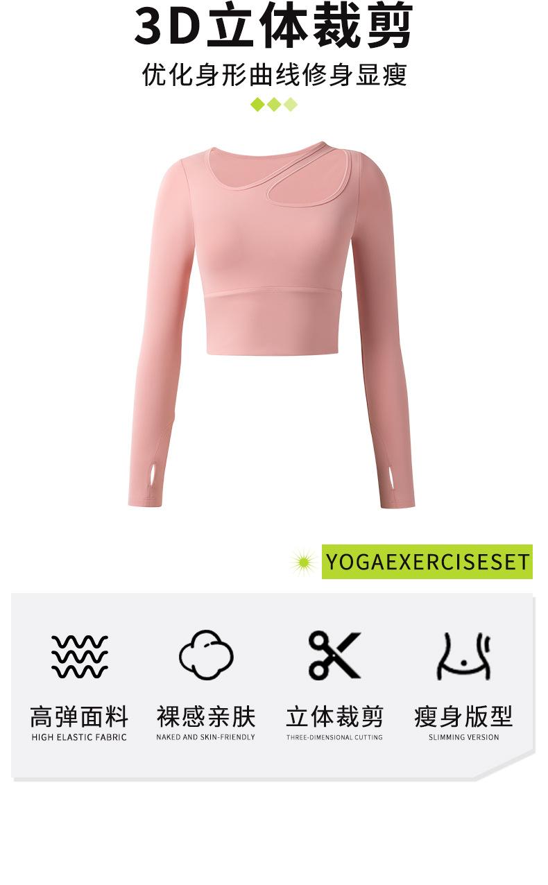 Traje de yoga de manga larga, sin costuras, con hombros al descubierto, transpirable, ajustado, de secado rápido, deportivo y con almohadilla para el pecho.