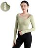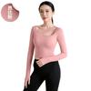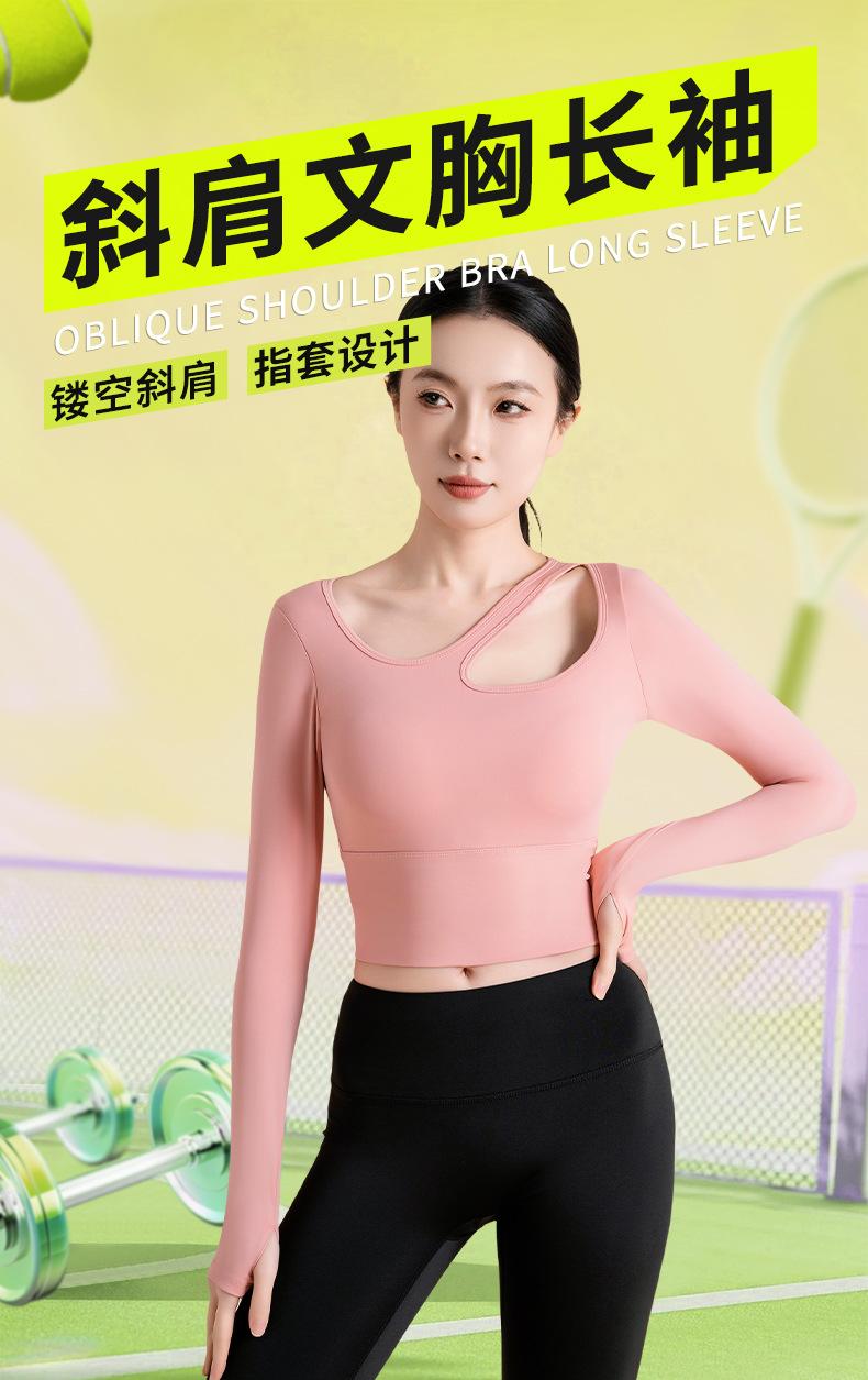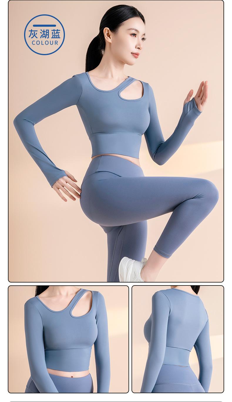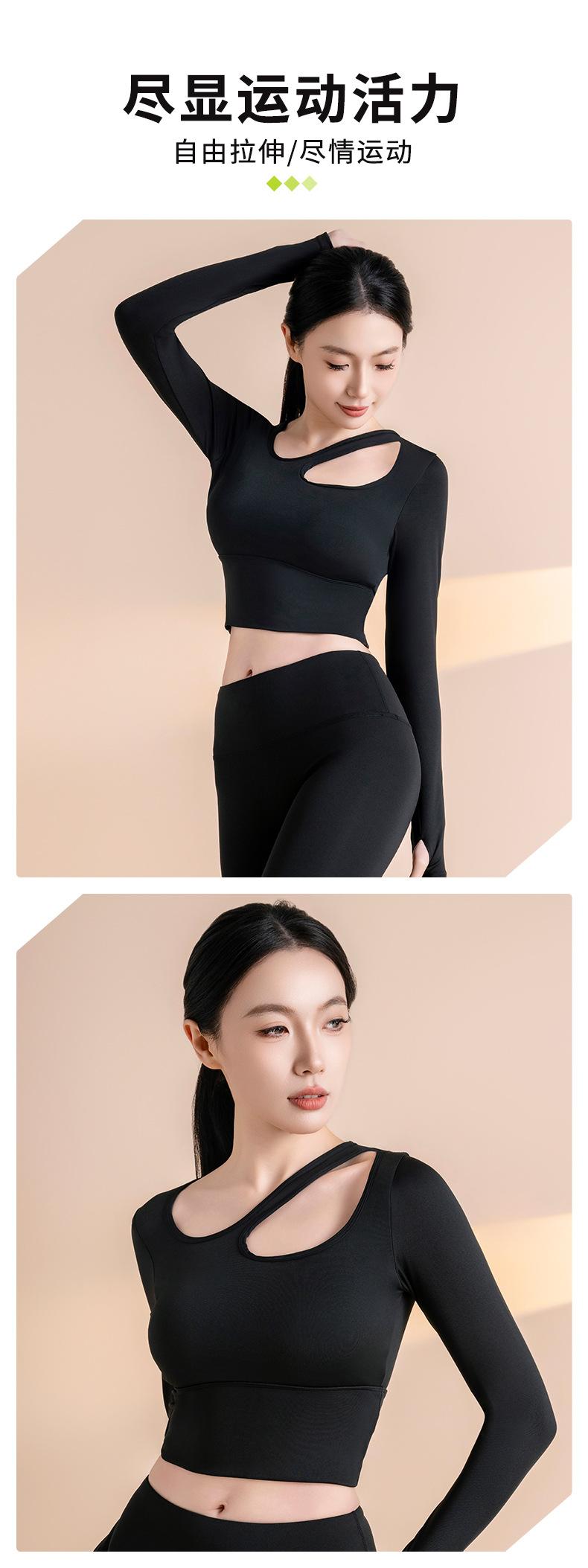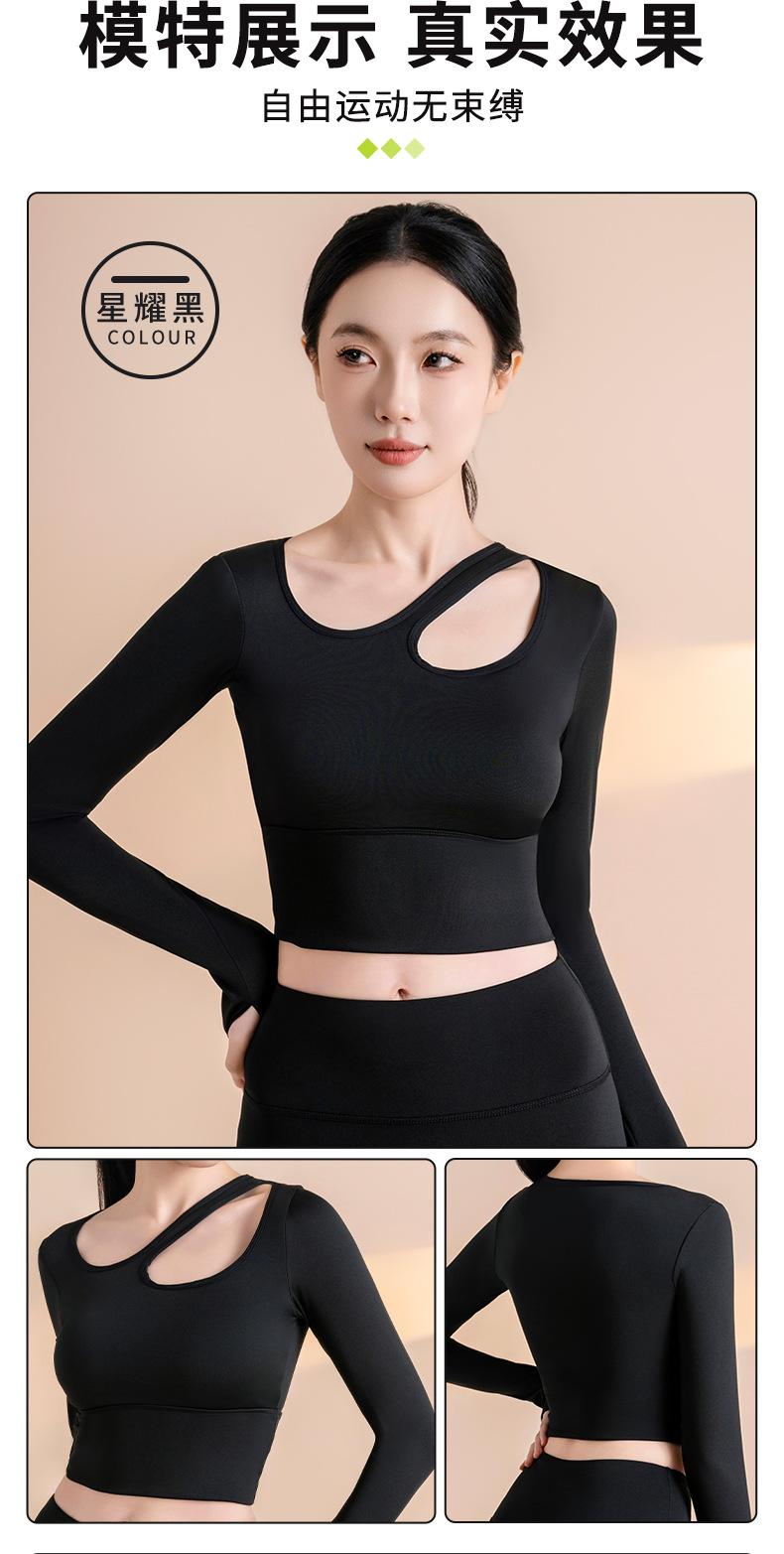 Traje de yoga de manga larga, sin costuras, con hombros al descubierto, transpirable, ajustado, de secado rápido, deportivo y con almohadilla para el pecho.