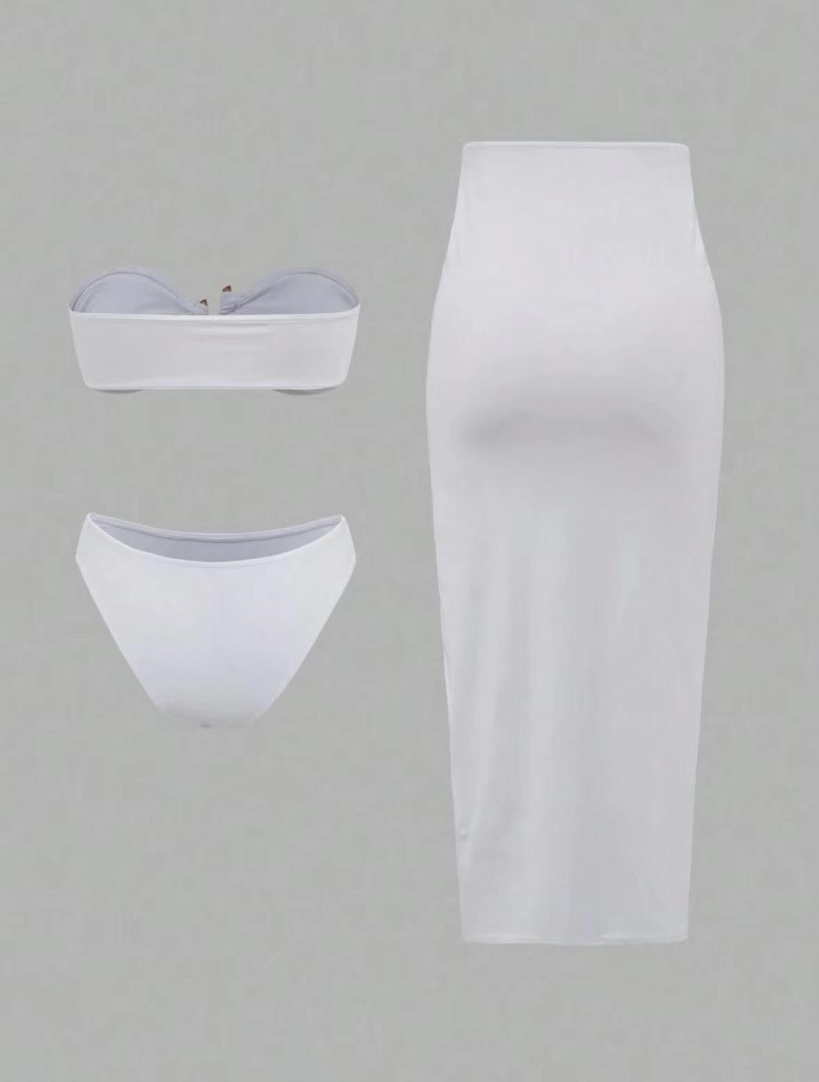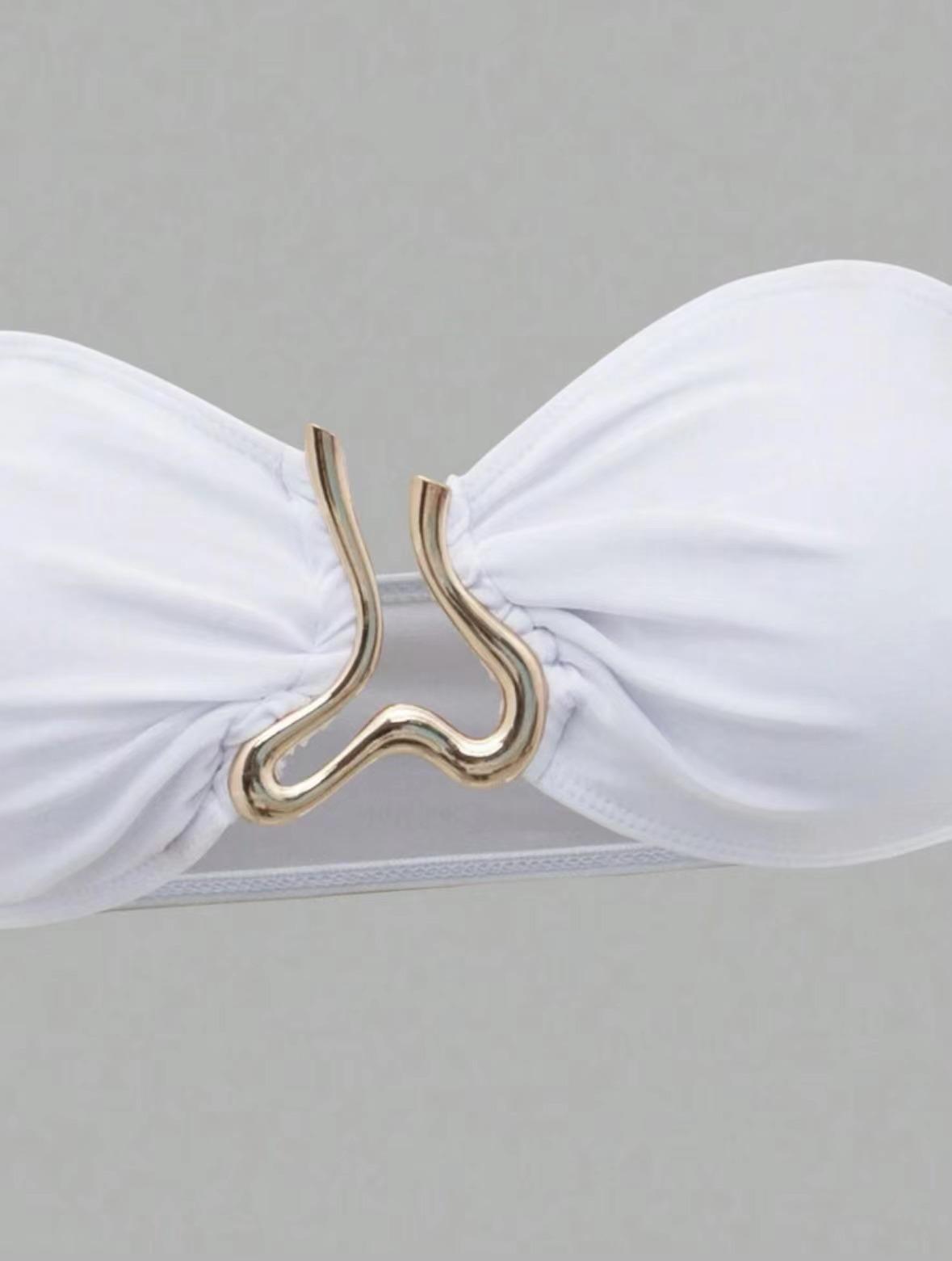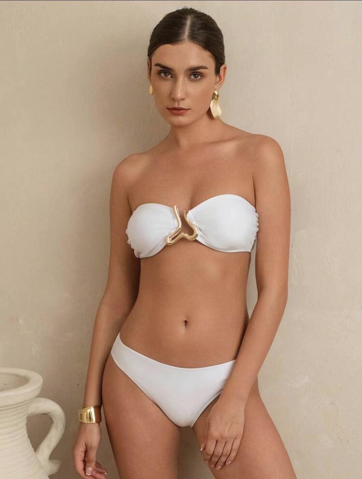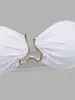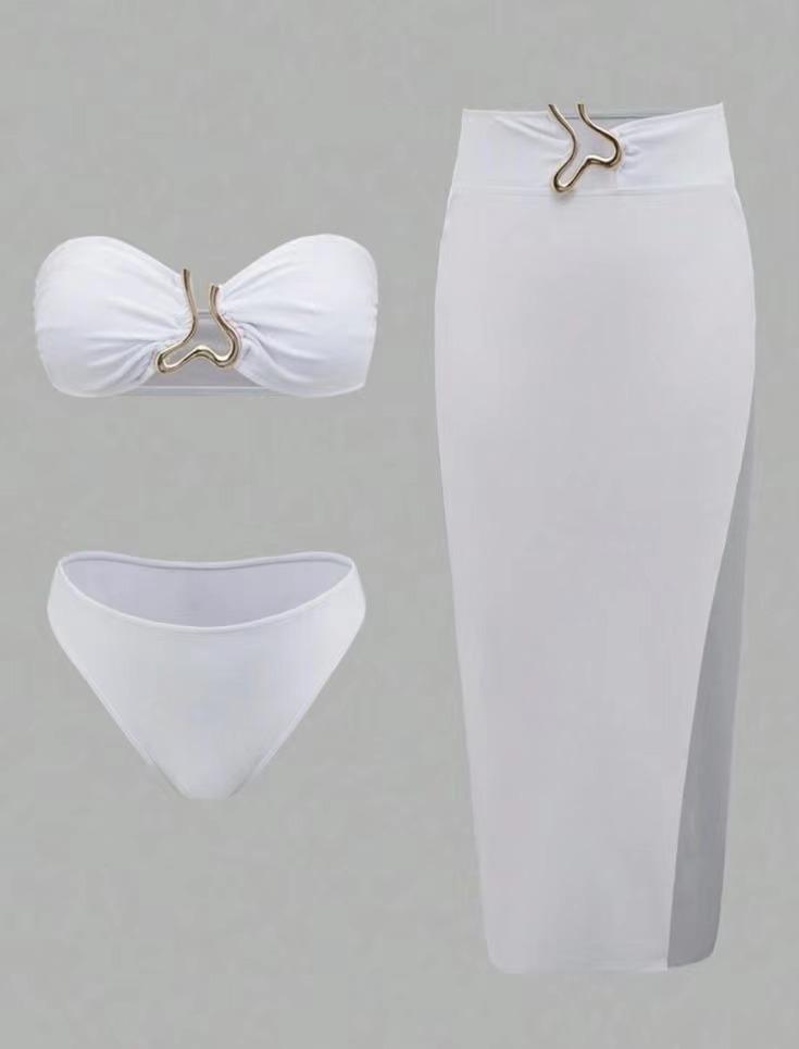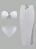 Bikini sexy de color sólido, estilo europeo y americano, 2025, traje de baño dividido de tres piezas, sin espalda, ajustado, con borde cruzado