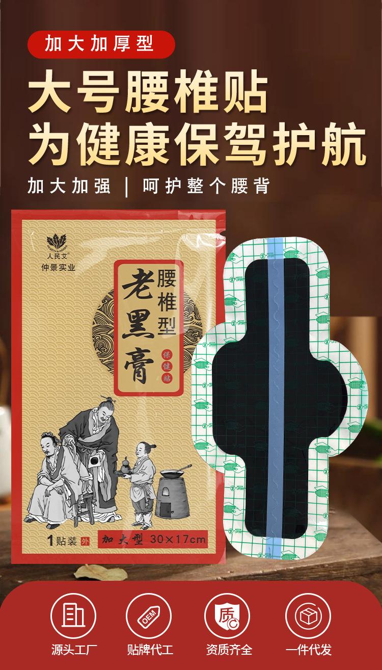 Nueva pasta negra antigua de gran tamaño para la zona lumbar, para el cuello, hombros, cintura, rodilla, pierna, dolor en las articulaciones, fiebre, salud, película de PU, yeso impermeable