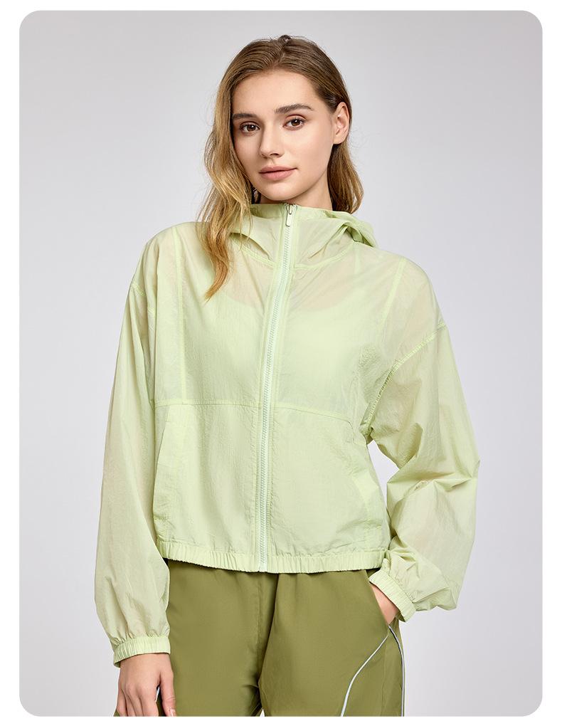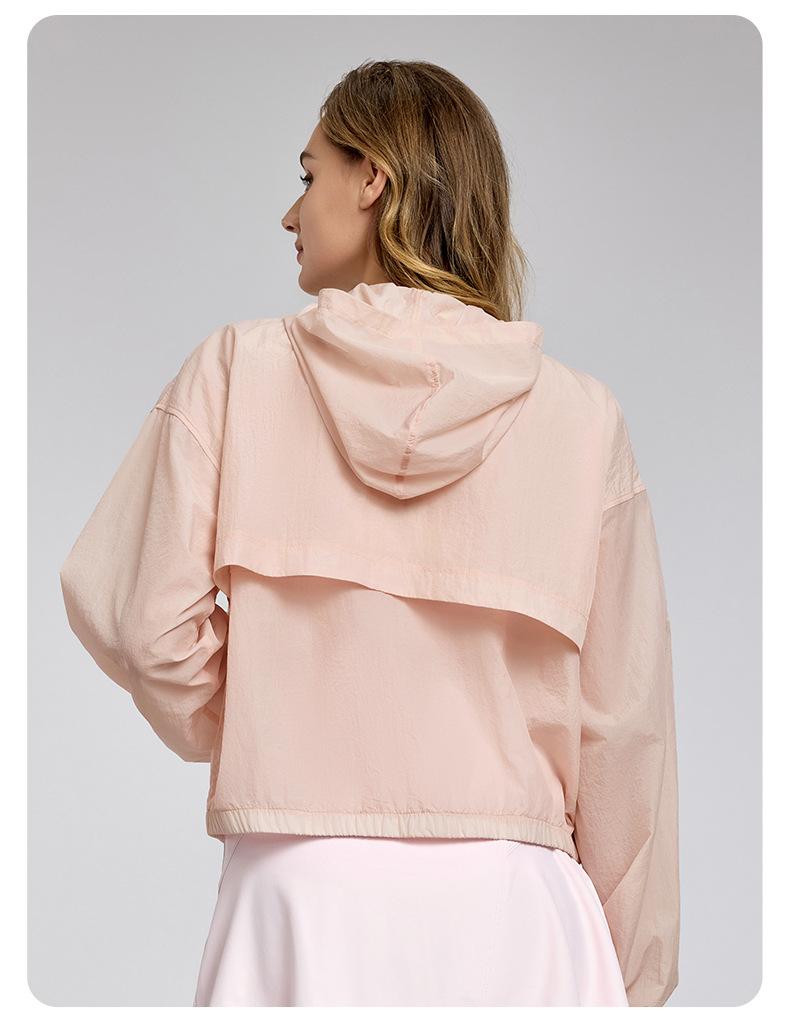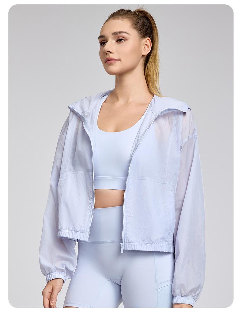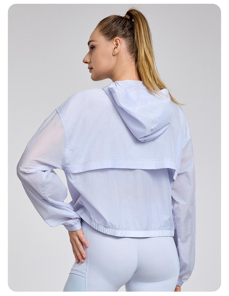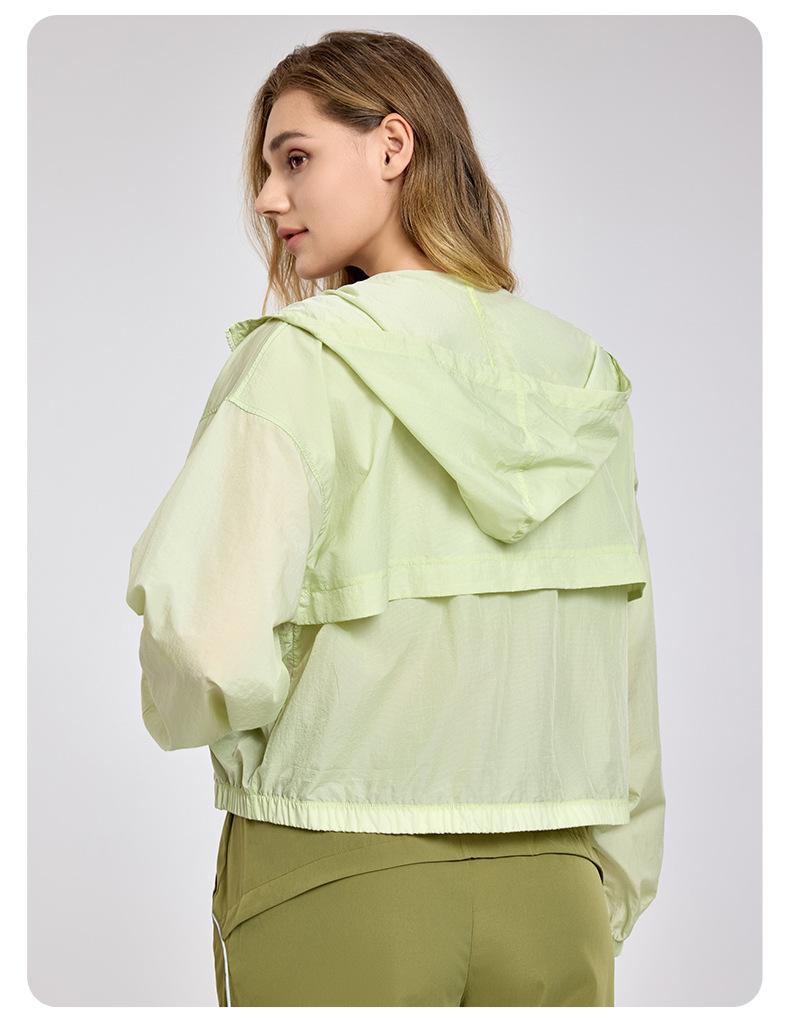 Chaqueta ligera y transpirable de manga larga para mujer, holgada, informal, con capucha, cortavientos, para deportes de verano, correr, yoga