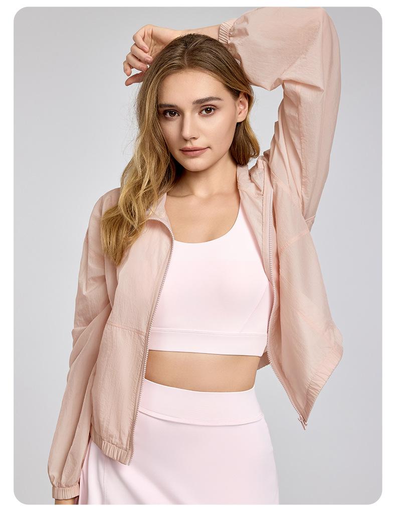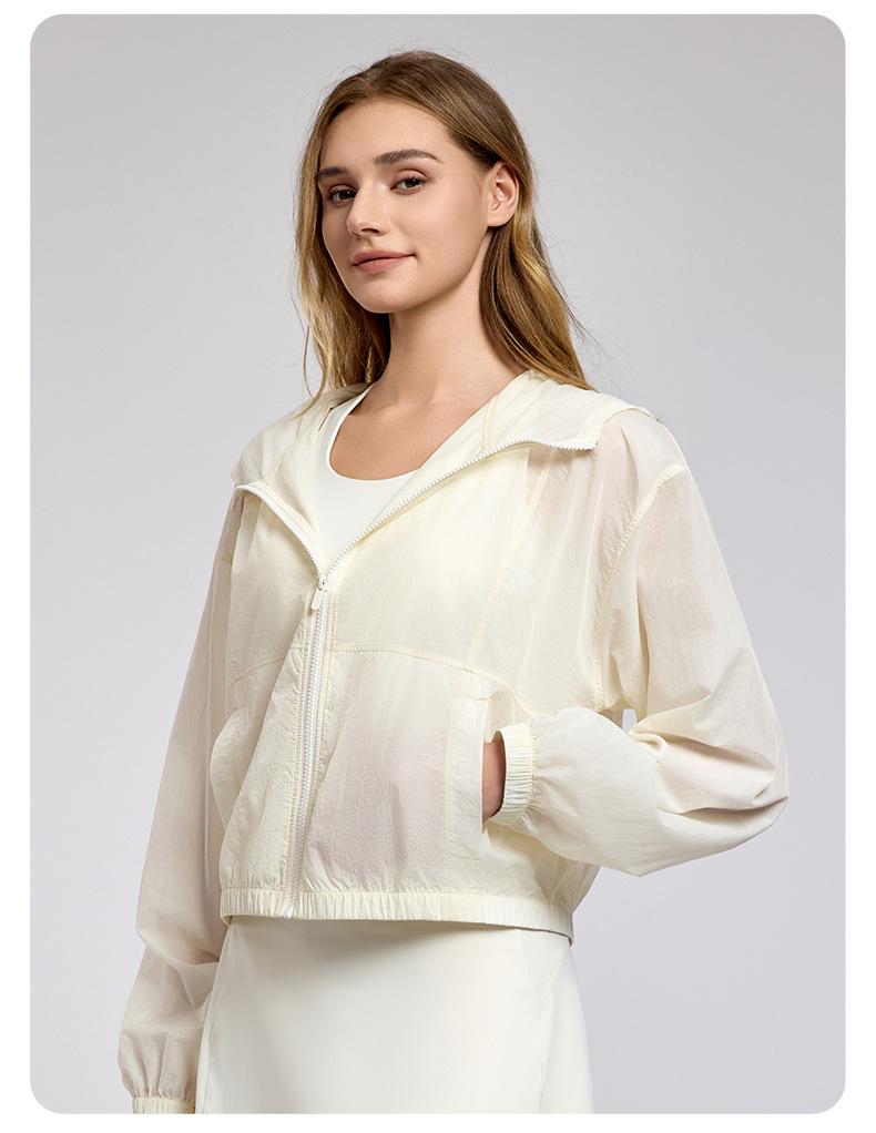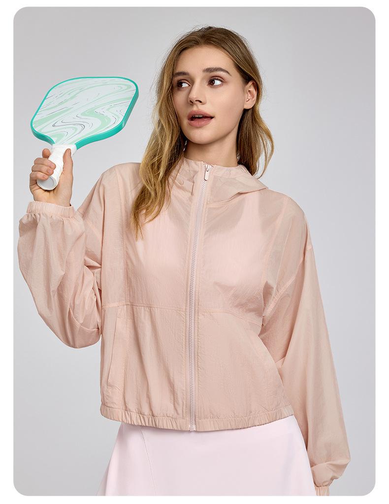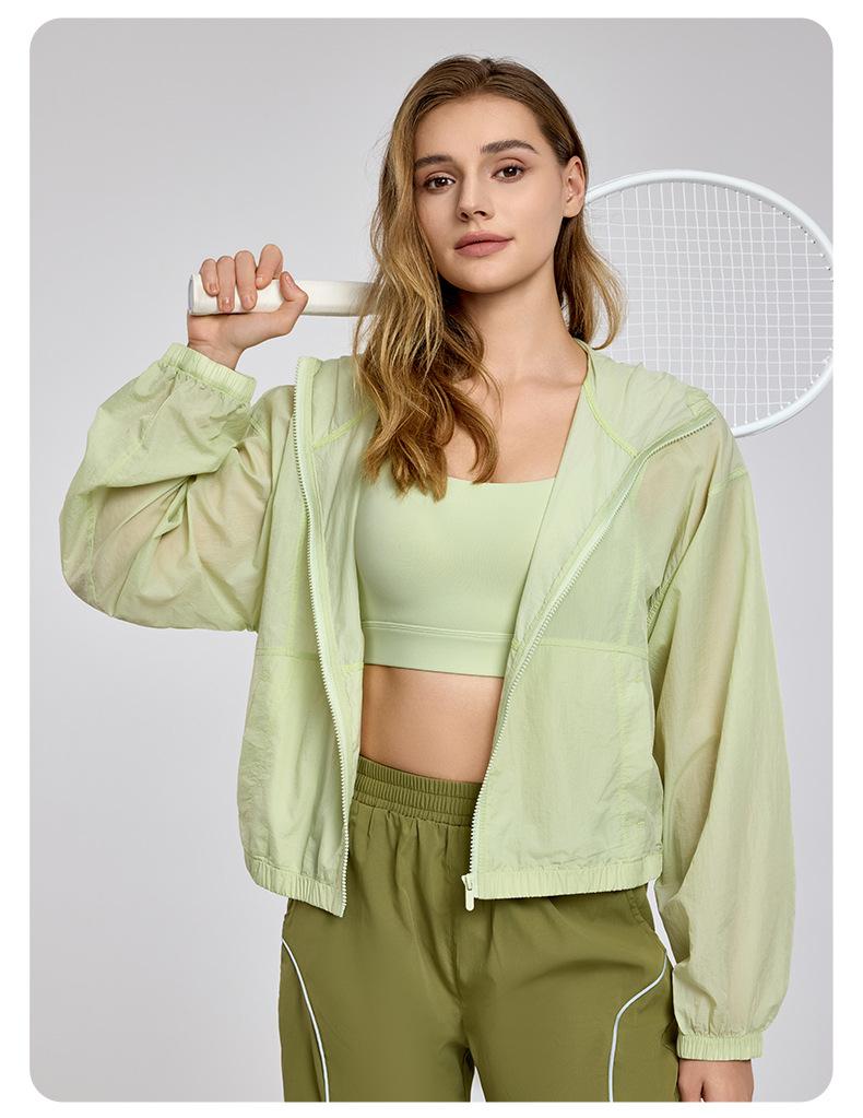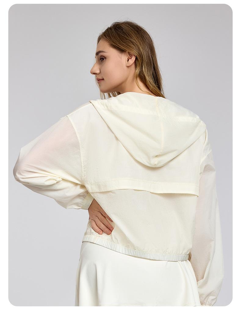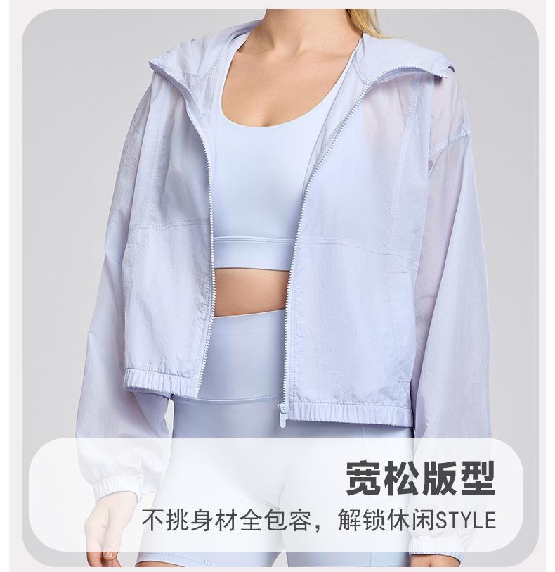 Chaqueta ligera y transpirable de manga larga para mujer, holgada, informal, con capucha, cortavientos, para deportes de verano, correr, yoga