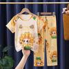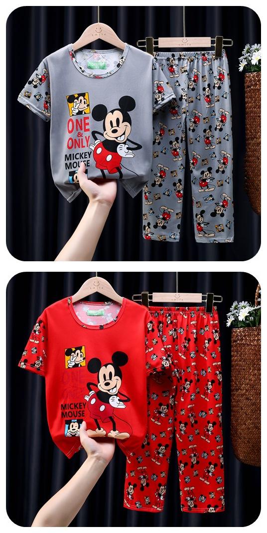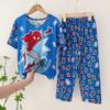 Pijamas para Niñas Ropa de Casa de Dibujos Animados para Niños Pantalones de Manga Corta Primavera y Verano para Niños Medianos y Grandes Conjunto Delgado