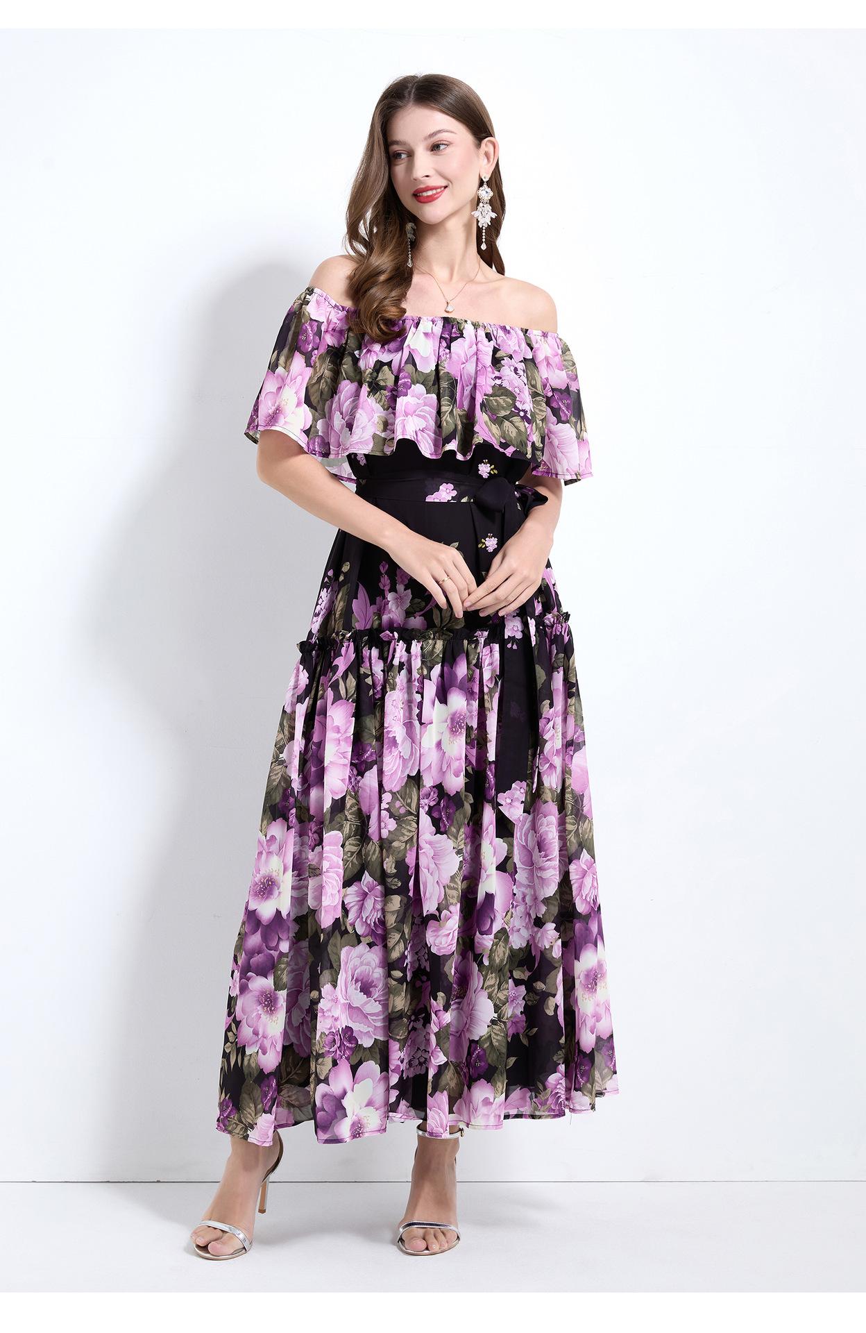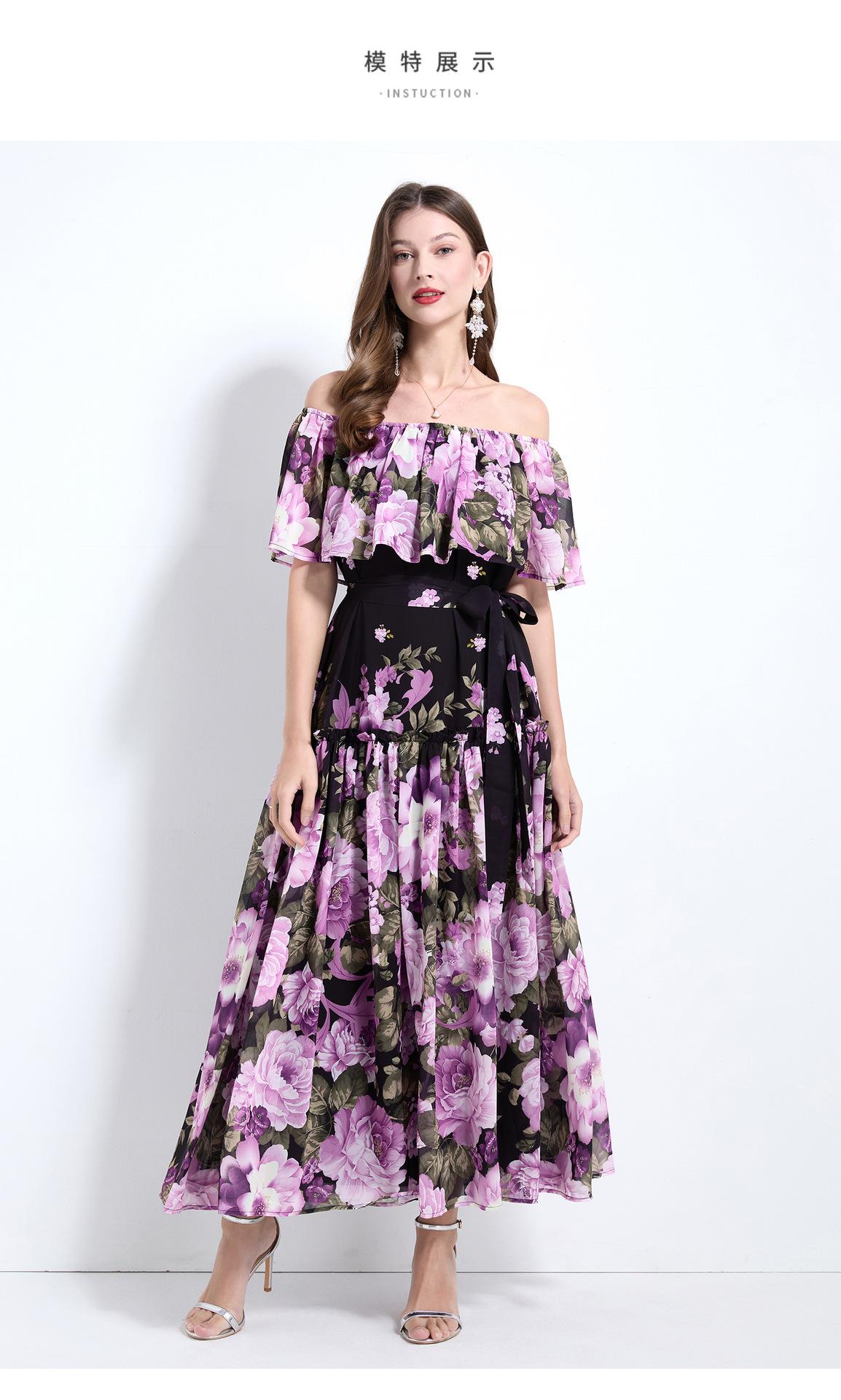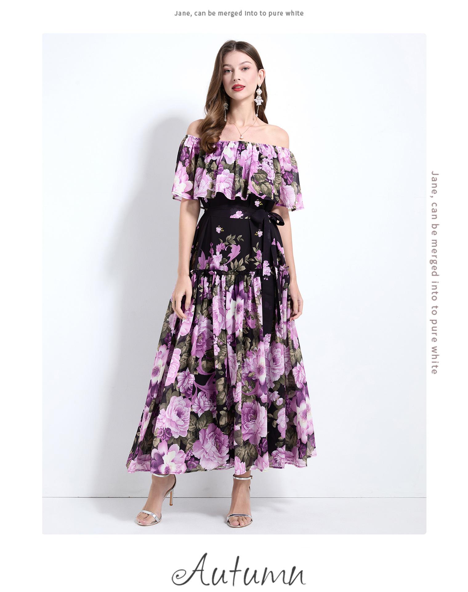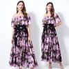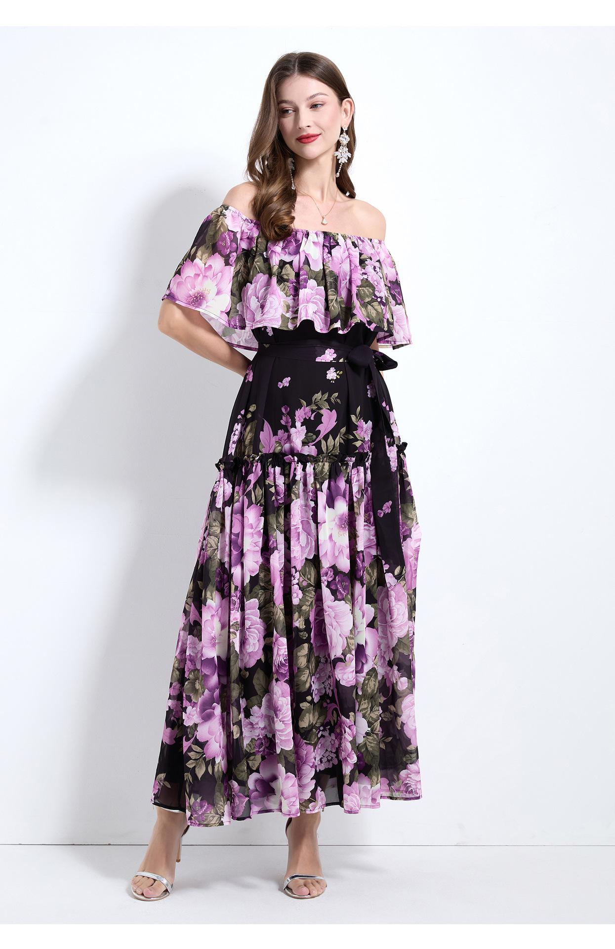 Falda larga con volantes, cintura alta, estampado de hada de las flores, estilo playero, de un solo hombro y dos piezas, primavera y verano 2025