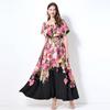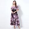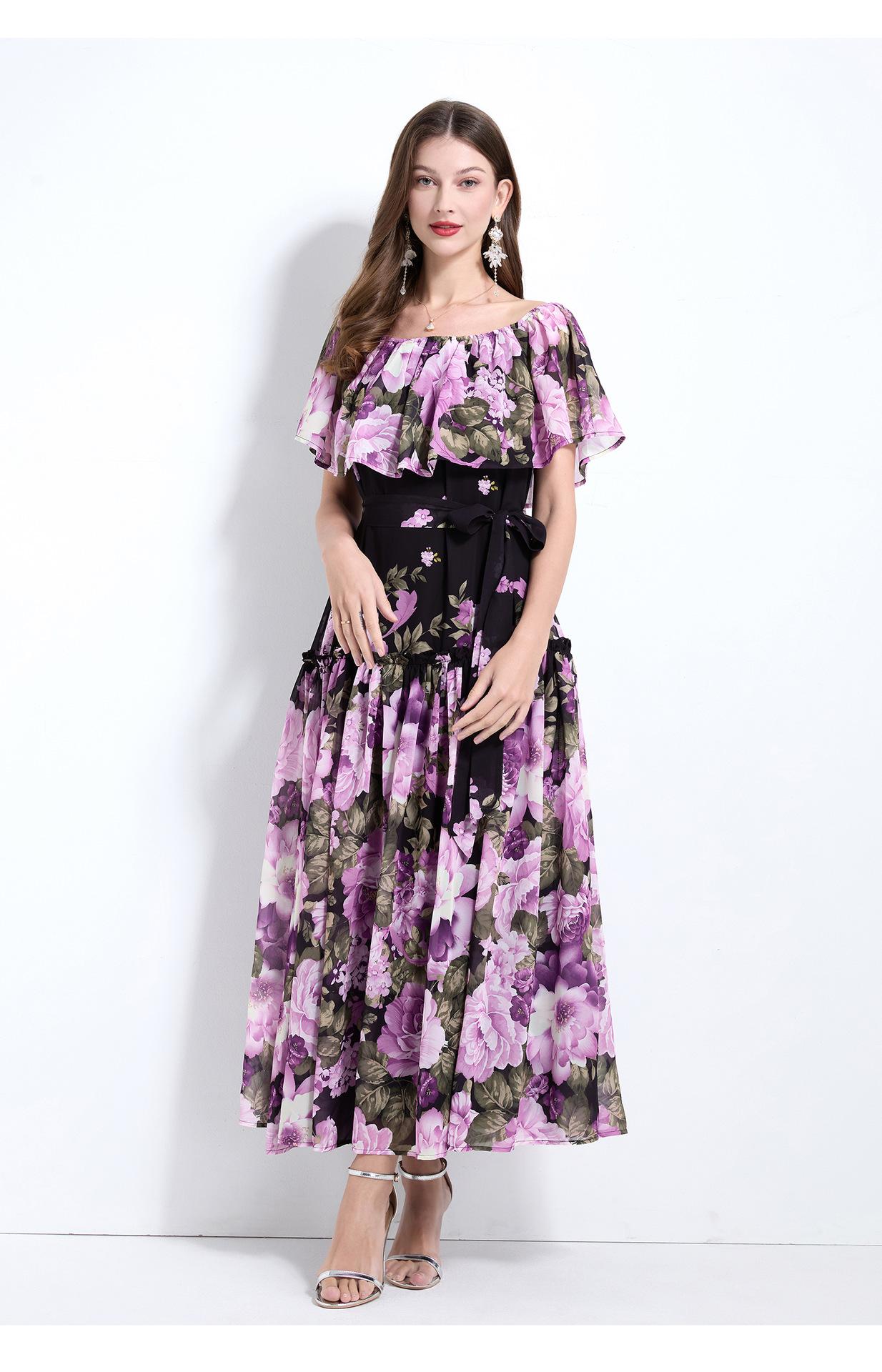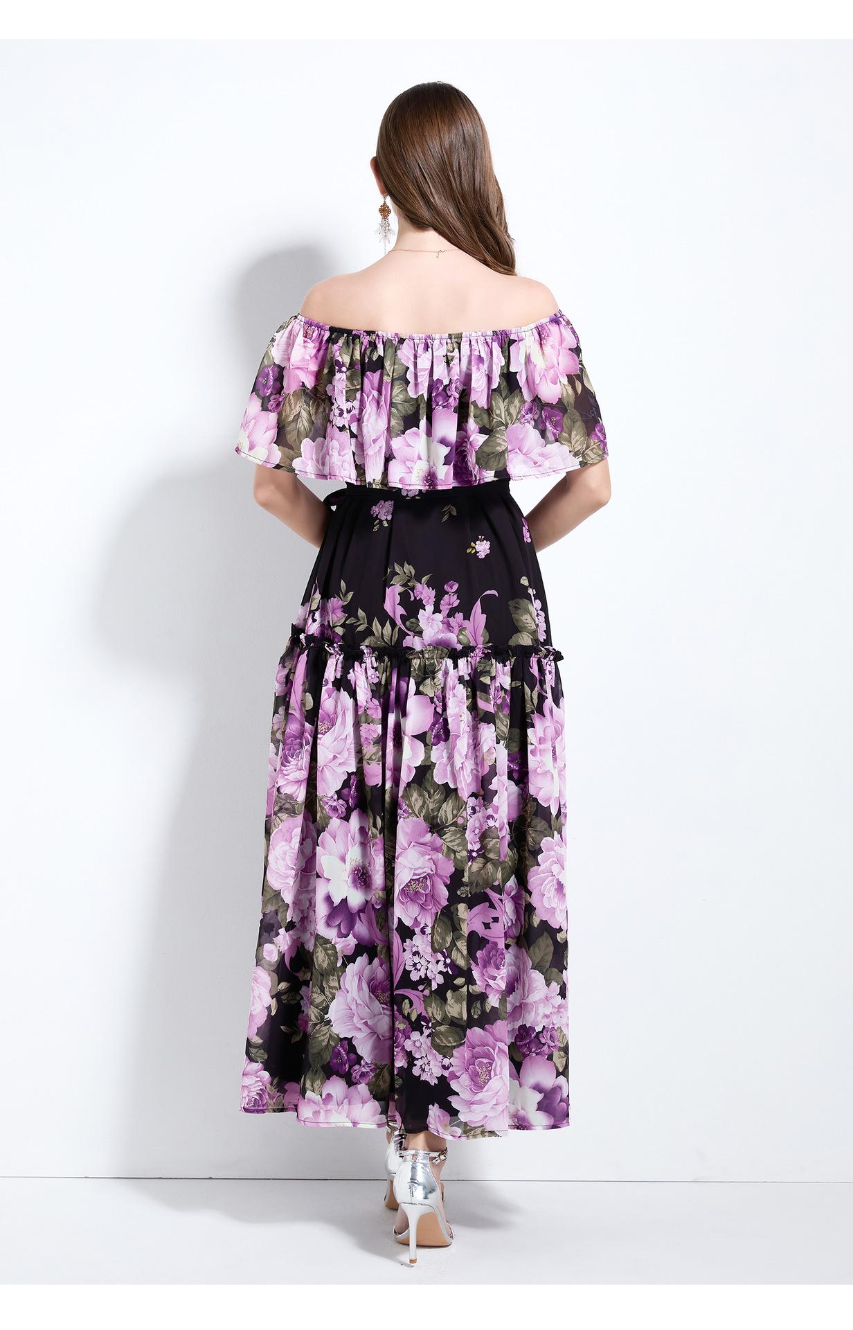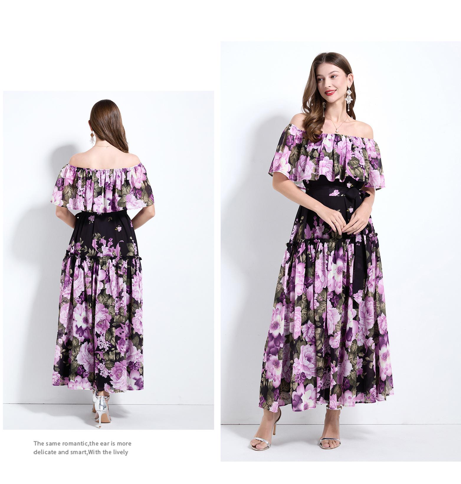 Falda larga con volantes, cintura alta, estampado de hada de las flores, estilo playero, de un solo hombro y dos piezas, primavera y verano 2025