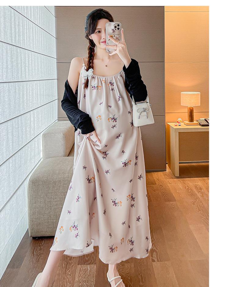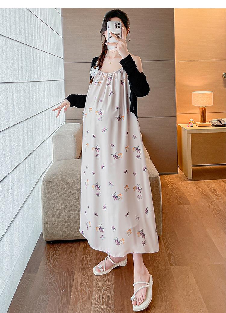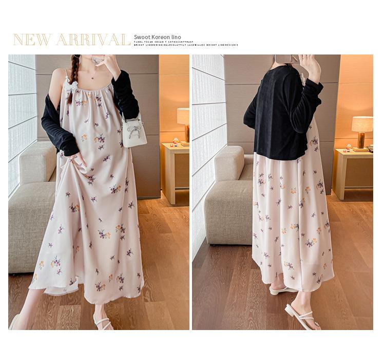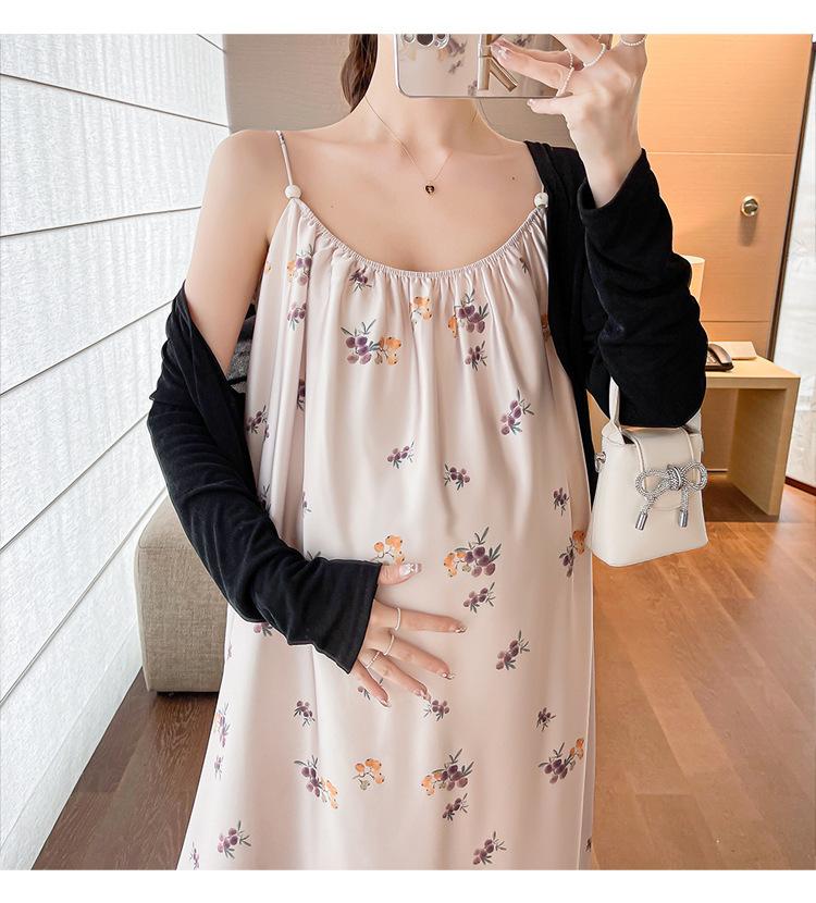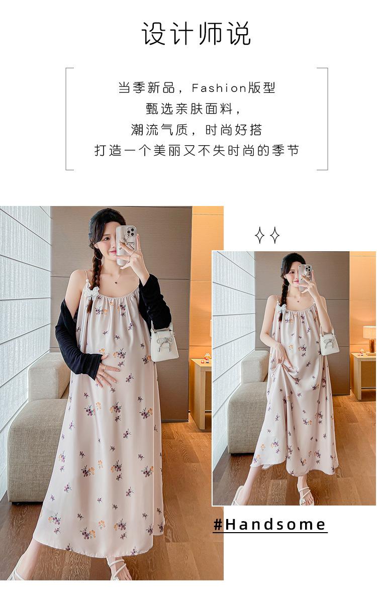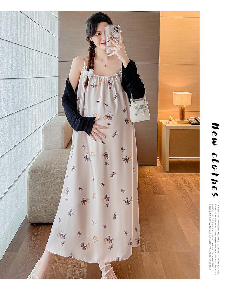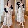Ropa de Maternidad 2024 Primavera y Verano Nuevo Dulce Floral Falda de Tirantes Cárdigan Vestido de Maternidad de Dos Piezas