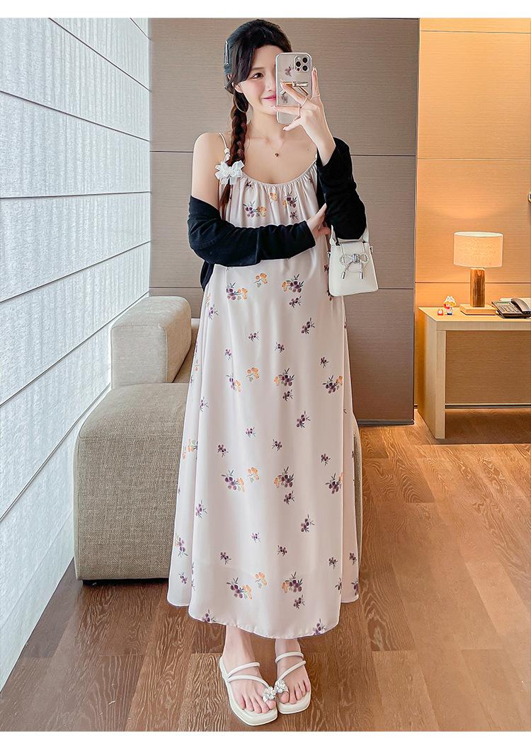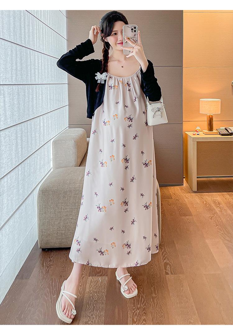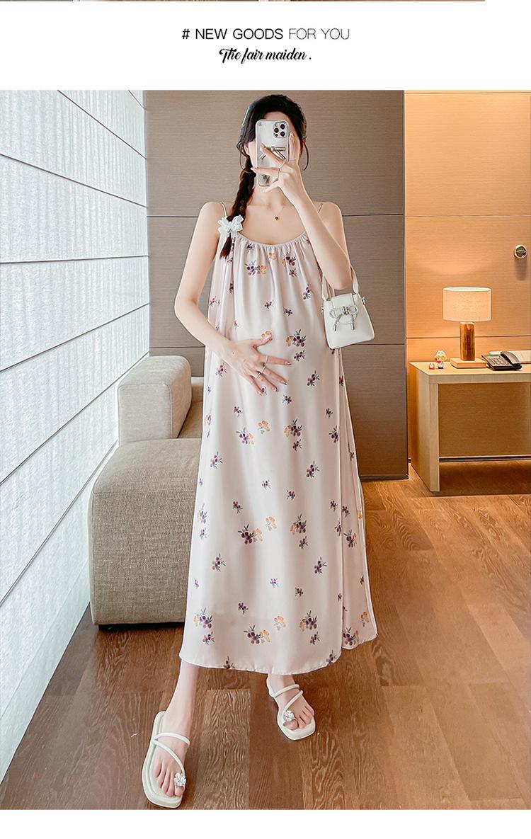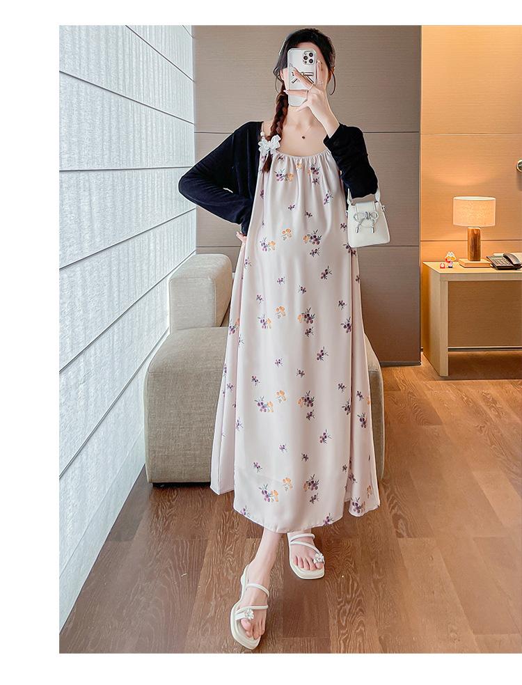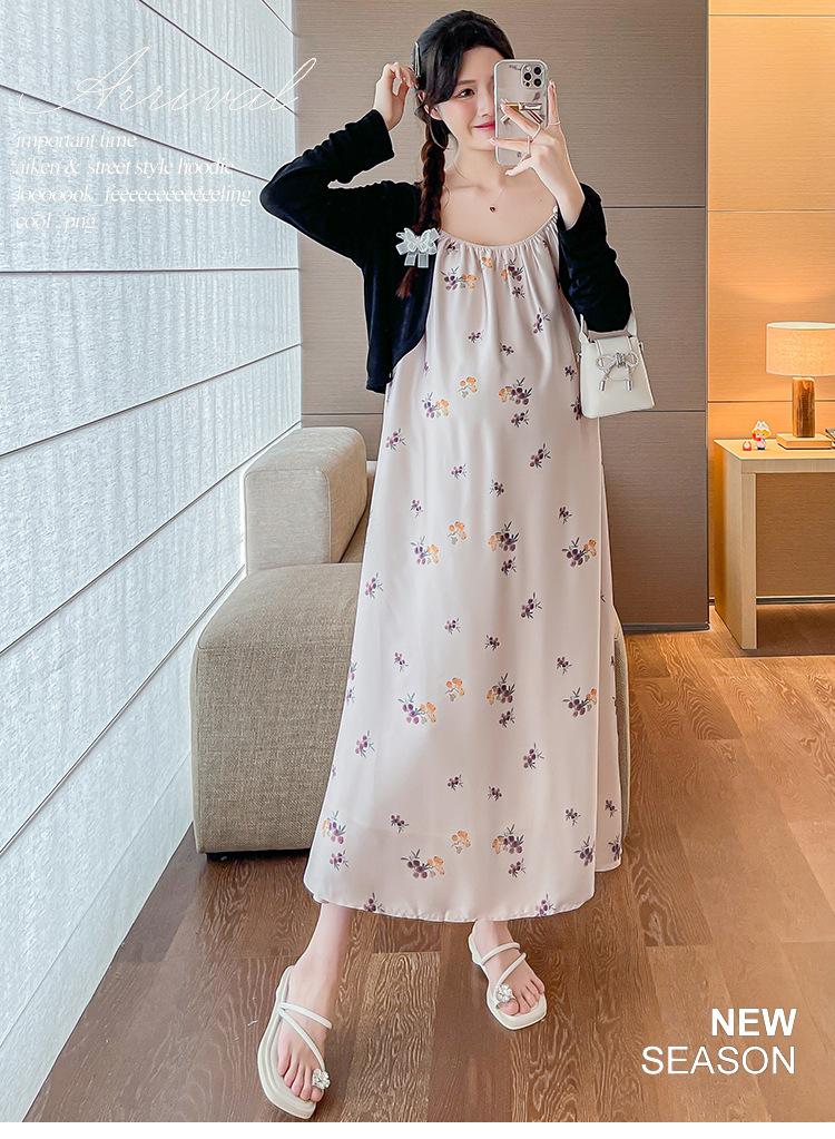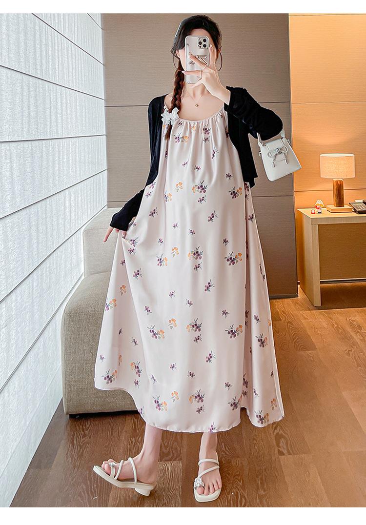 Ropa de Maternidad 2024 Primavera y Verano Nuevo Dulce Floral Falda de Tirantes Cárdigan Vestido de Maternidad de Dos Piezas